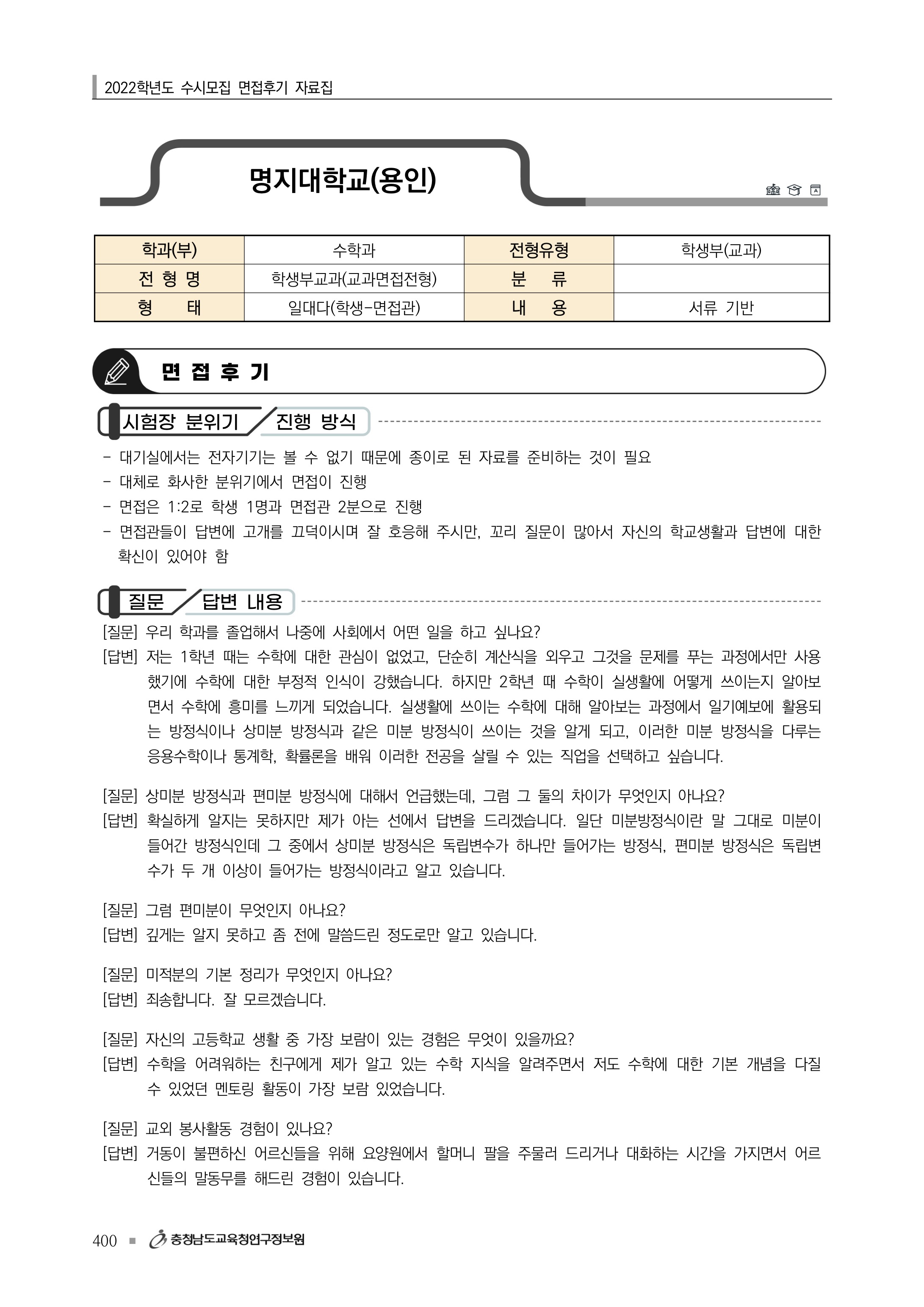 2022학년도 명지대학교 면접 후기15 - 수학과