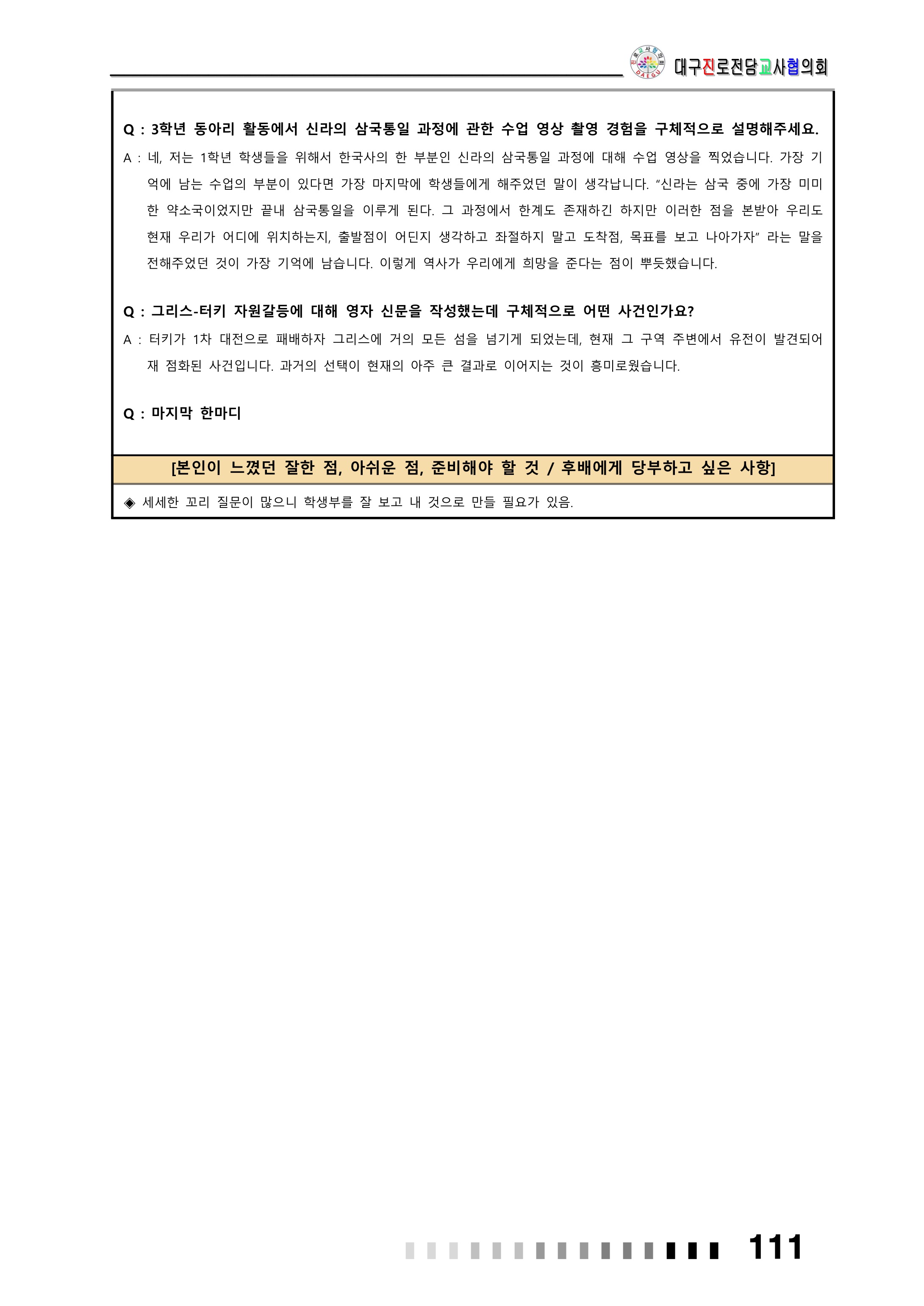 - 동아리 활동 중에서 부원들과 의견충돌 시 어떻게 해결하였는가?
