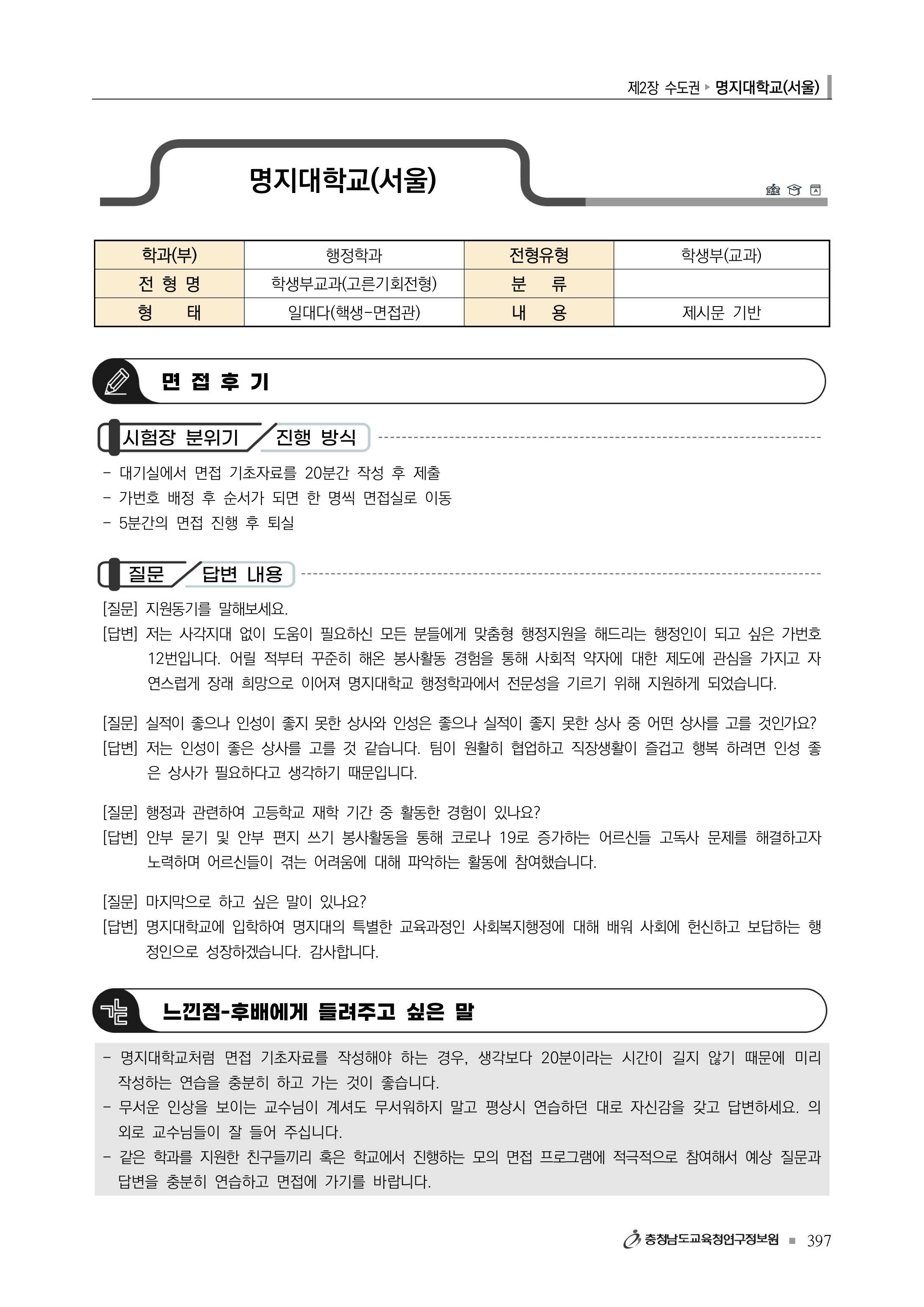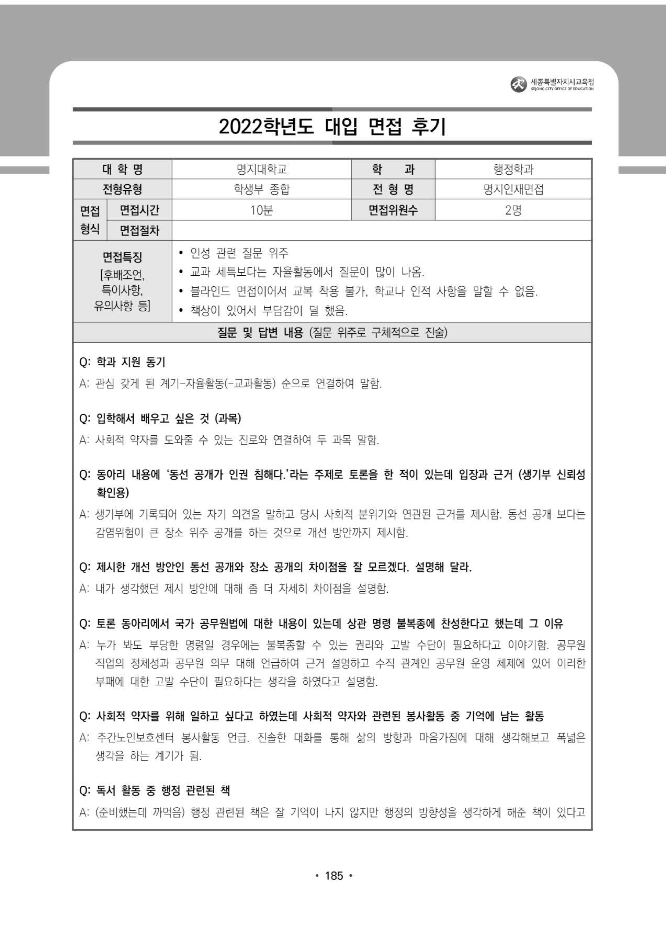 2022학년도 명지대학교 면접 후기31 - 행정학과