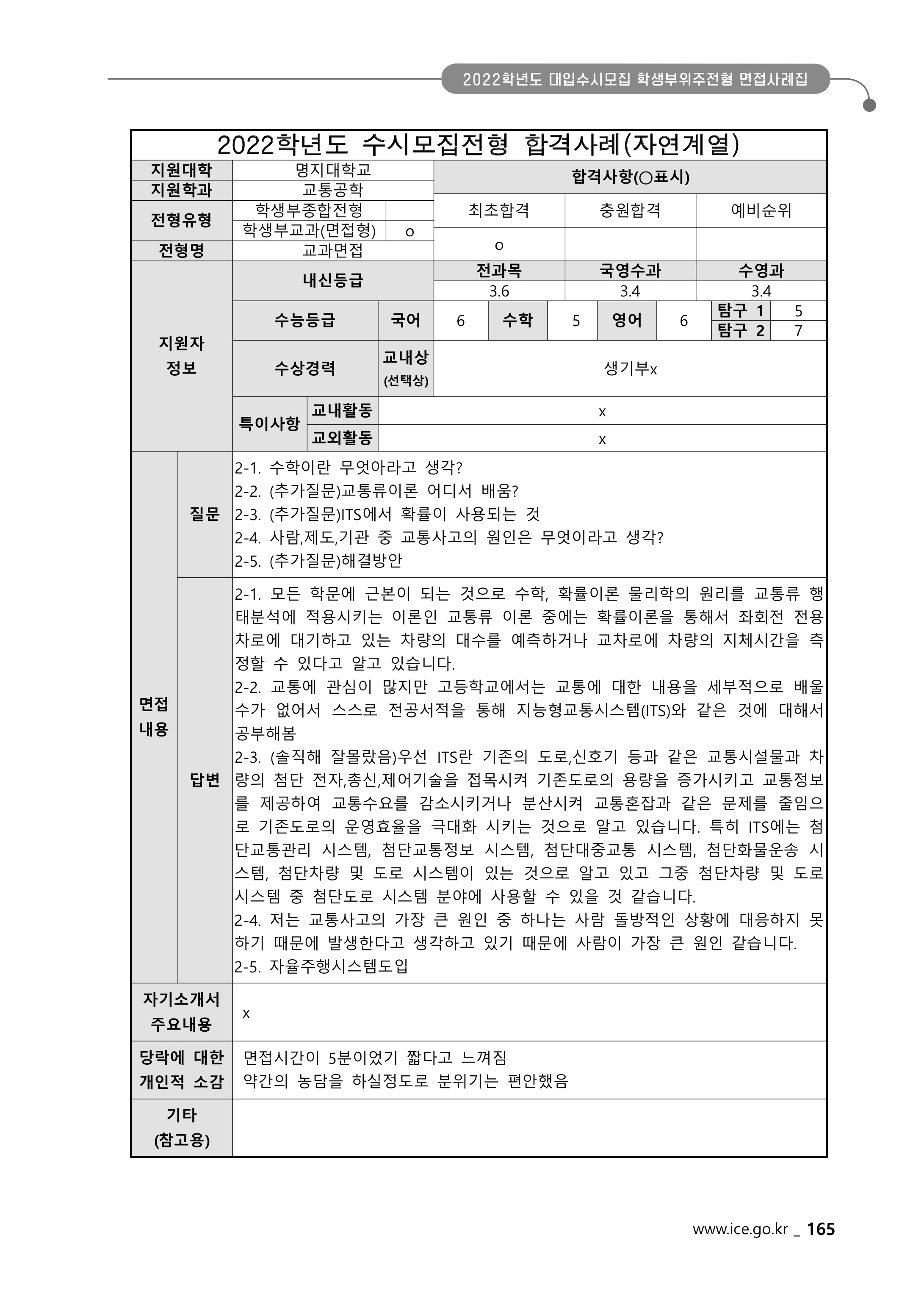 2022학년도 명지대학교 면접 후기4 - 교통공학과 2022학년도 명지대학교 면접 후기5 - 국어국문학과