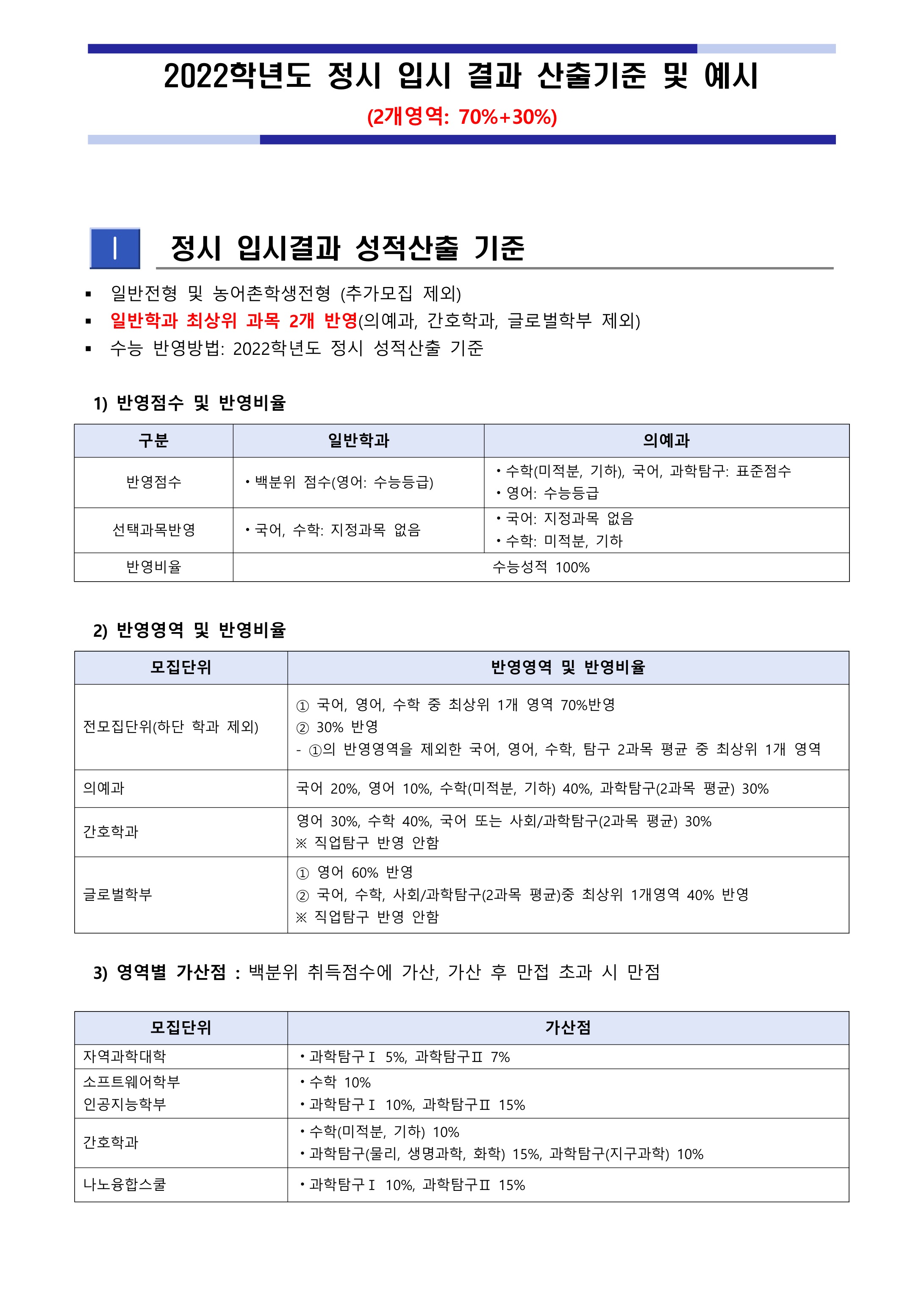 2022학년도 한림대학교 대학수학능력시험 반영방법 2022학년도 한림대학교 정시등급