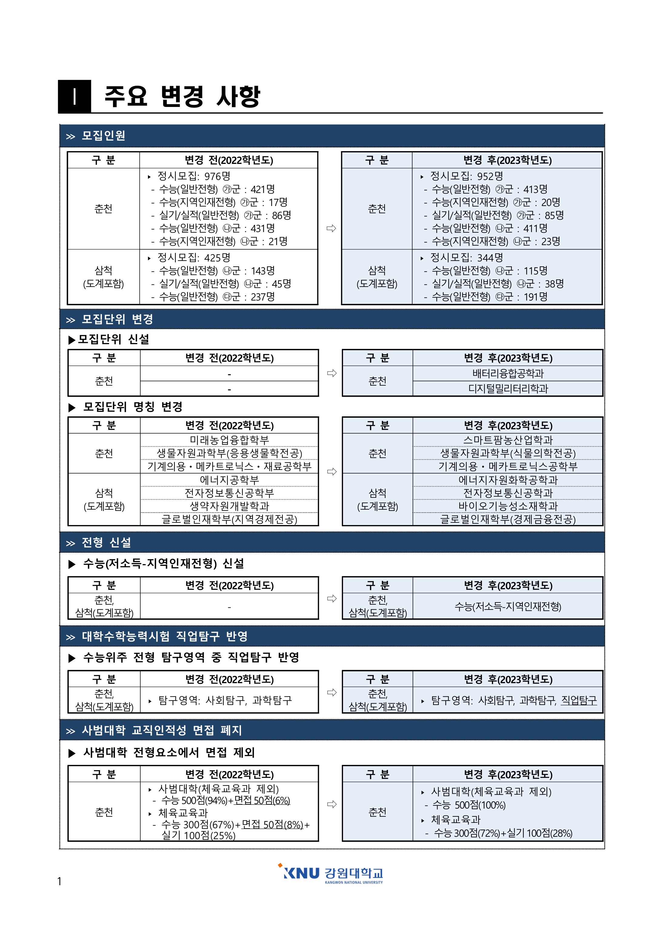 2023학년도 강원대학교 정시모집 요강.pdf3.23MB2023학년도 강원대학교 정시모집 전년 대비 변경사항