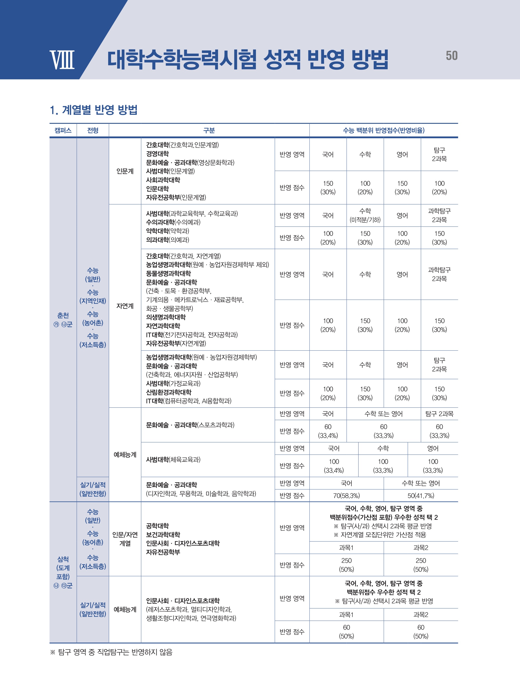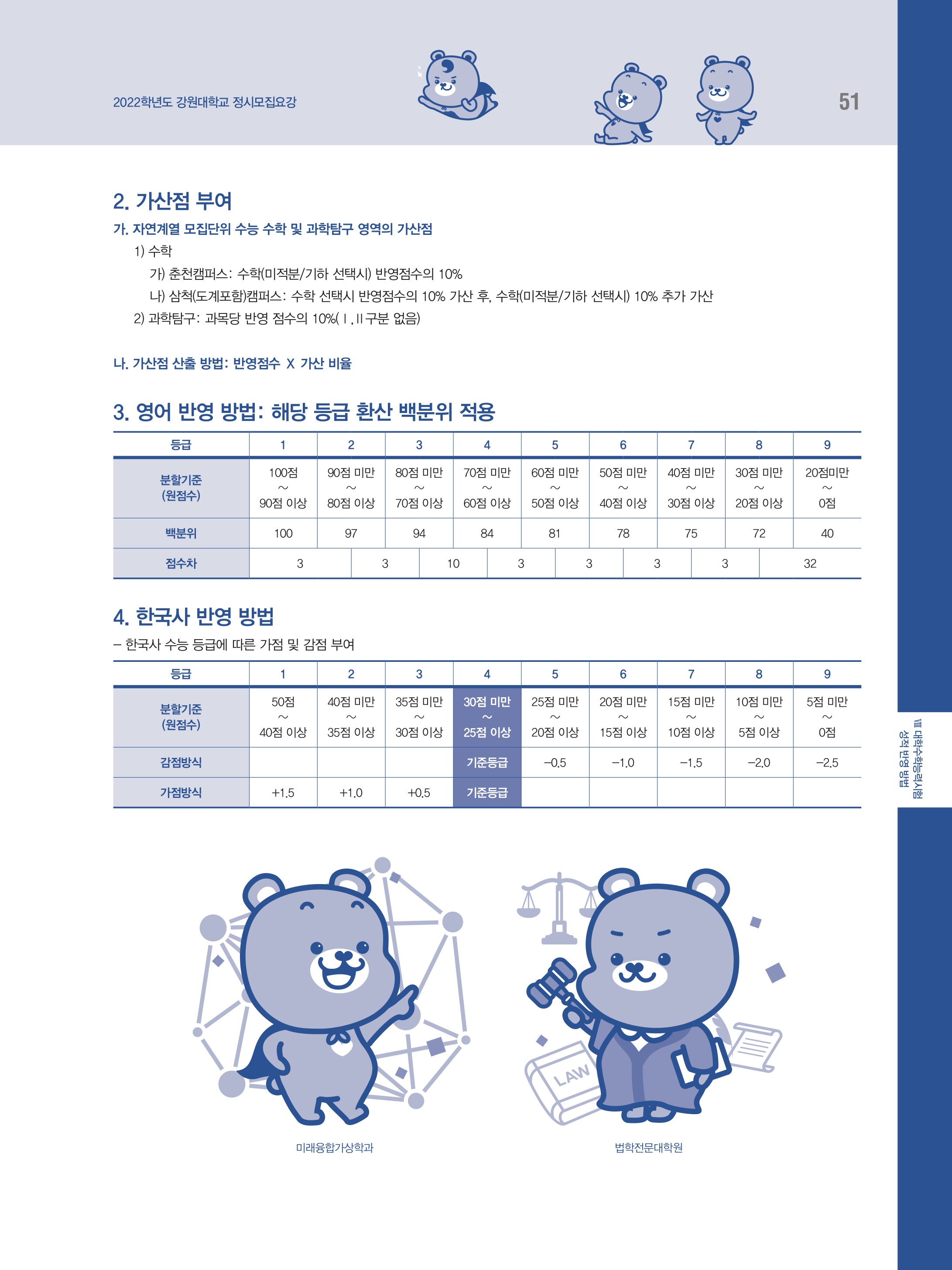 2022학년도 강원대학교 대학수학능력시험 반영방법 2022학년도 강원대학교 춘천 정시등급