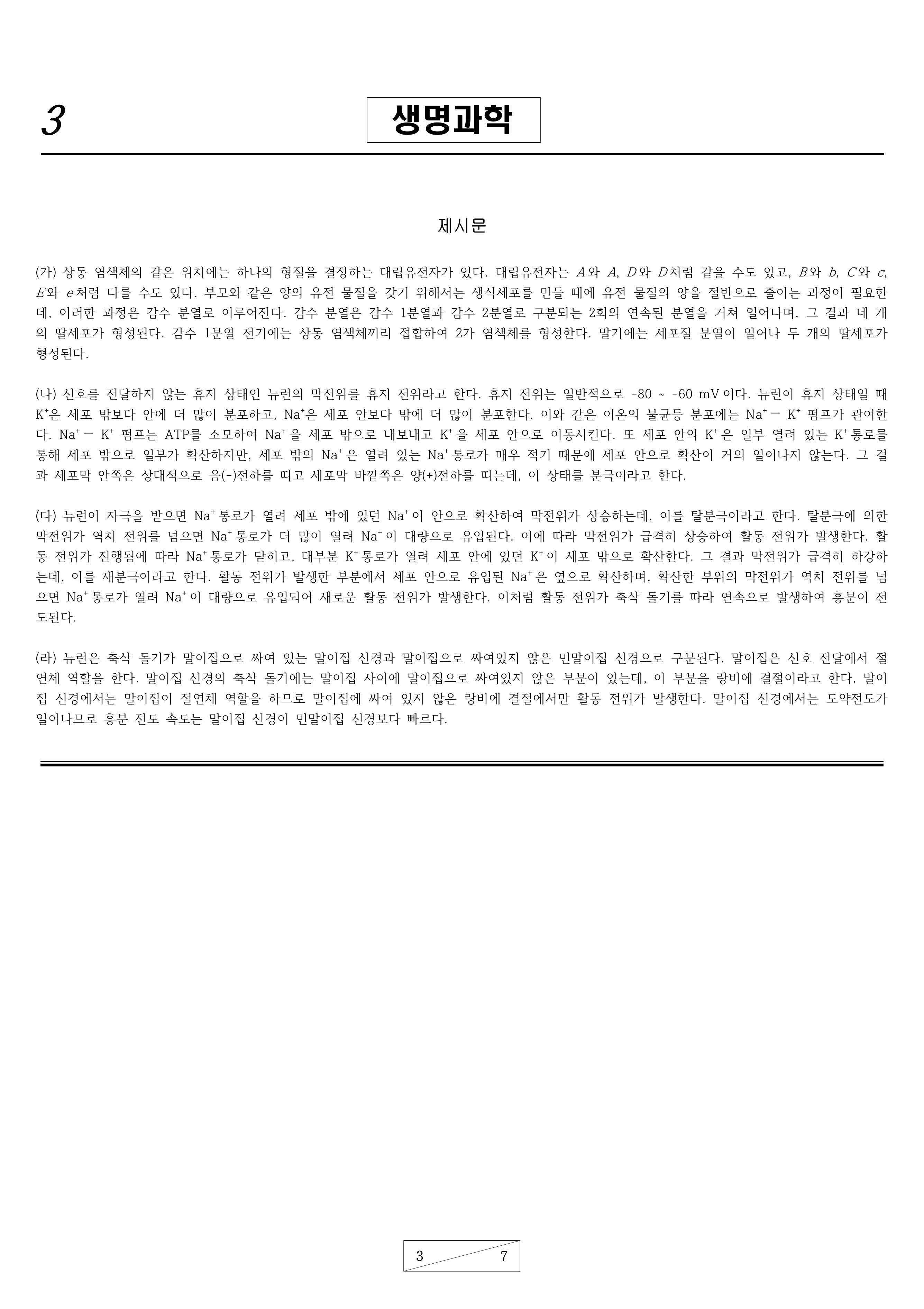 2022학년도 건국대학교 수시모집 논술고사 자연계B 문제지