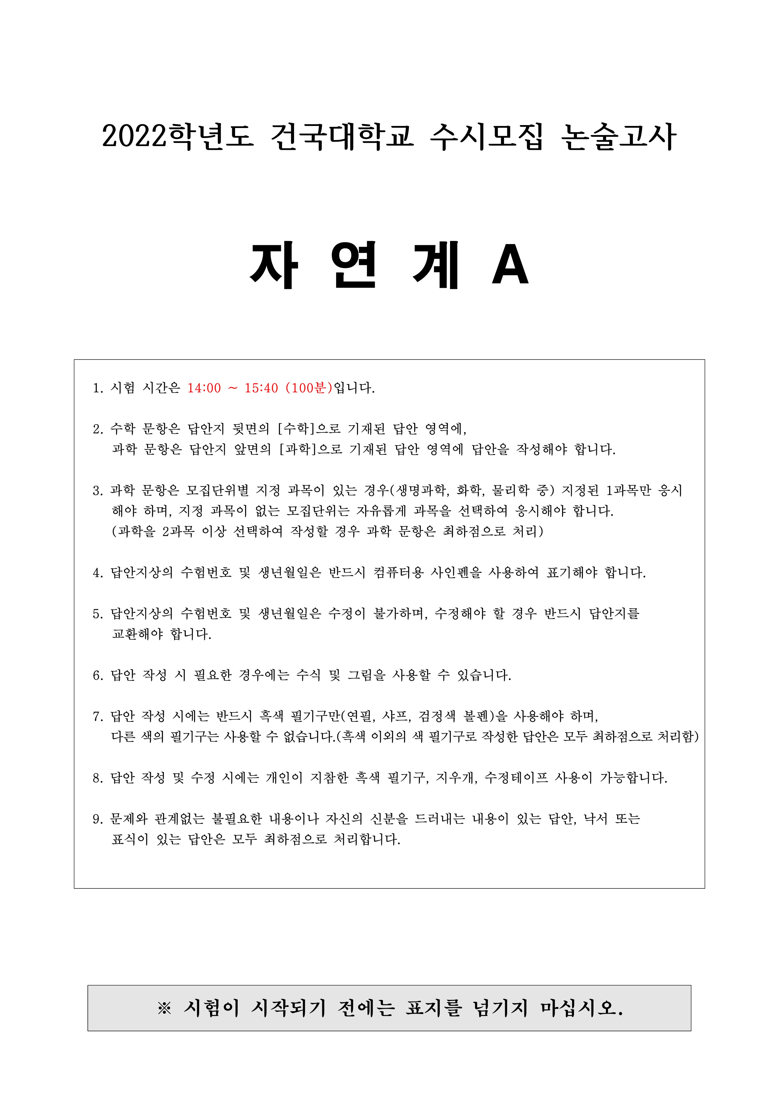 2022학년도 건국대학교 수시모집 논술고사 자연계A 문제지