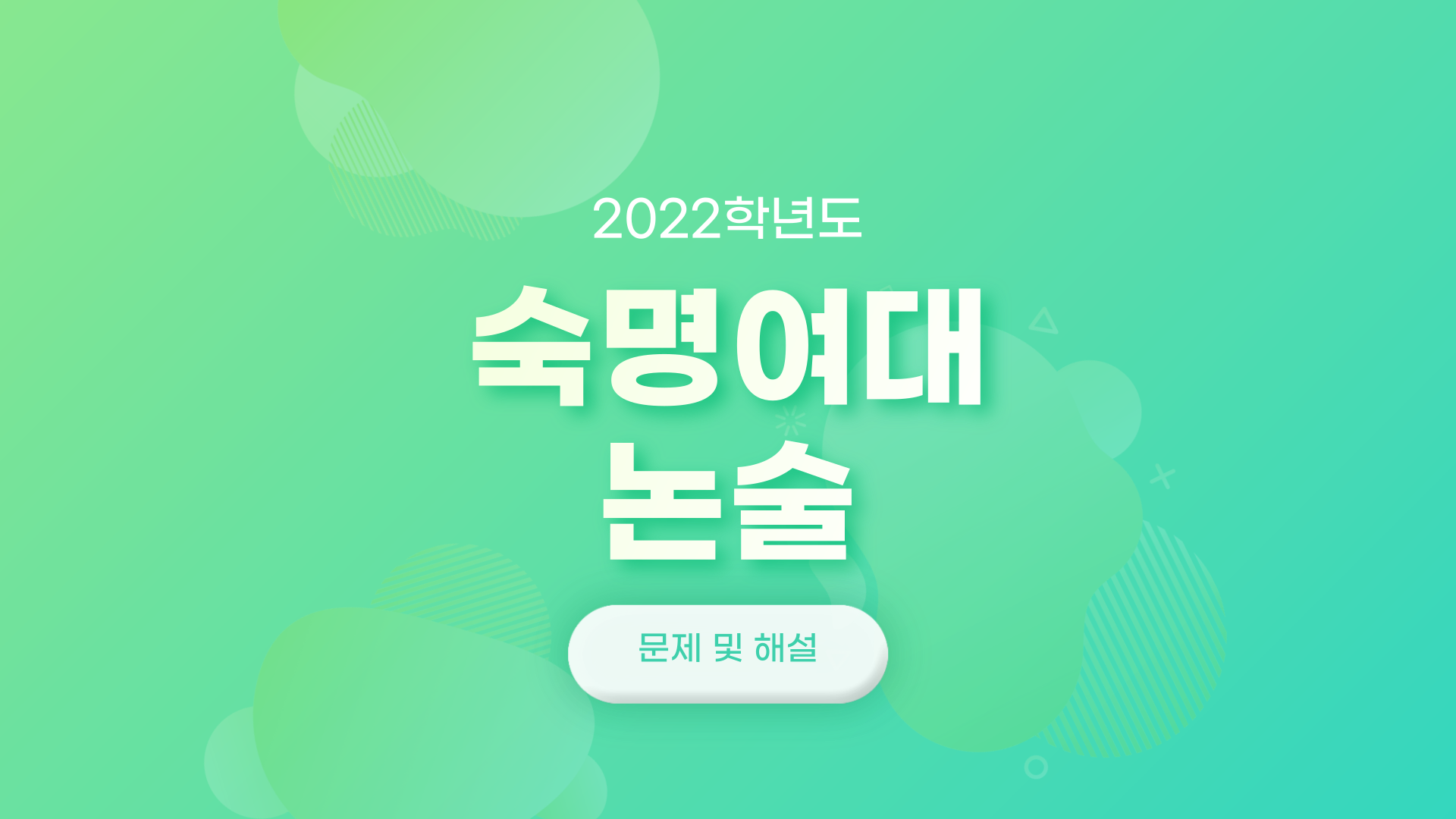 2022학년도 숙명여자대학교 논술 문제 및 해설 횐님들 안녕하세영! 오늘은 2022학년도 숙명여자대학교 논술전형에 출제된 기출문제와 해설을 알아볼 거예영. 약학부와 의류학과를 제외한 자연계열은 수학 3문항을 풀게 되는데영, 각각 세부 문항이 있어영. 자연계열 문제만 이미지 파일로 올리고 나머지 계열 문제와 전체 해설은 pdf 파일로 올릴테니 다운받아서 확인하시면 됩니다. 2023학년도 숙명여자대학교 논술 전형에 대해 자세히 알고 싶으신 횐님들은 맨 아래 링크해 둔 글을 읽어보세영.🧚♀️