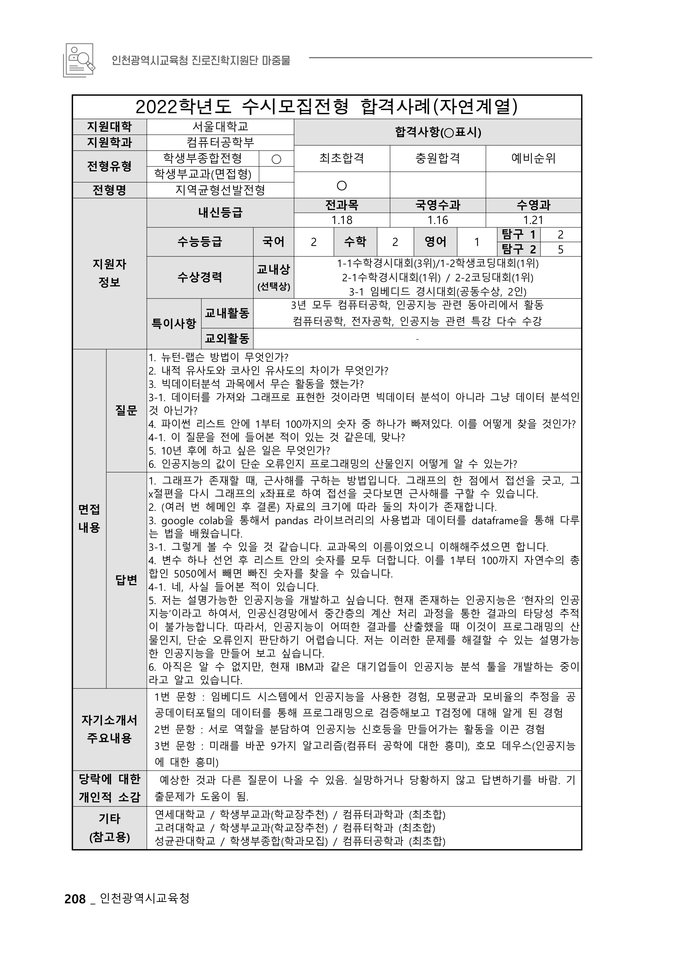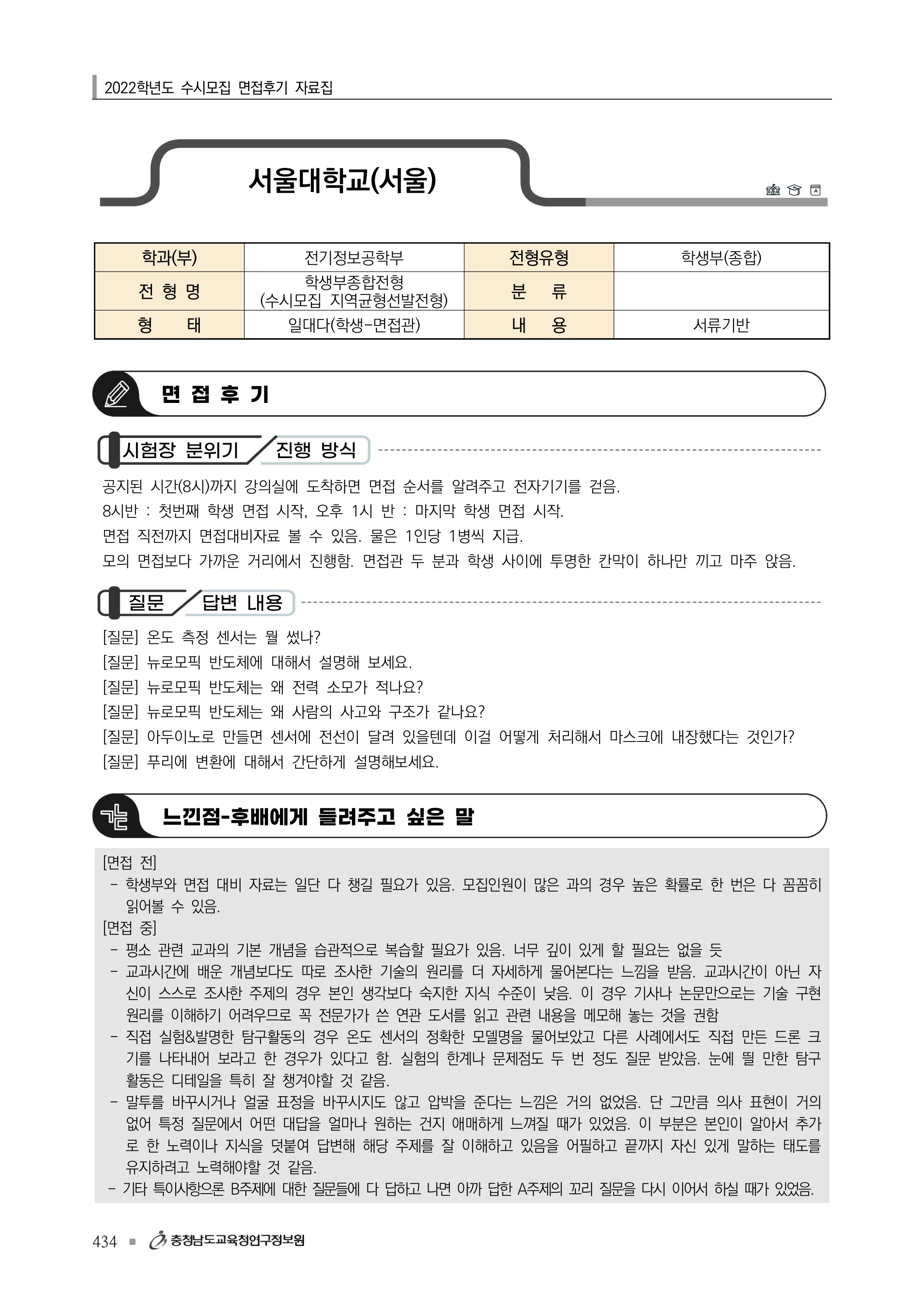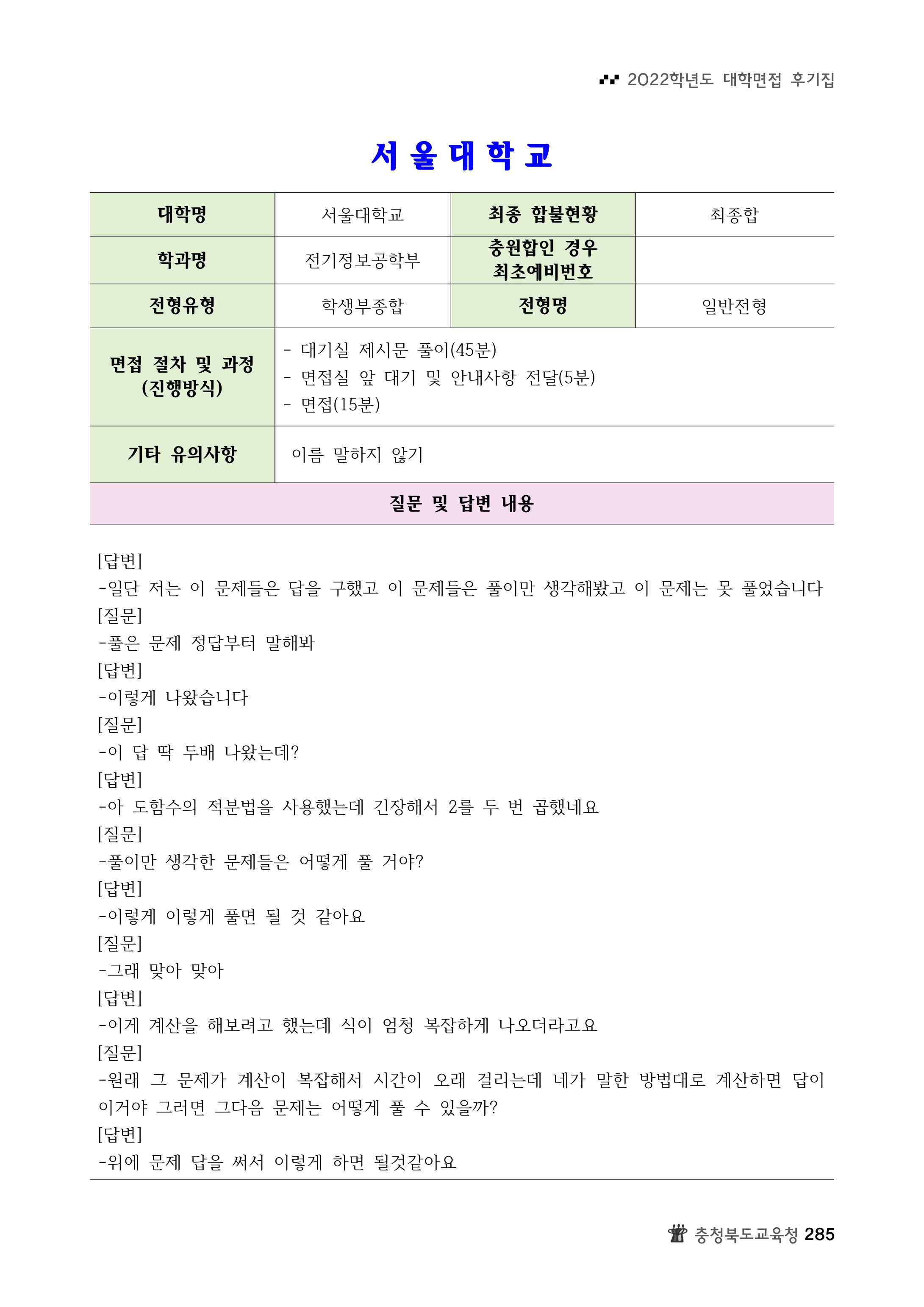 2022학년도 서울대학교 공과대학 면접 후기11 - 전기정보공학부 2022학년도 서울대학교 공과대학 면접 후기12 - 컴퓨터공학부