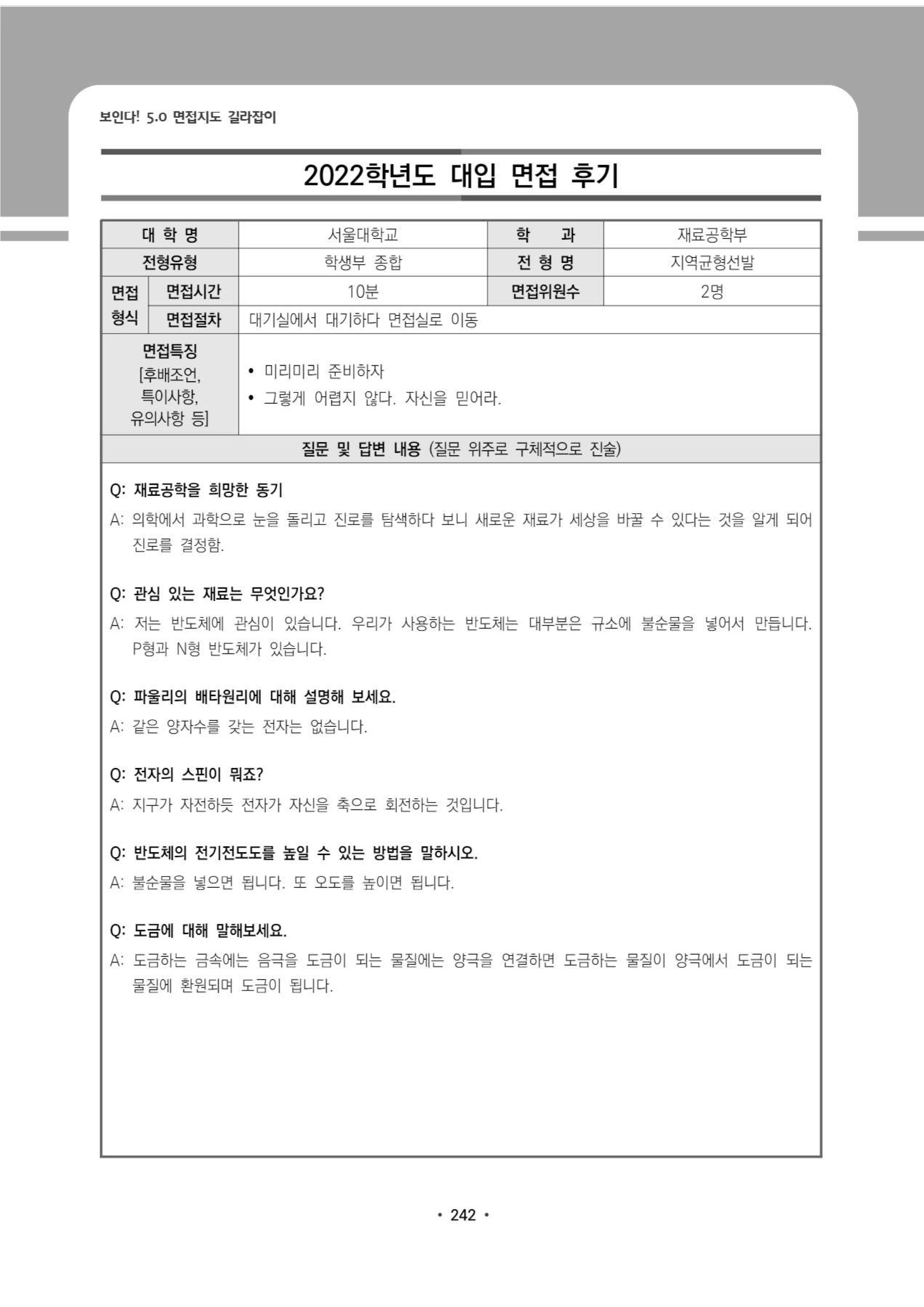 2022학년도 서울대학교 공과대학 면접 후기6 - 재료공학부 2022학년도 서울대학교 공과대학 면접 후기7 - 전기정보공학부