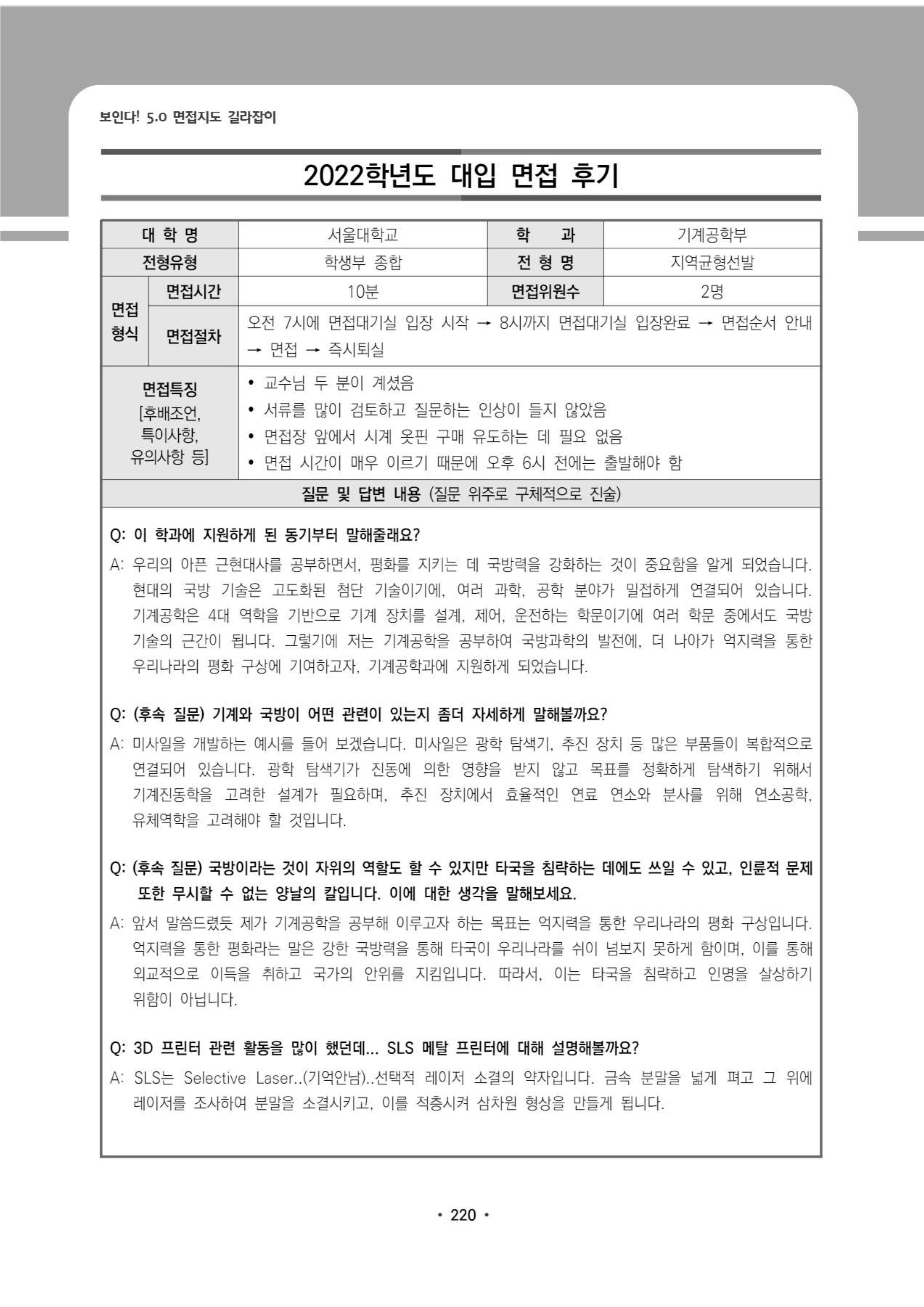 2022학년도 서울대학교 공과대학 면접 후기4 - 기계공학부