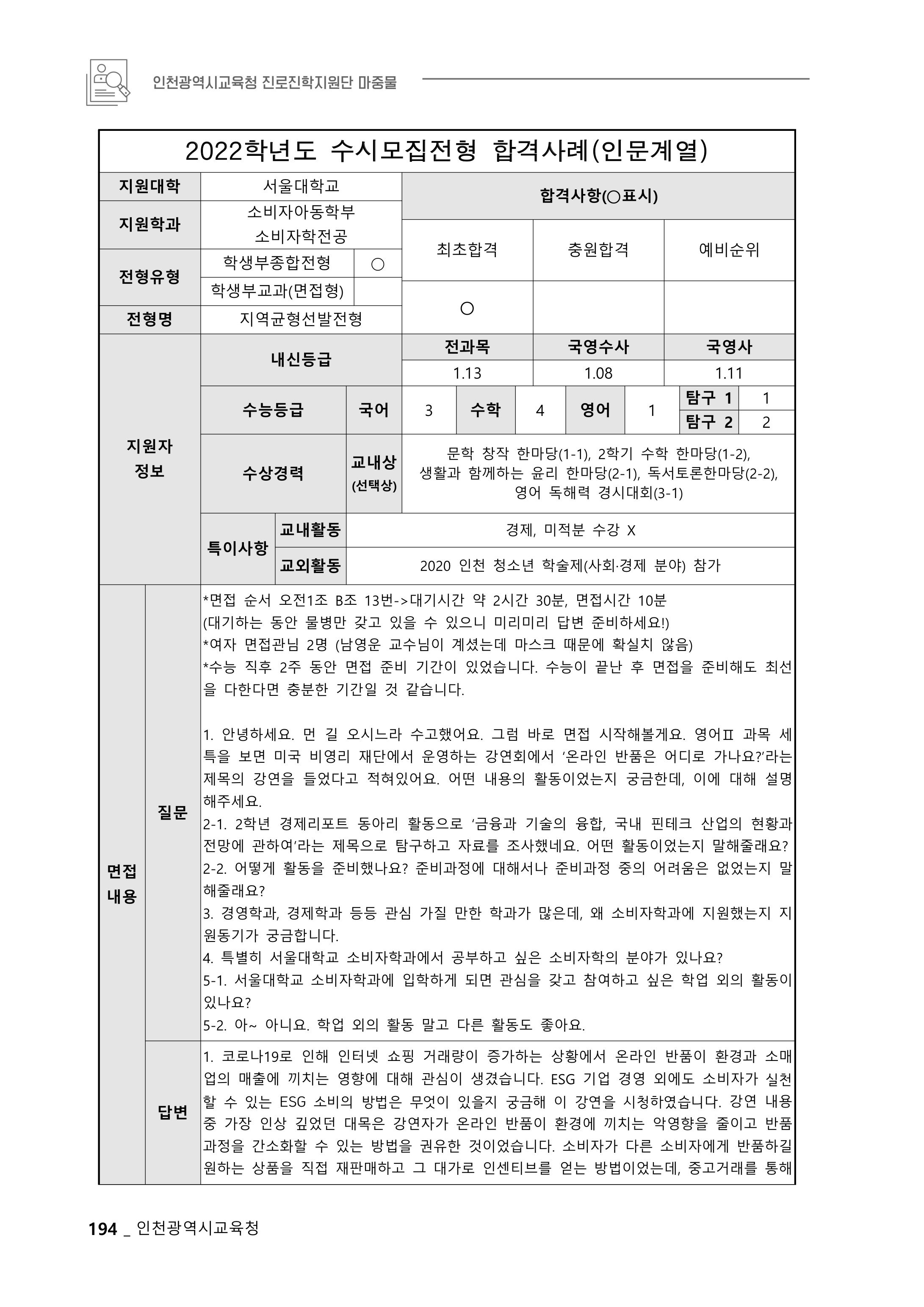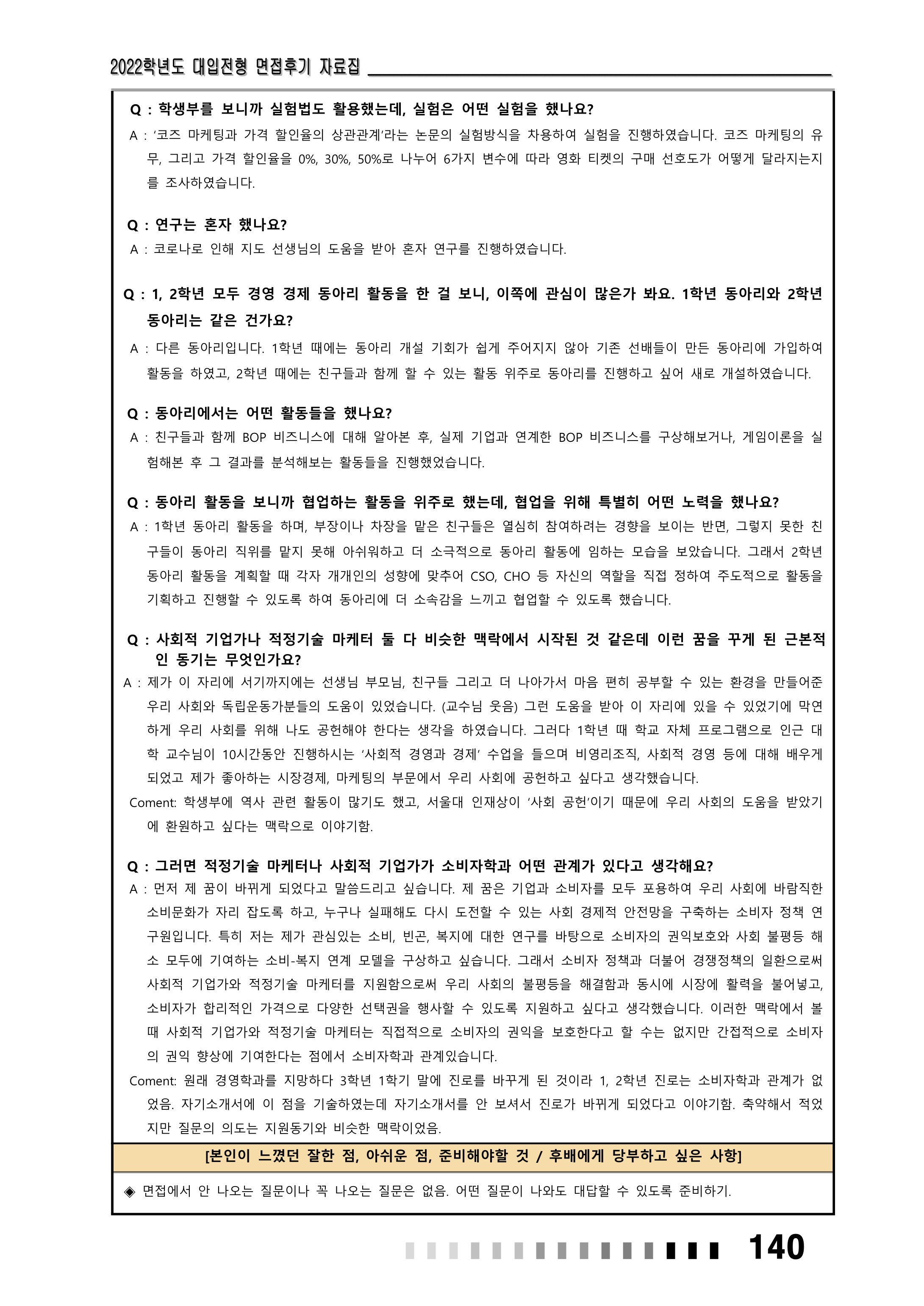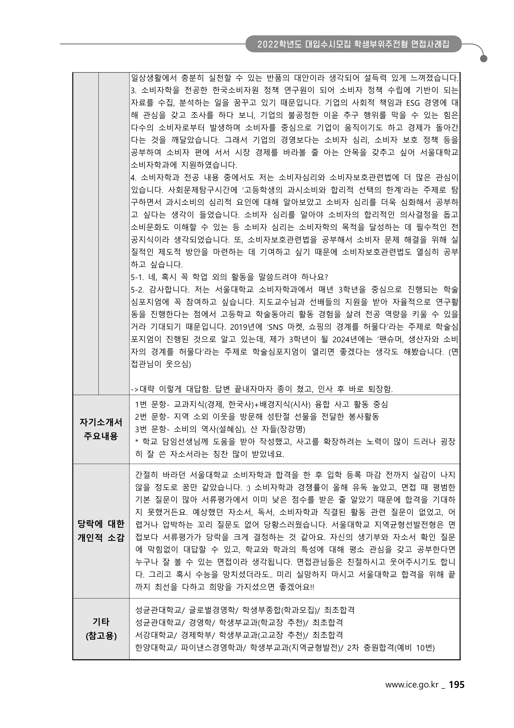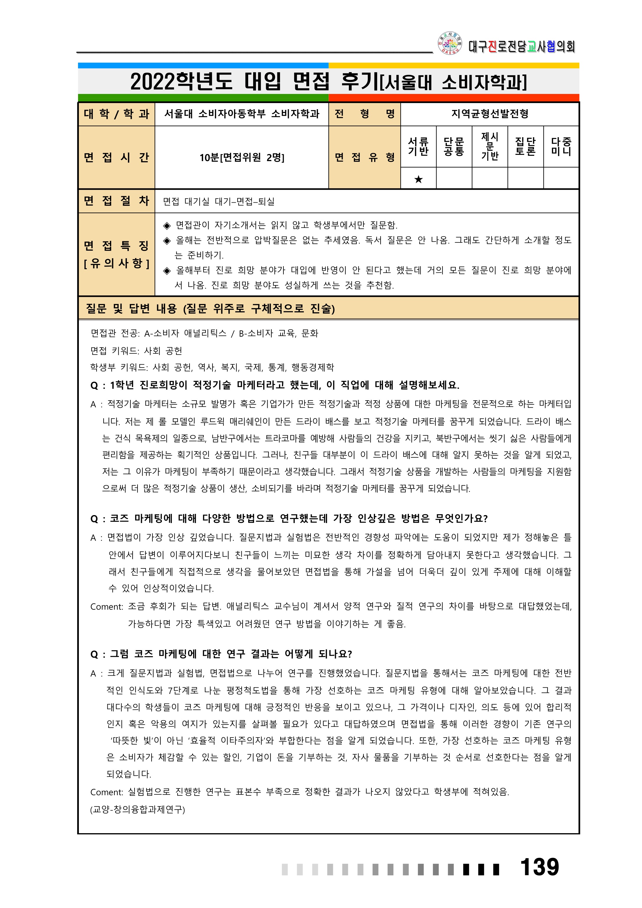 2022학년도 서울대학교 생활과학대학 면접 후기4 - 소비자아동학부