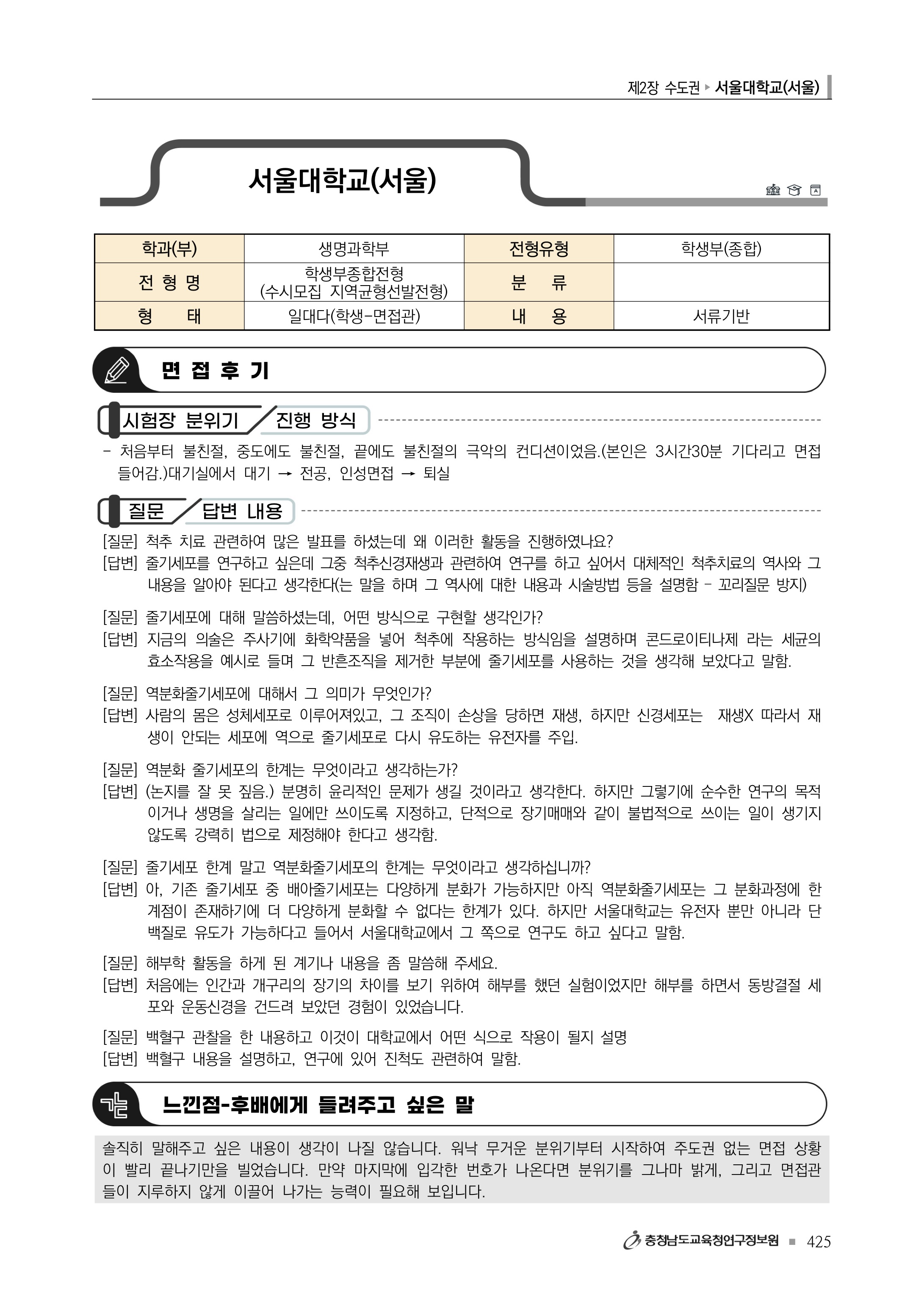 2022학년도 서울대학교 자연과학대학 면접 후기1 - 생명과학부 2022학년도 서울대학교 자연과학대학 면접 후기2 - 생명과학부