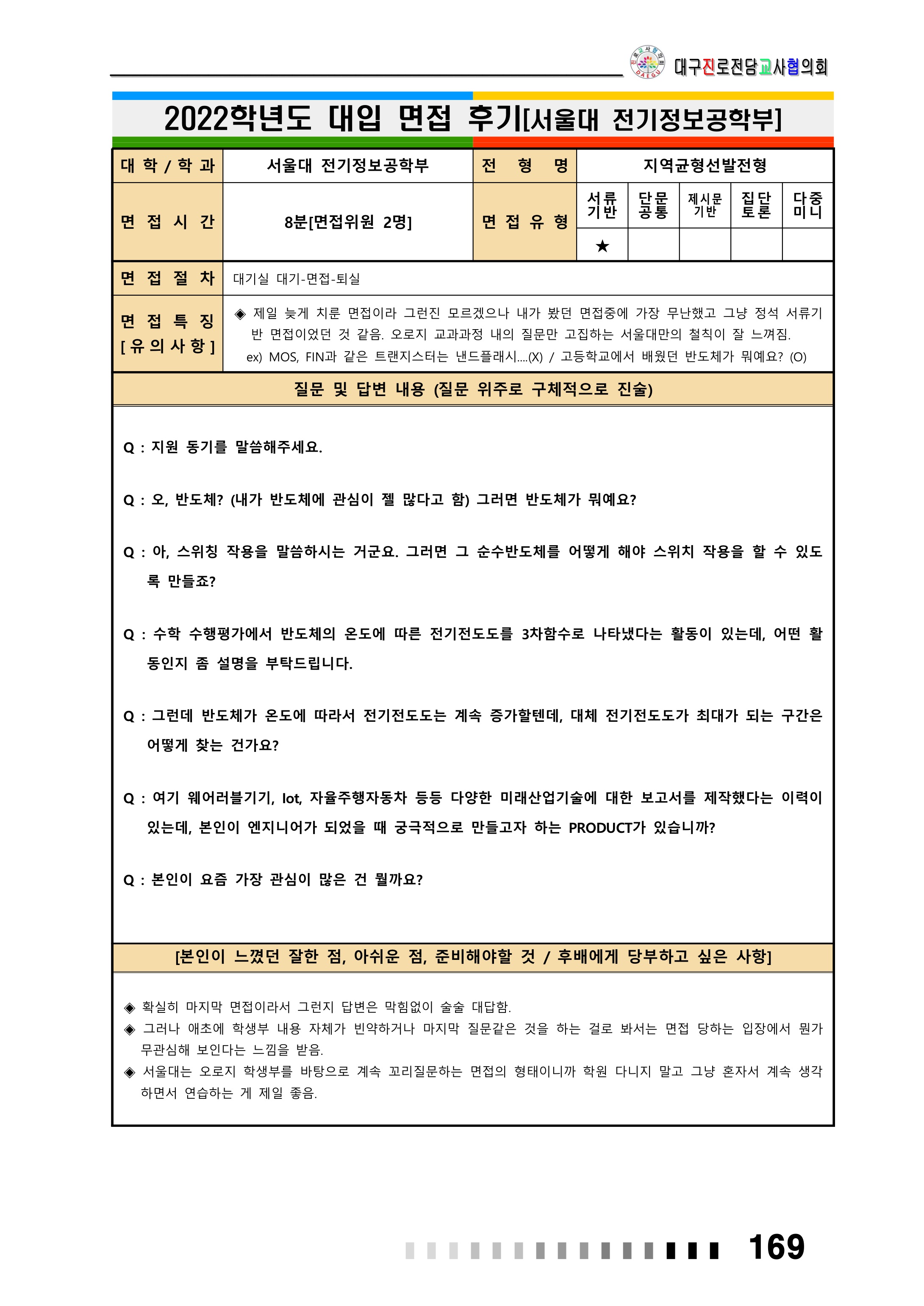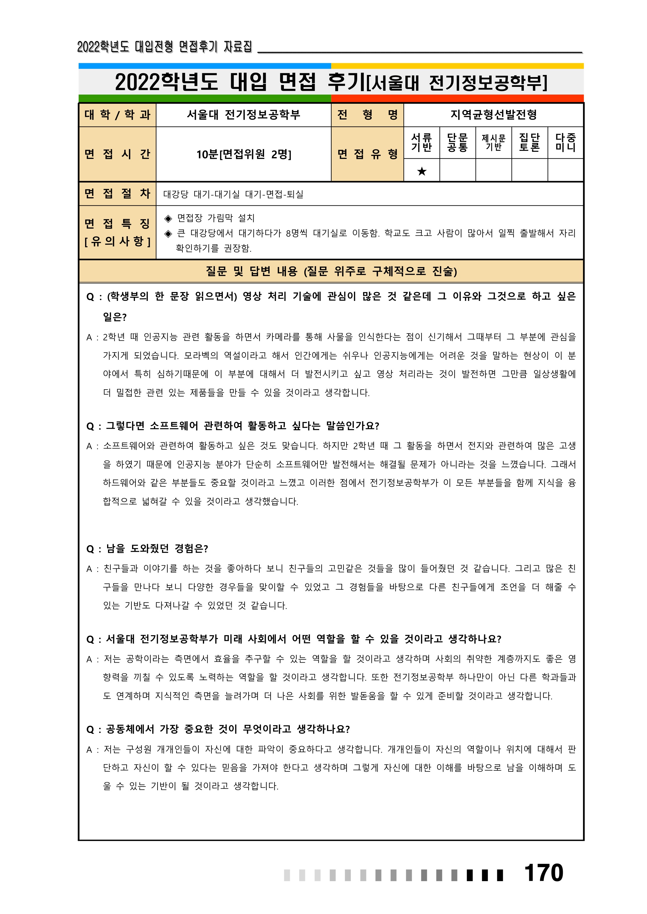 2022학년도 서울대학교 공과대학 면접 후기9 - 전기정보공학부