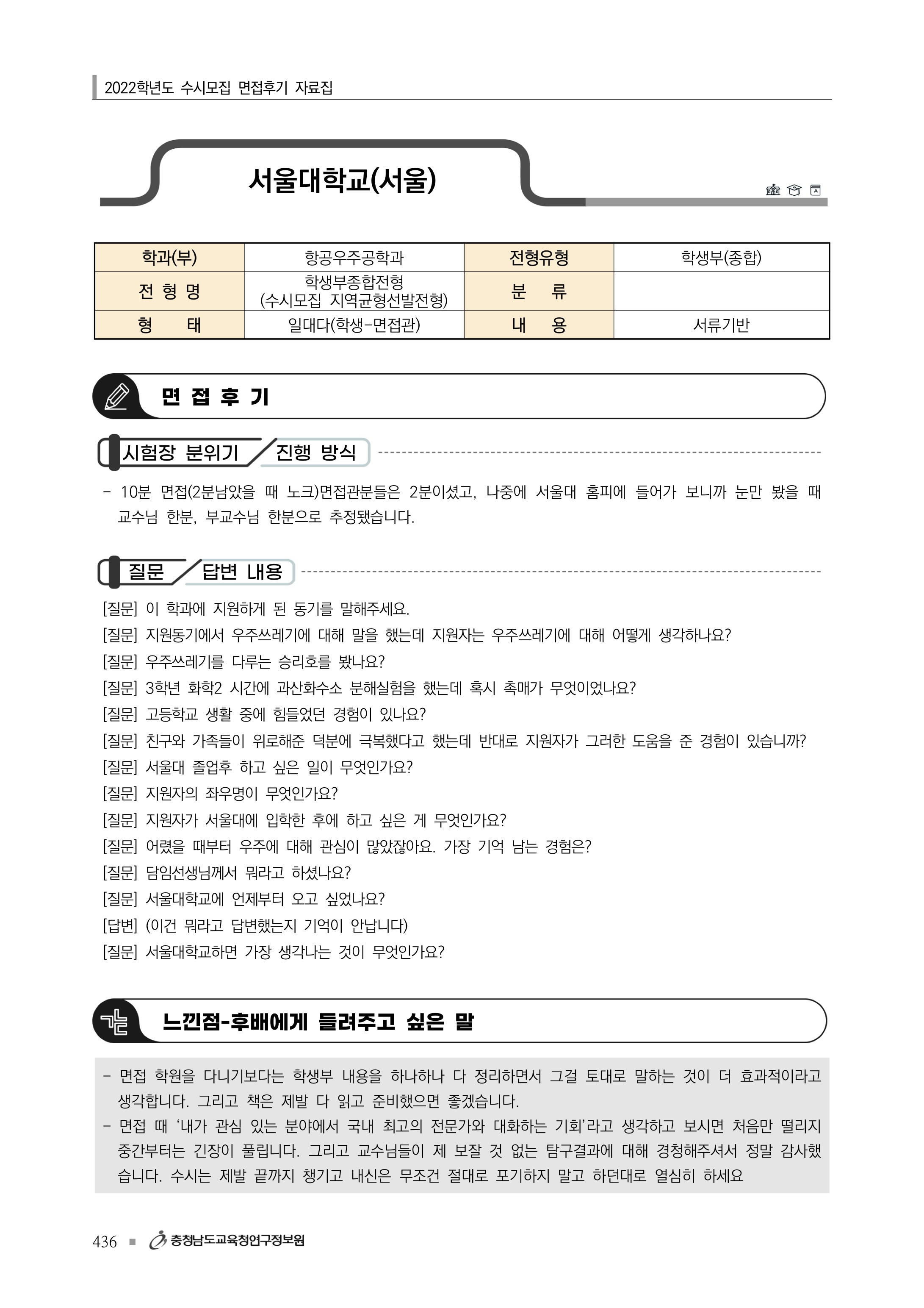 2022학년도 서울대학교 공과대학 면접 후기14 - 항공우주공학과 2022학년도 서울대학교 공과대학 면접 후기15 - 화학생물공학부