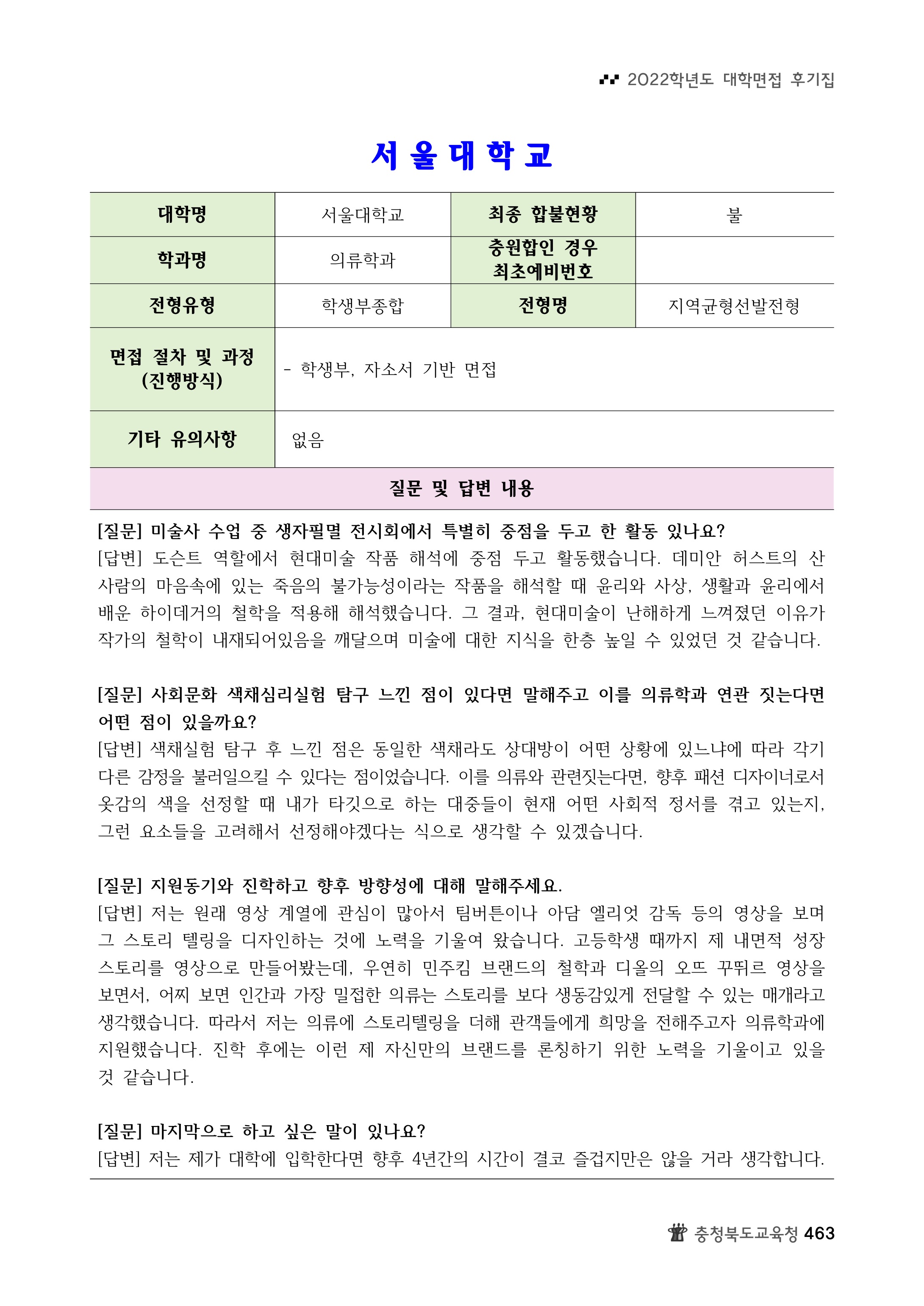 2022학년도 서울대학교 생활과학대학 면접 후기5 - 의류학과