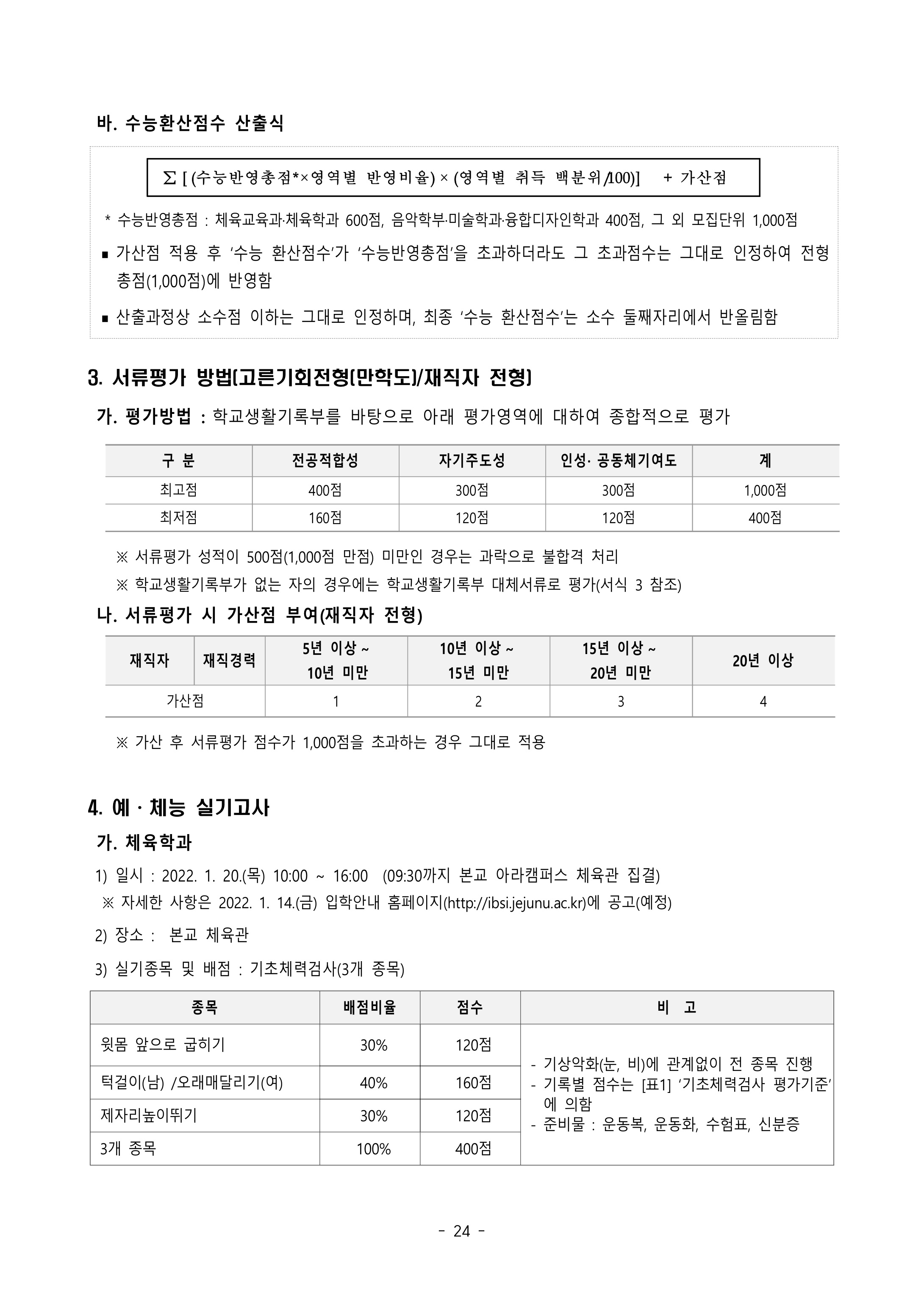 2022학년도 제주대학교 대학수학능력시험 반영방법 2022학년도 제주대학교 정시등급
