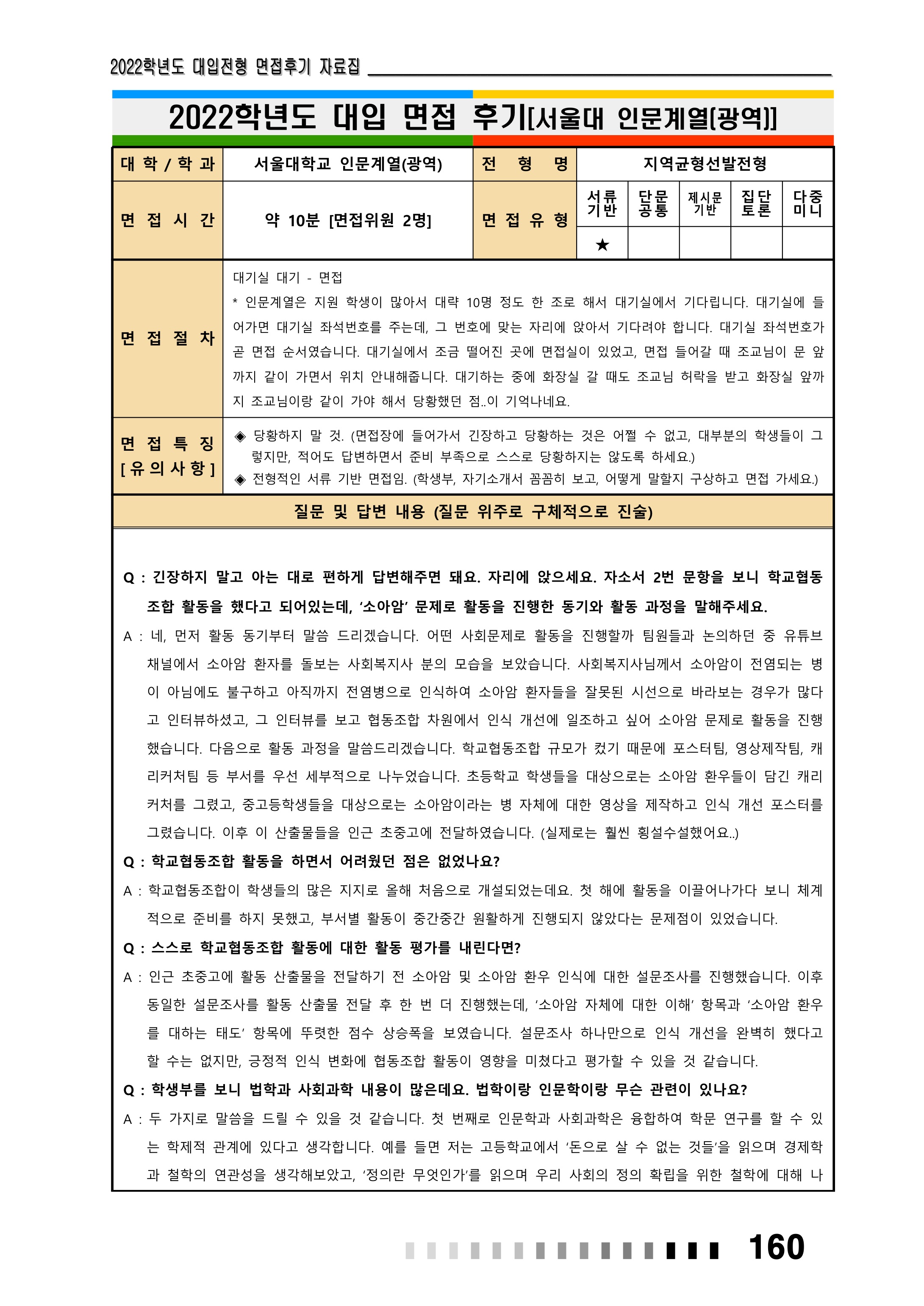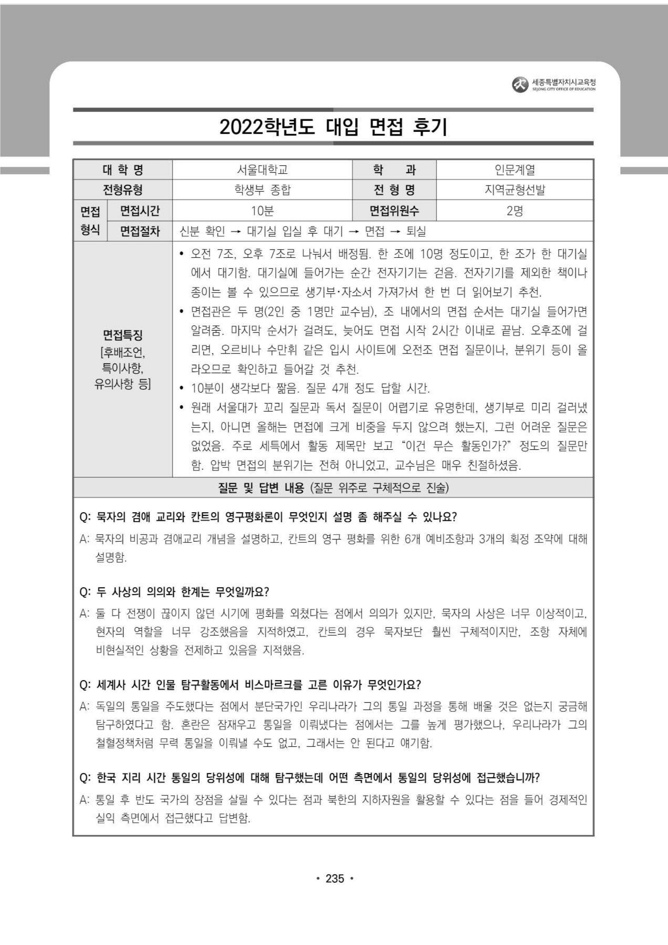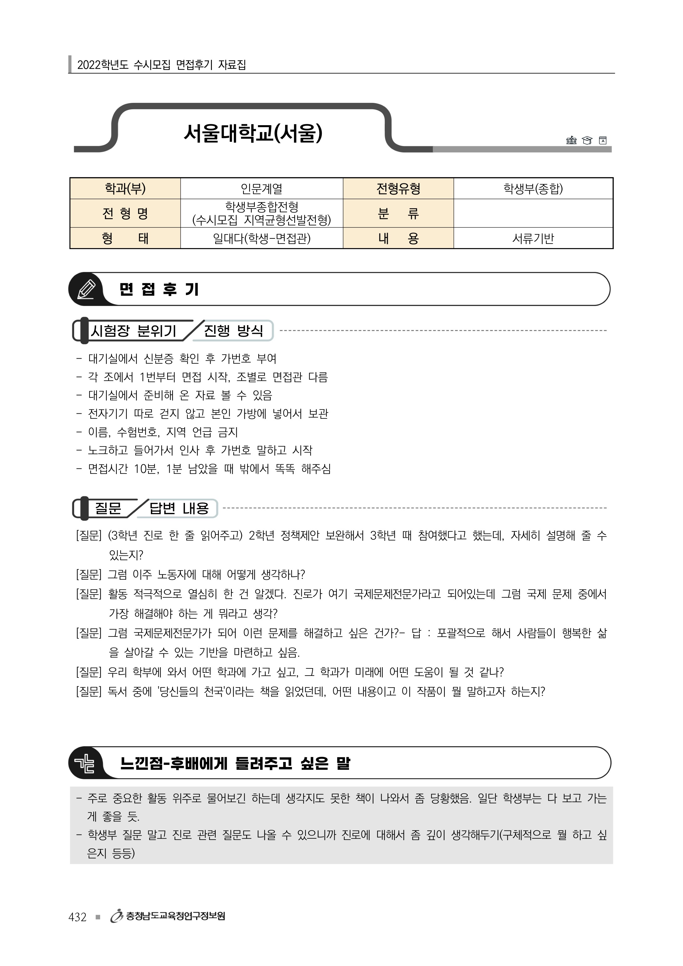 2022학년도 서울대학교 인문대학 면접 후기8 - 인문계열