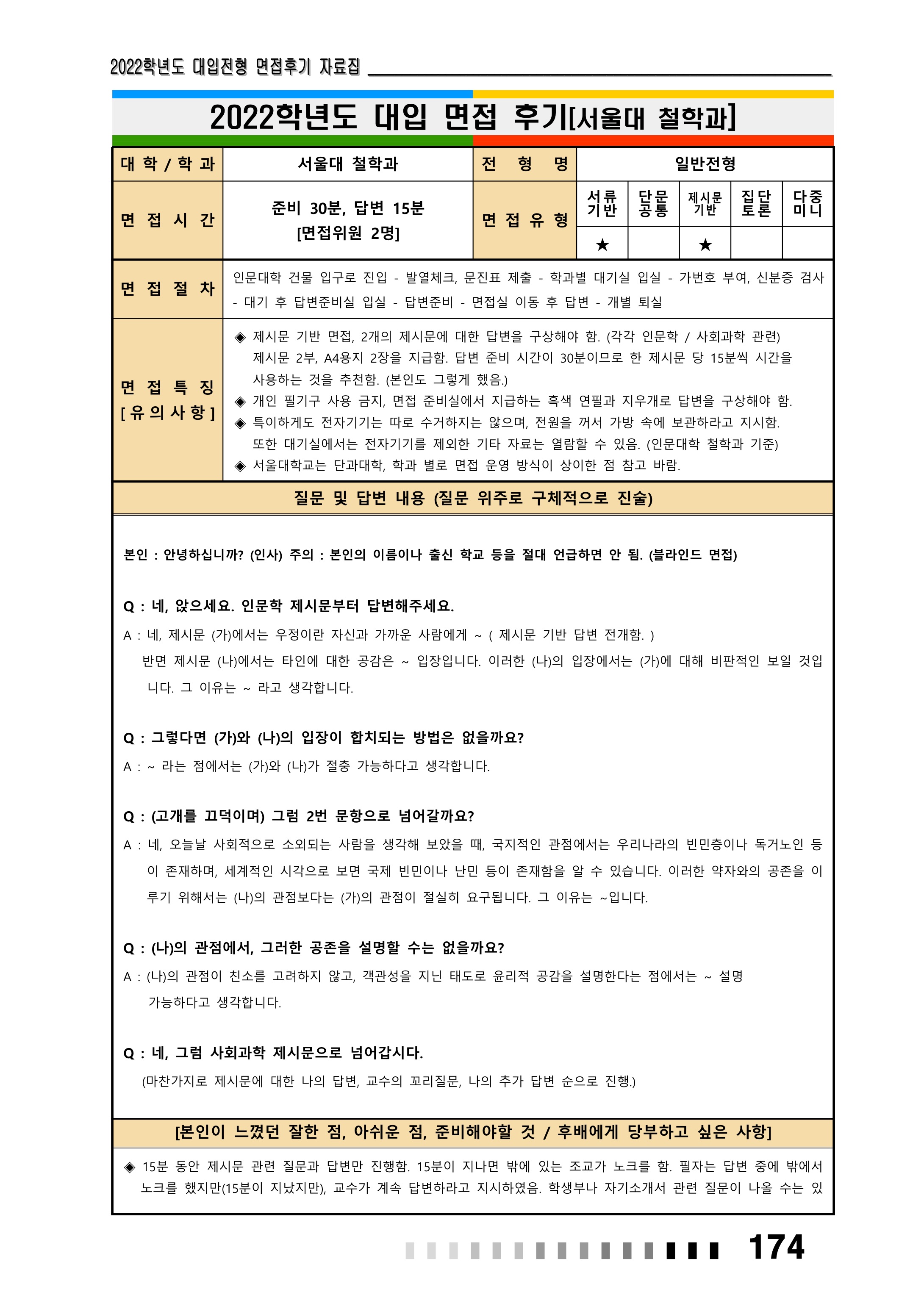 2022학년도 서울대학교 인문대학 면접 후기11 - 철학과