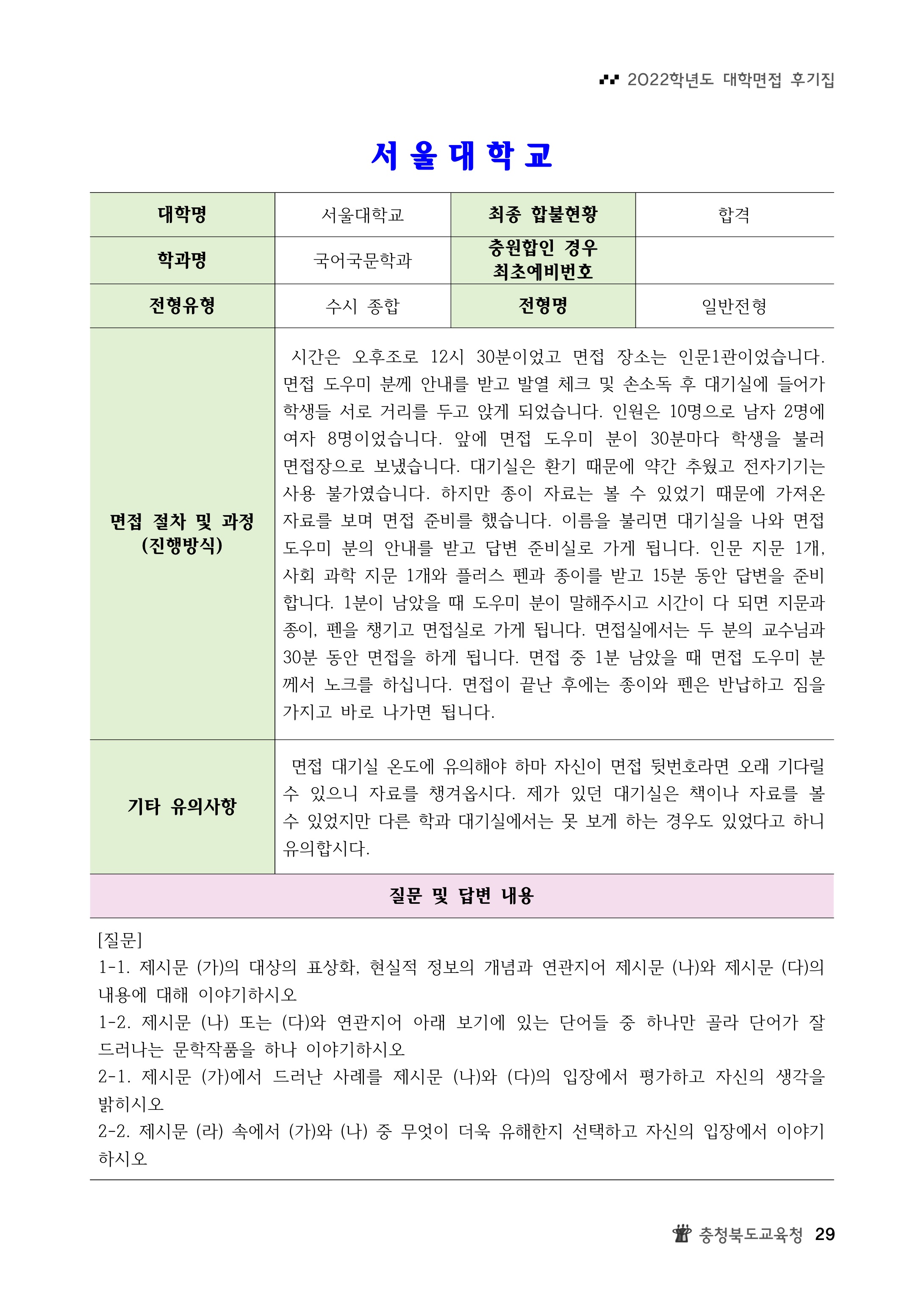 2022학년도 서울대학교 인문대학 면접 후기2 - 국어국문학과