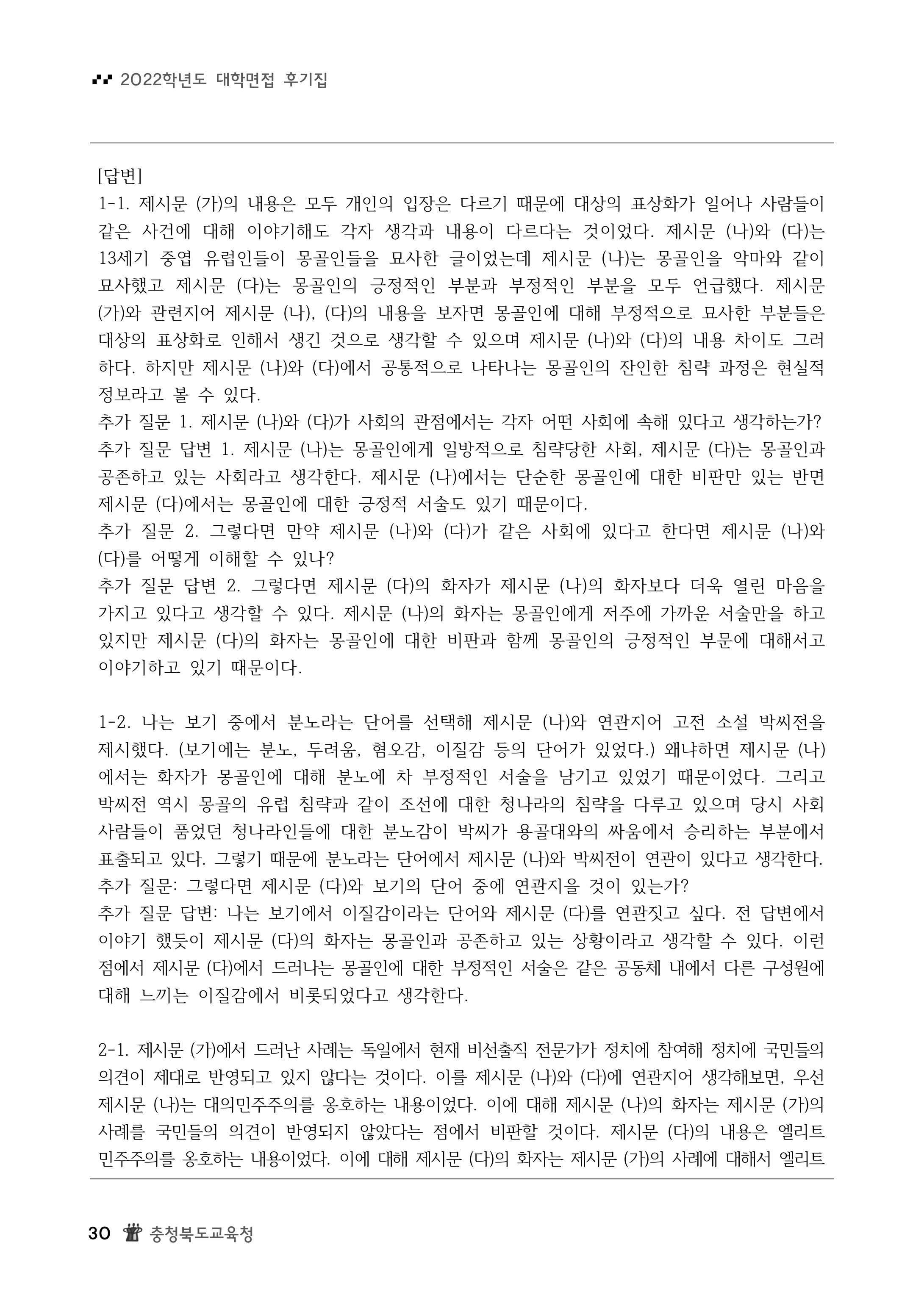 2022학년도 서울대학교 면접 및 구술고사 제시문