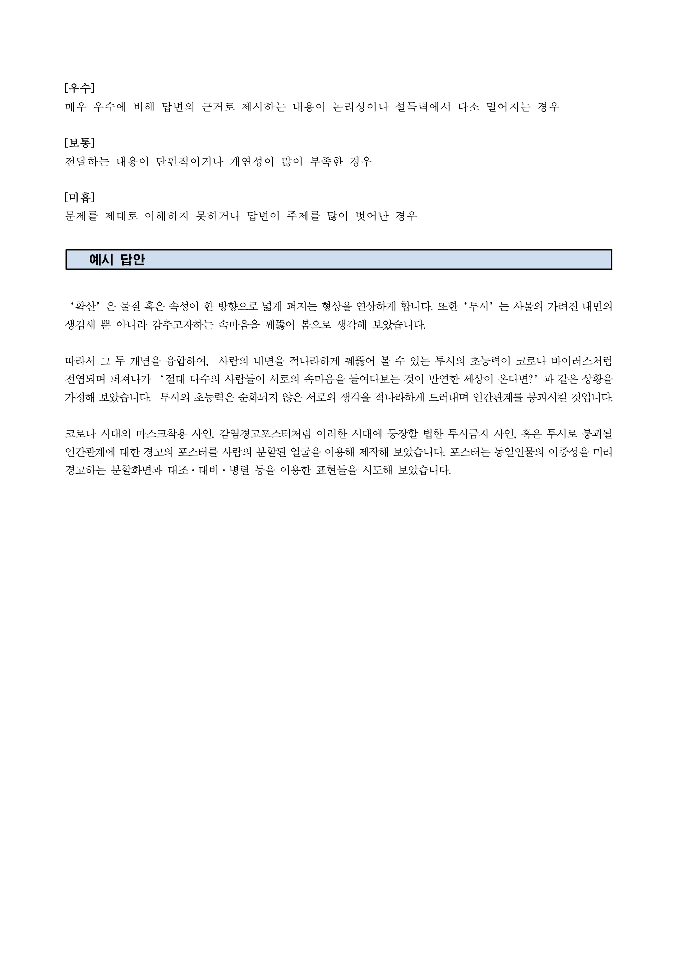 2022학년도 세종대학교 창의인재전형 전공적합성 제시문 및 해설 - 만화애니메이션텍 전공 2022학년도 세종대학교 창의인재전형전공 적합성 주제 및 해설 만화애니메이션텍전공.pdf0.10MB'입시 정보 > 면접' 카테고리의 다른 글