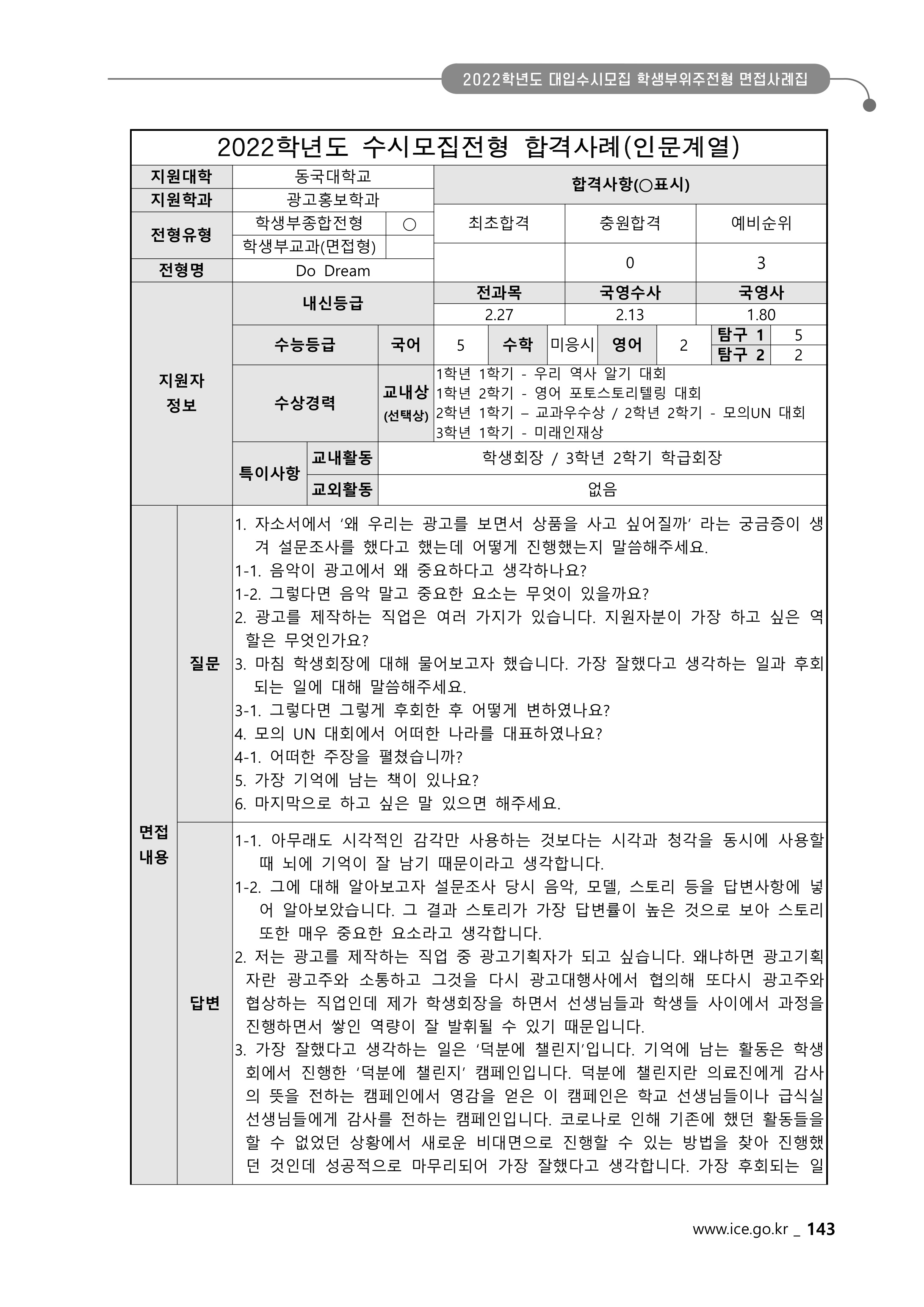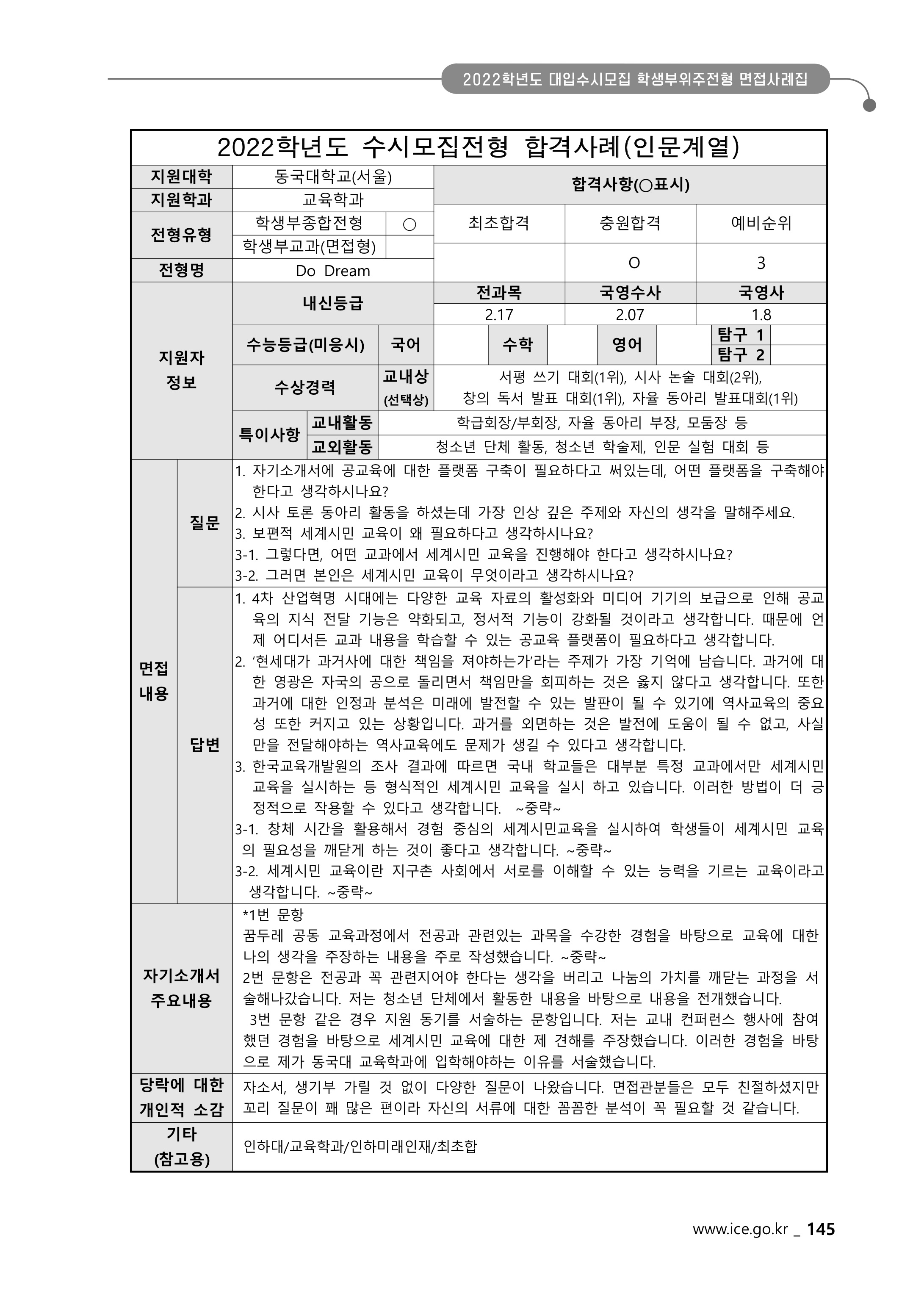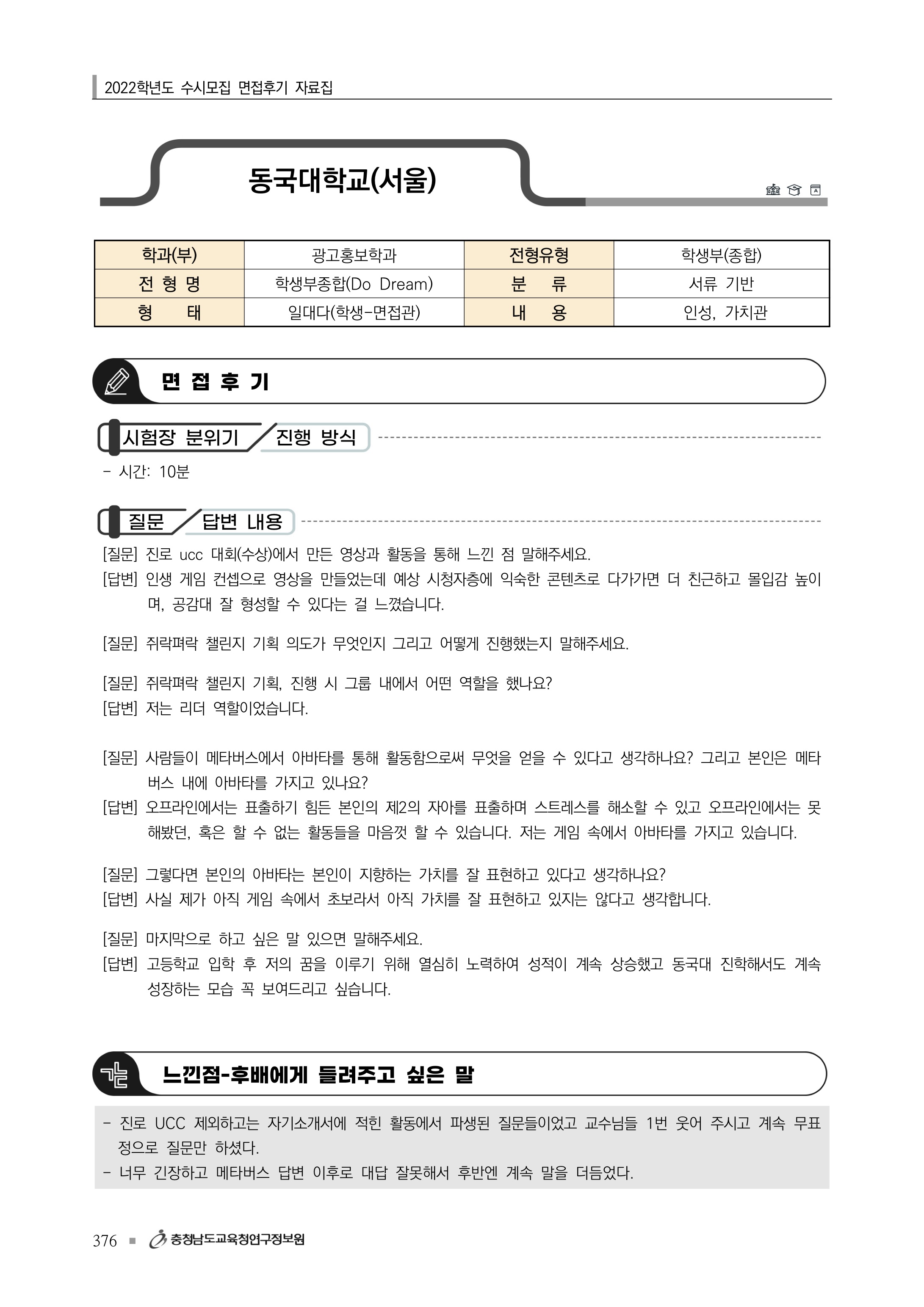 2022학년도 동국대학교 면접 후기4 - 광고홍보학과 2022학년도 동국대학교 면접 후기5 - 교육학과