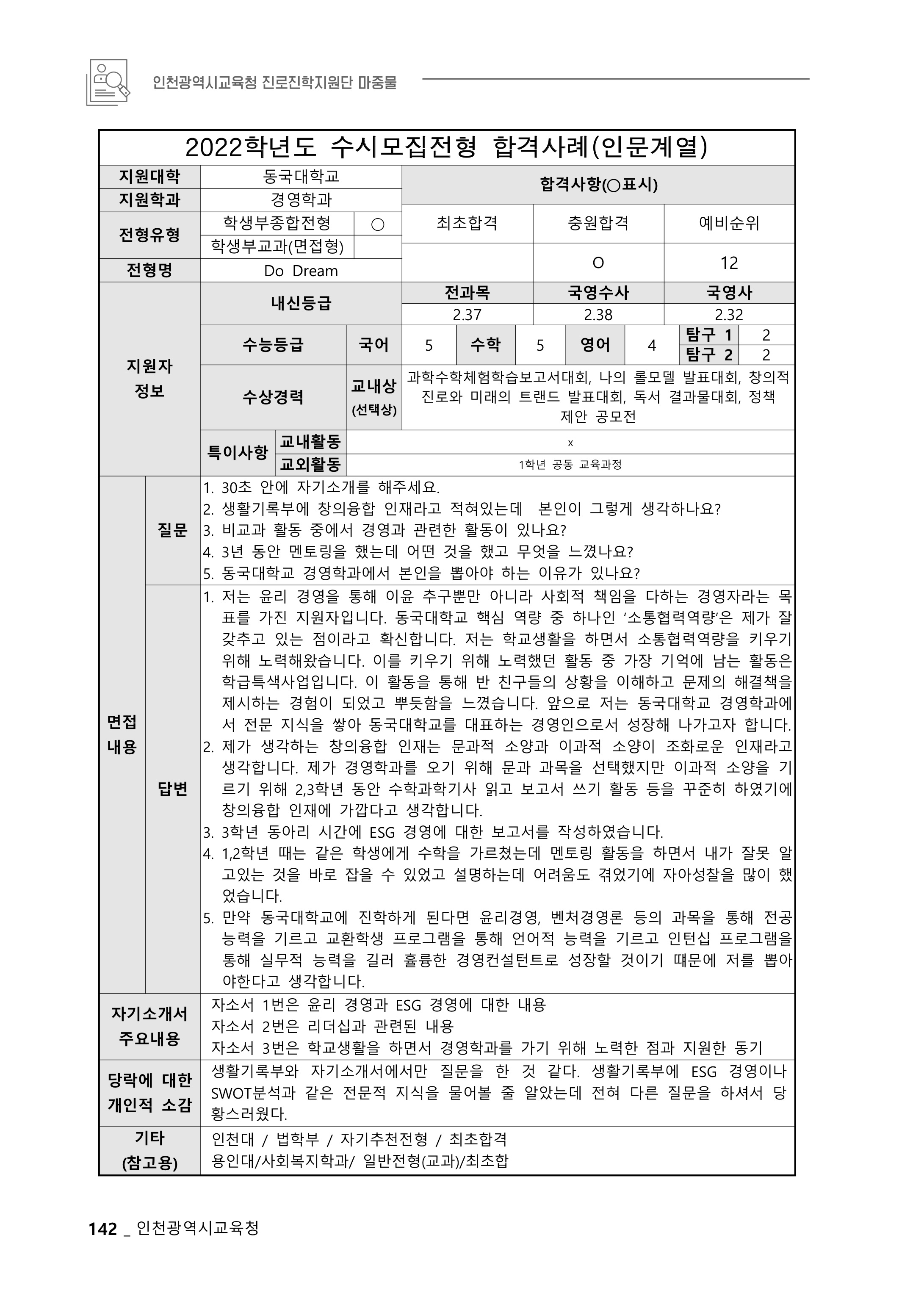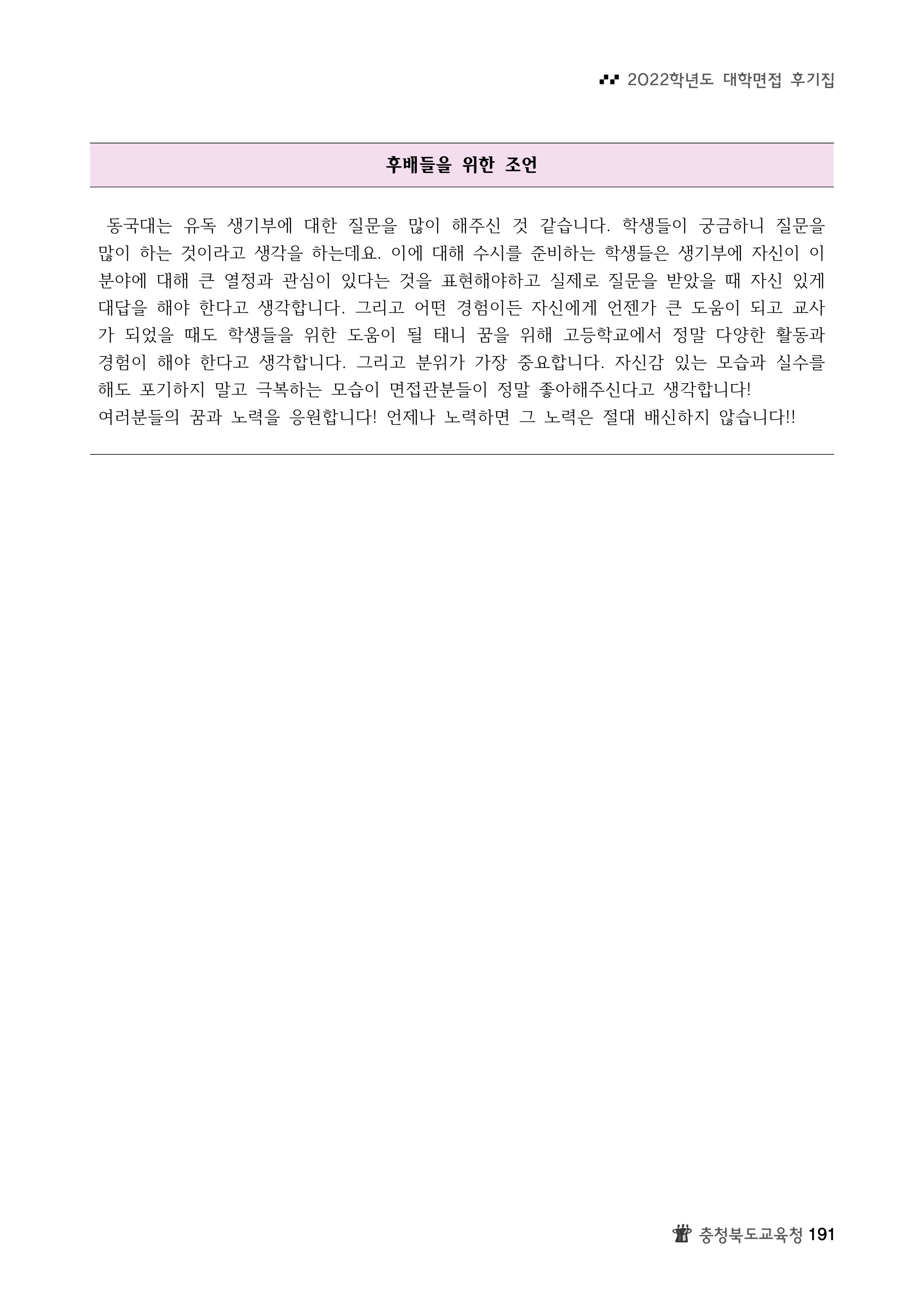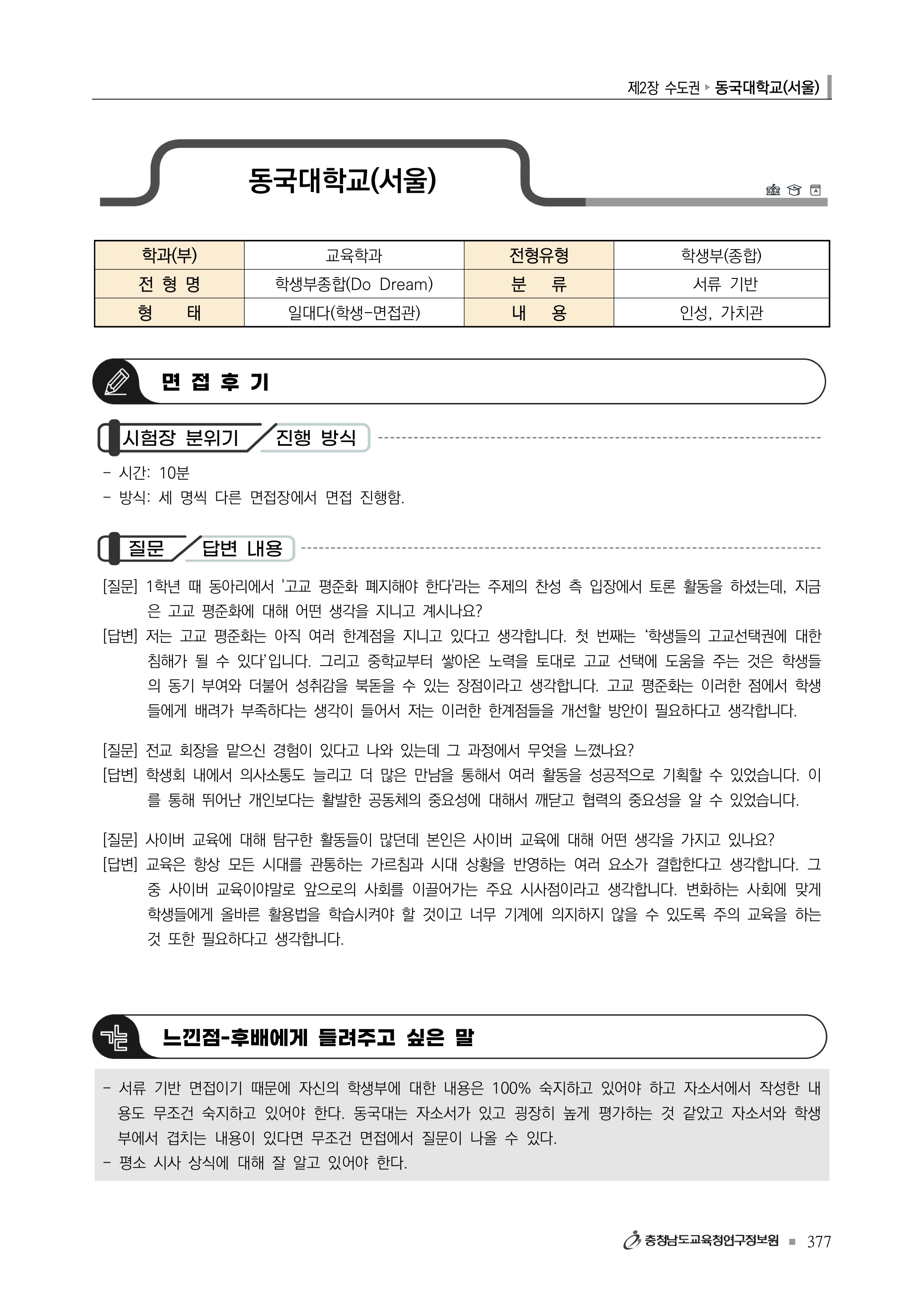 2022학년도 동국대학교 면접 후기4 - 광고홍보학과 2022학년도 동국대학교 면접 후기5 - 교육학과