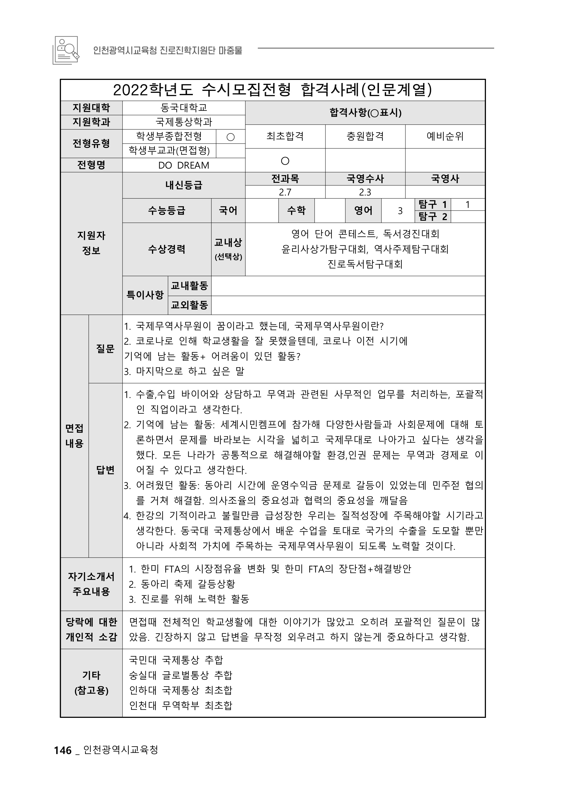 2022학년도 동국대학교 면접 후기8 - 국제통상학과 2022학년도 동국대학교 면접 후기9 - 국제통상학과