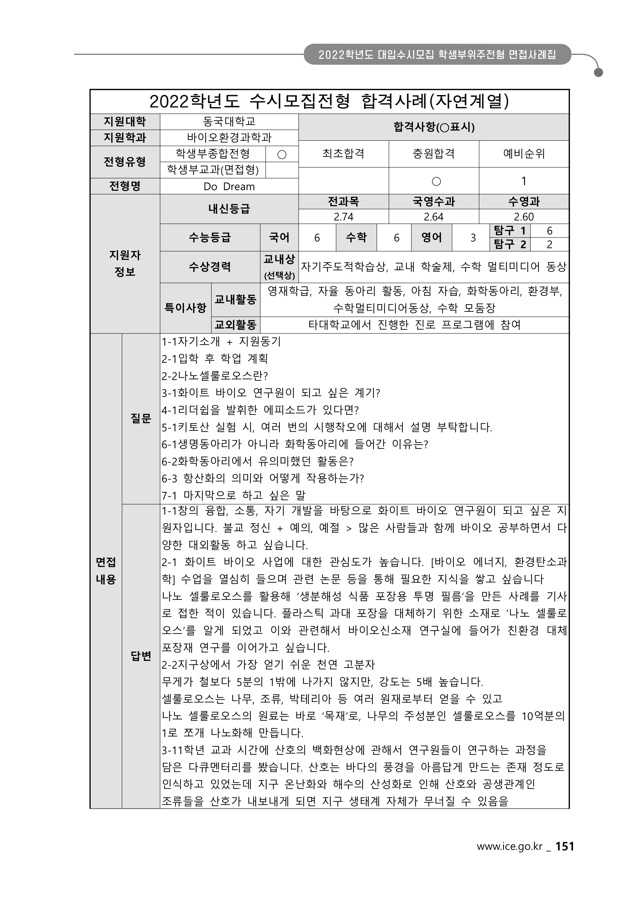 2022학년도 동국대학교 면접 후기14 - 바이오환경과학과