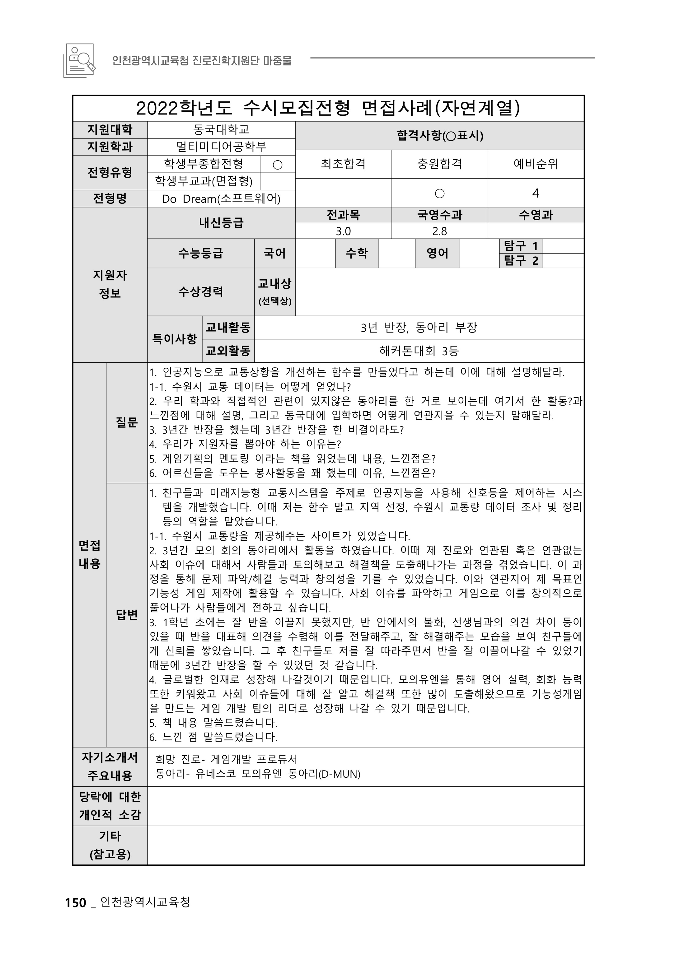2022학년도 동국대학교 면접 후기16 - 북한학전공 2022학년도 동국대학교 면접 후기17 - 산업시스템공학과