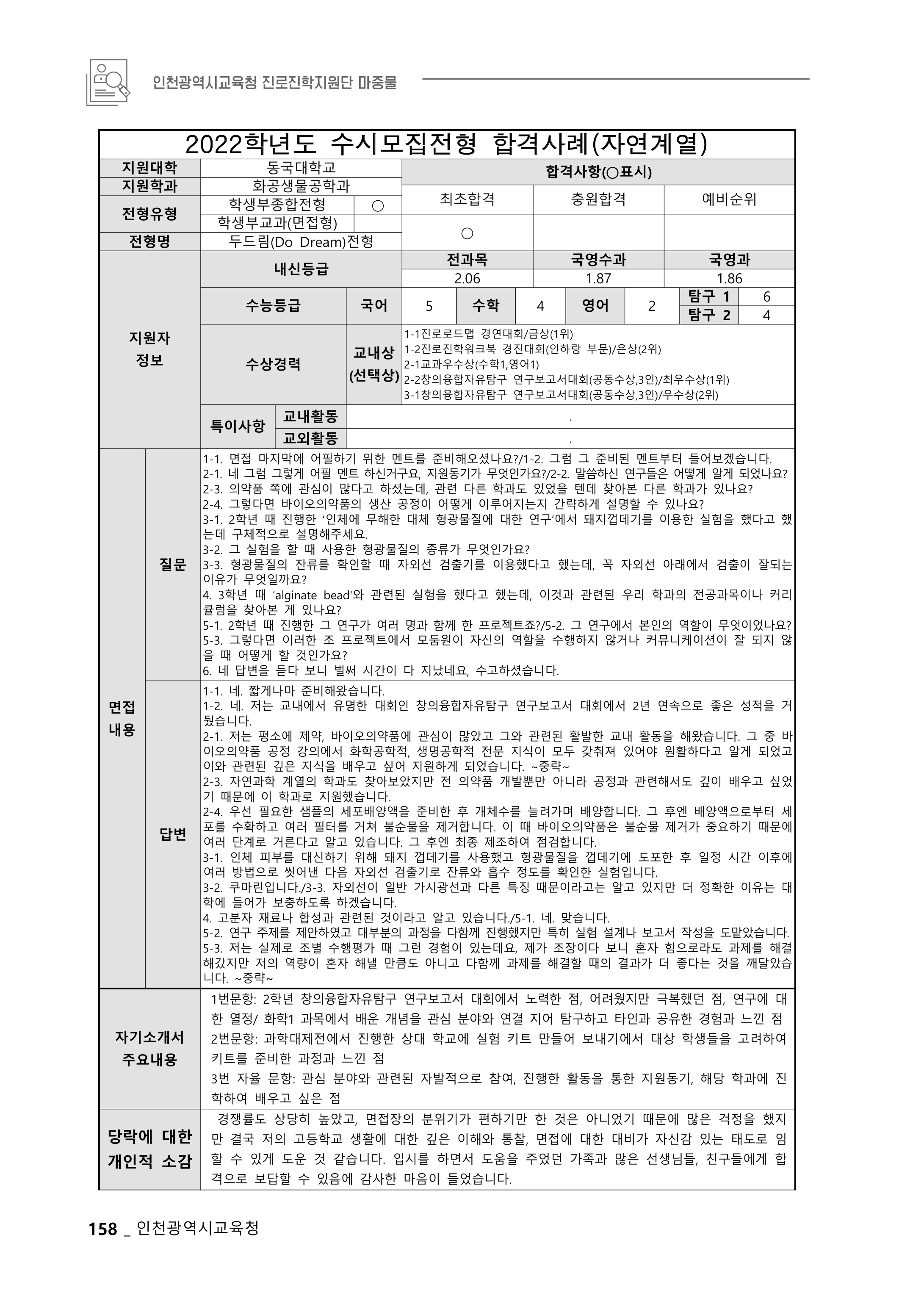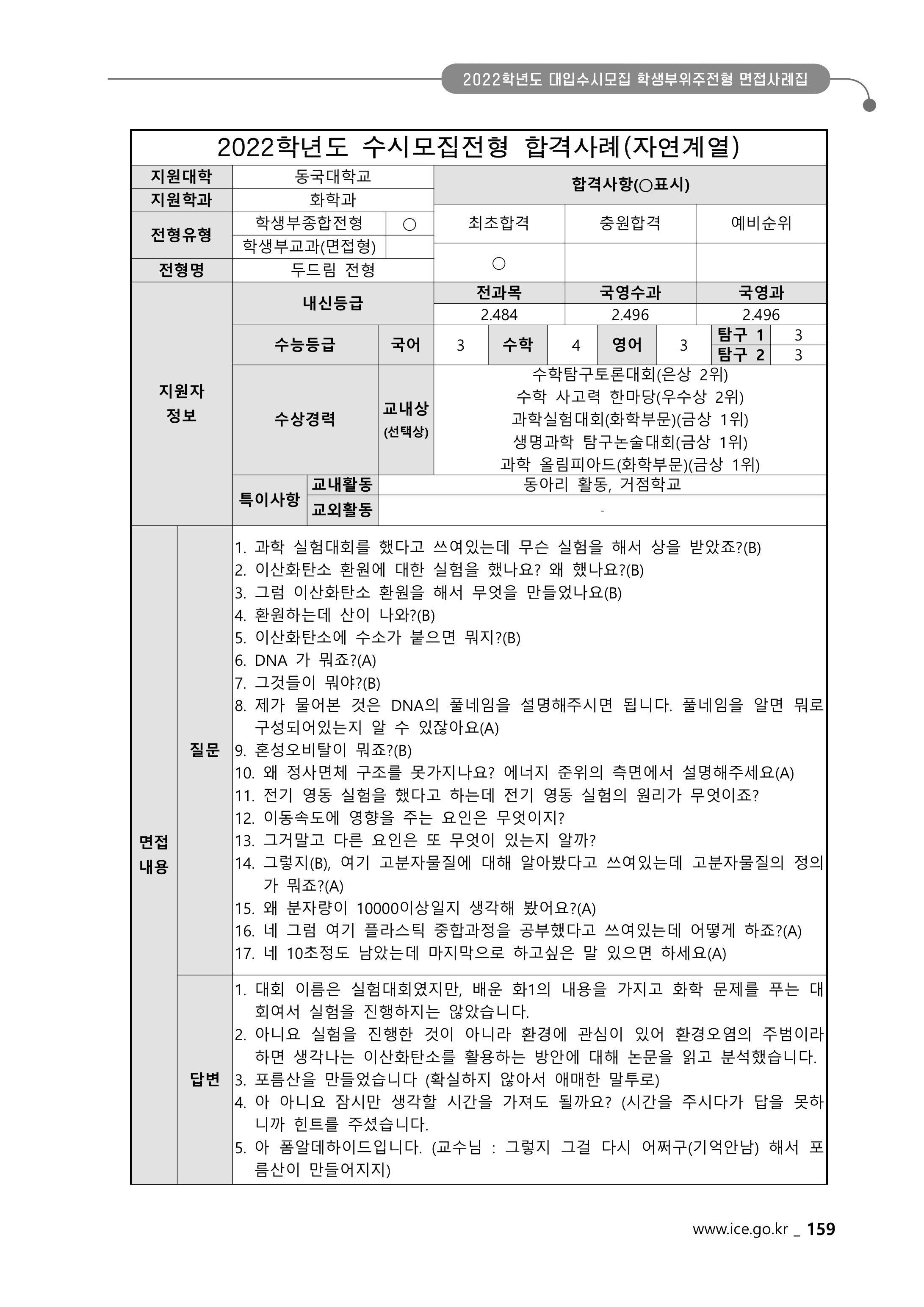 2022학년도 동국대학교 면접 후기35 - 화학과