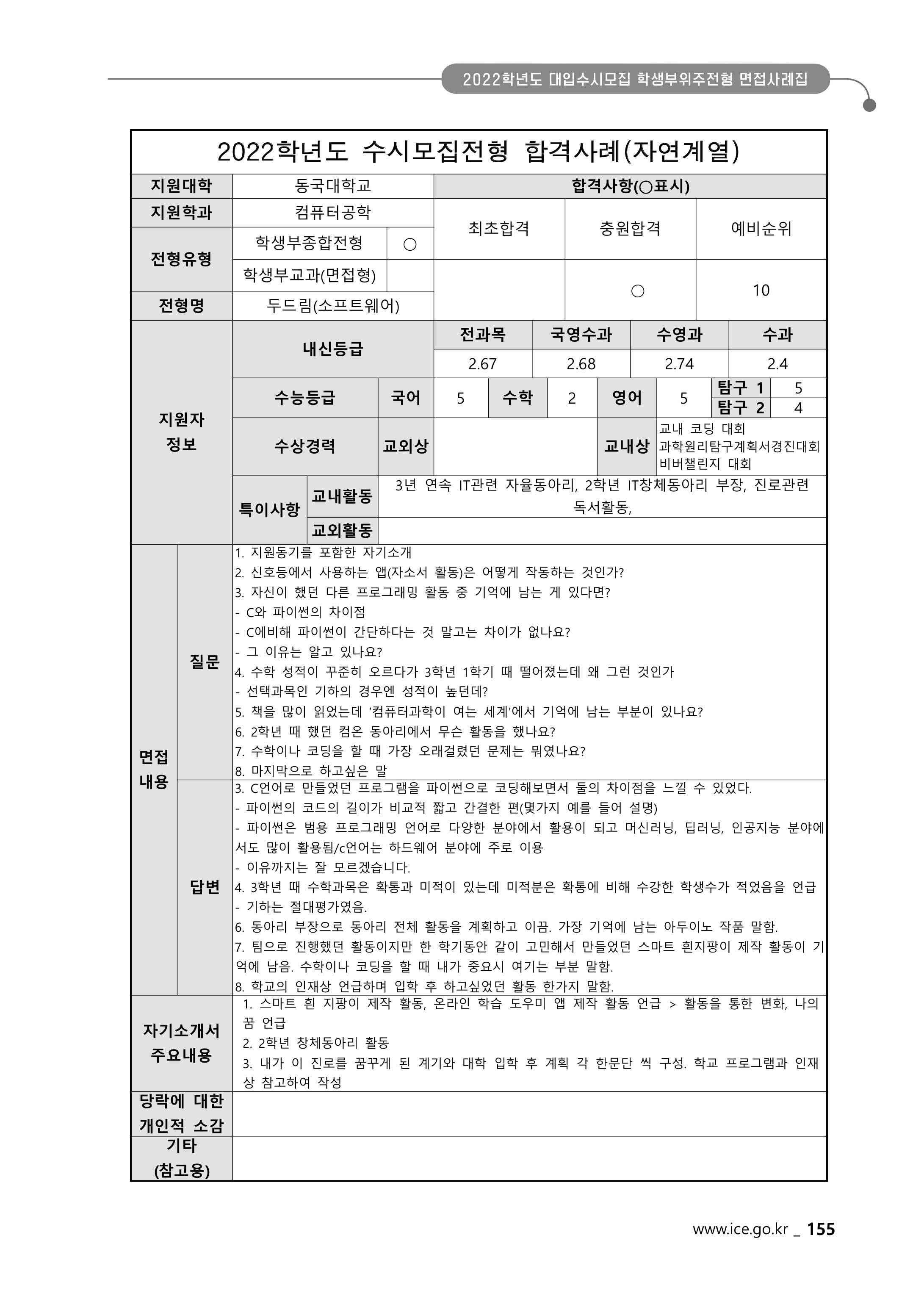 2022학년도 동국대학교 면접 후기30 - 컴퓨터공학과 2022학년도 동국대학교 면접 후기31 - 통계학과