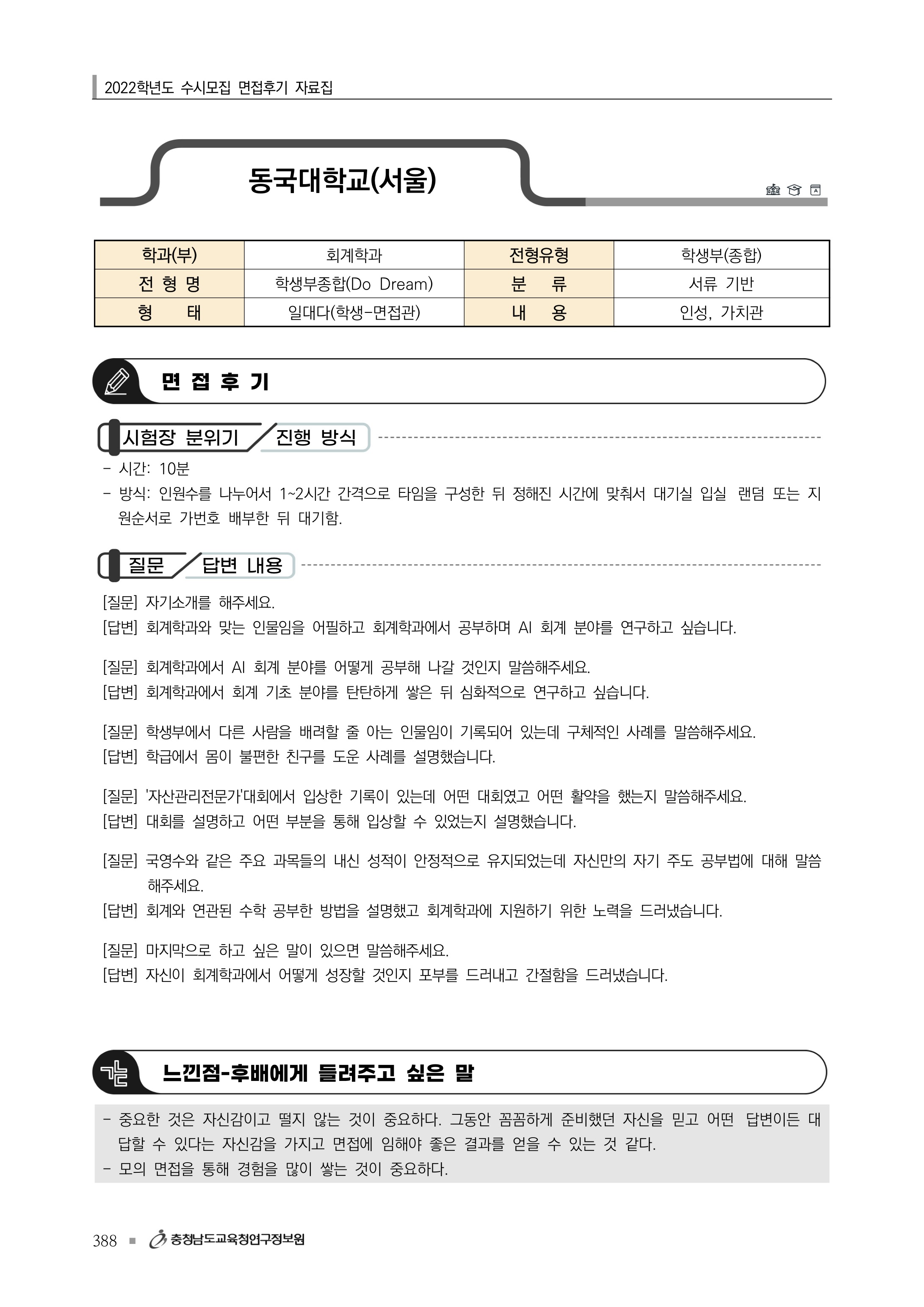 2022학년도 동국대학교 면접 후기36 - 회계학과 2022학년도 동국대학교 면접 후기37 - AI융합학부