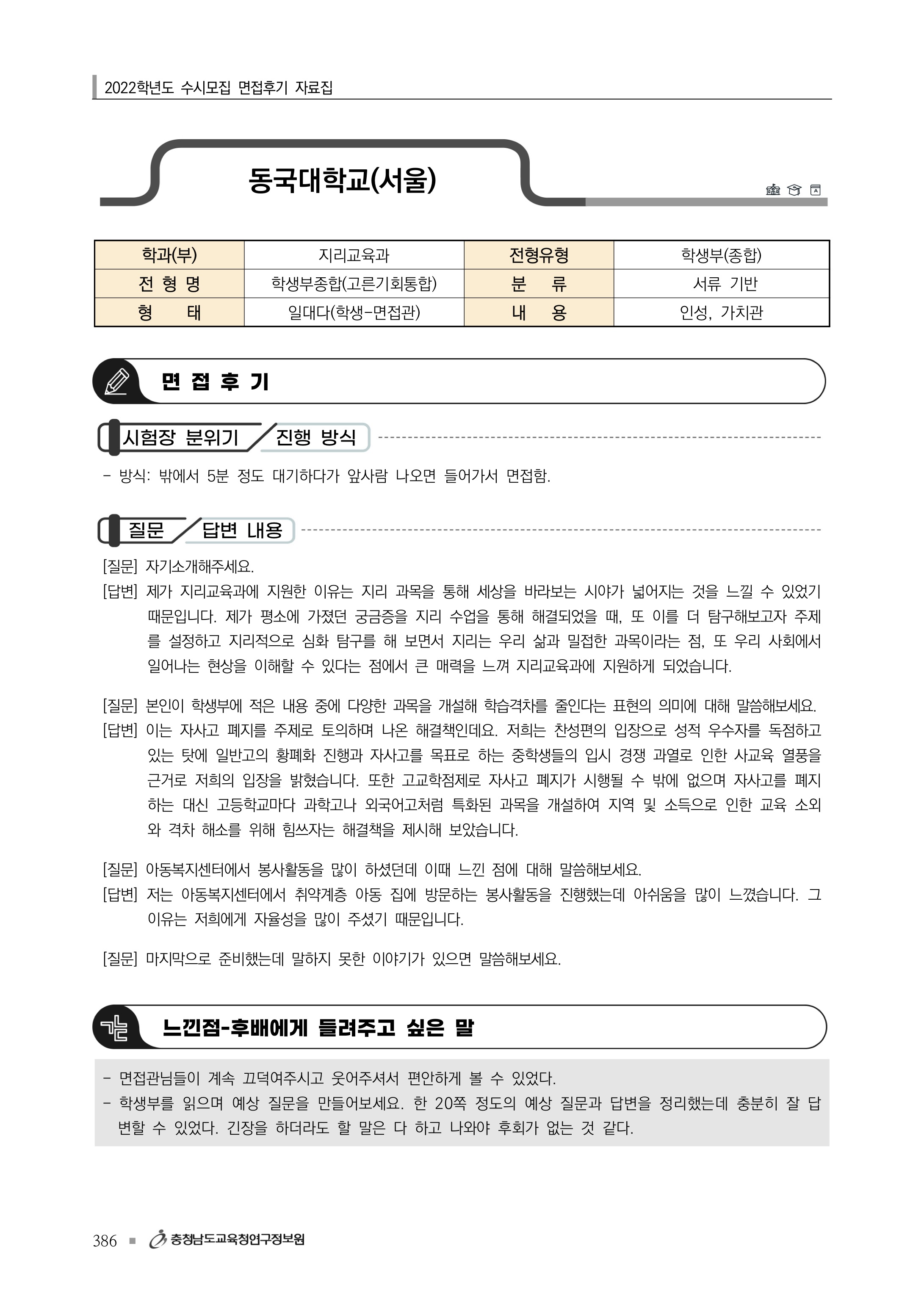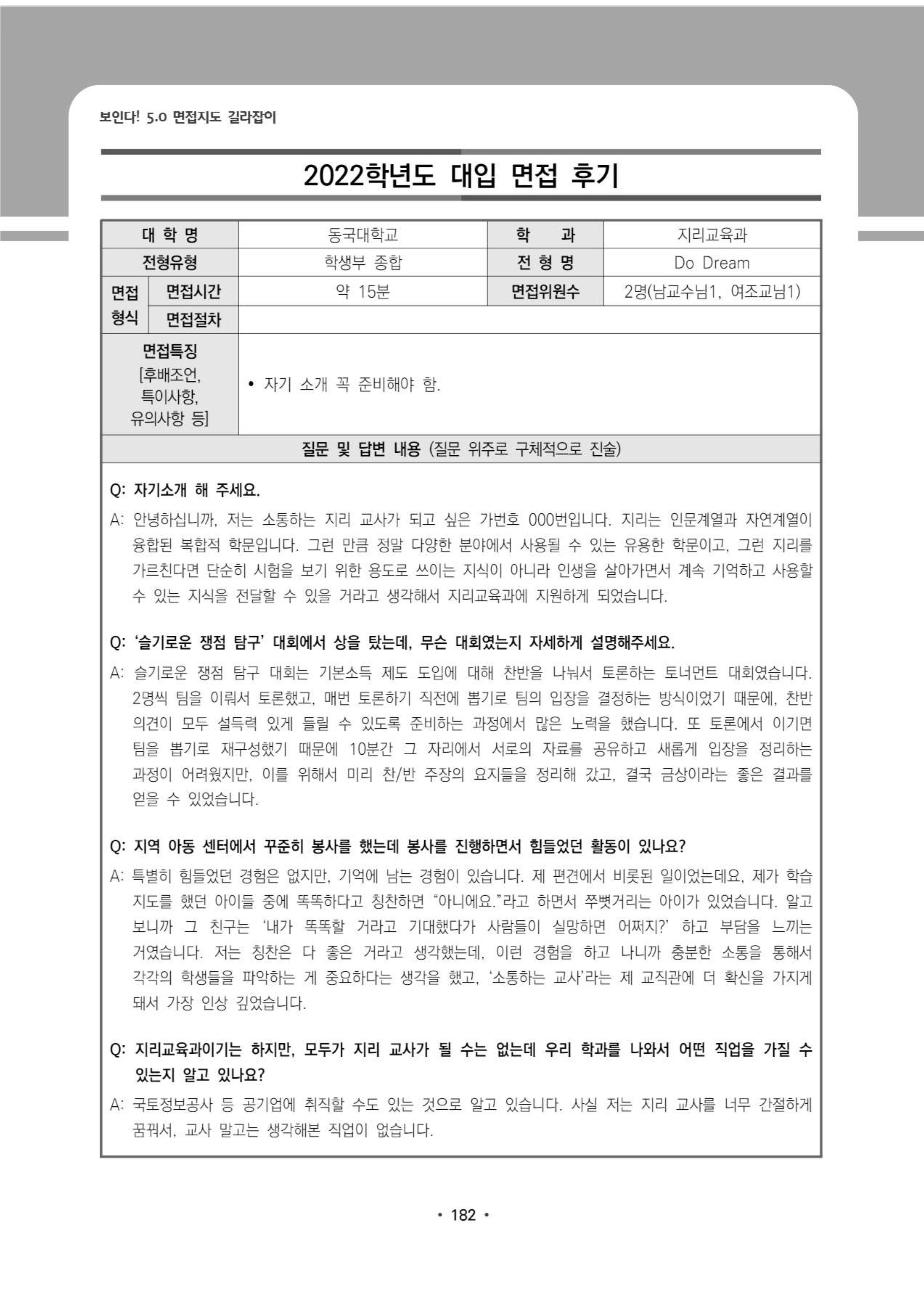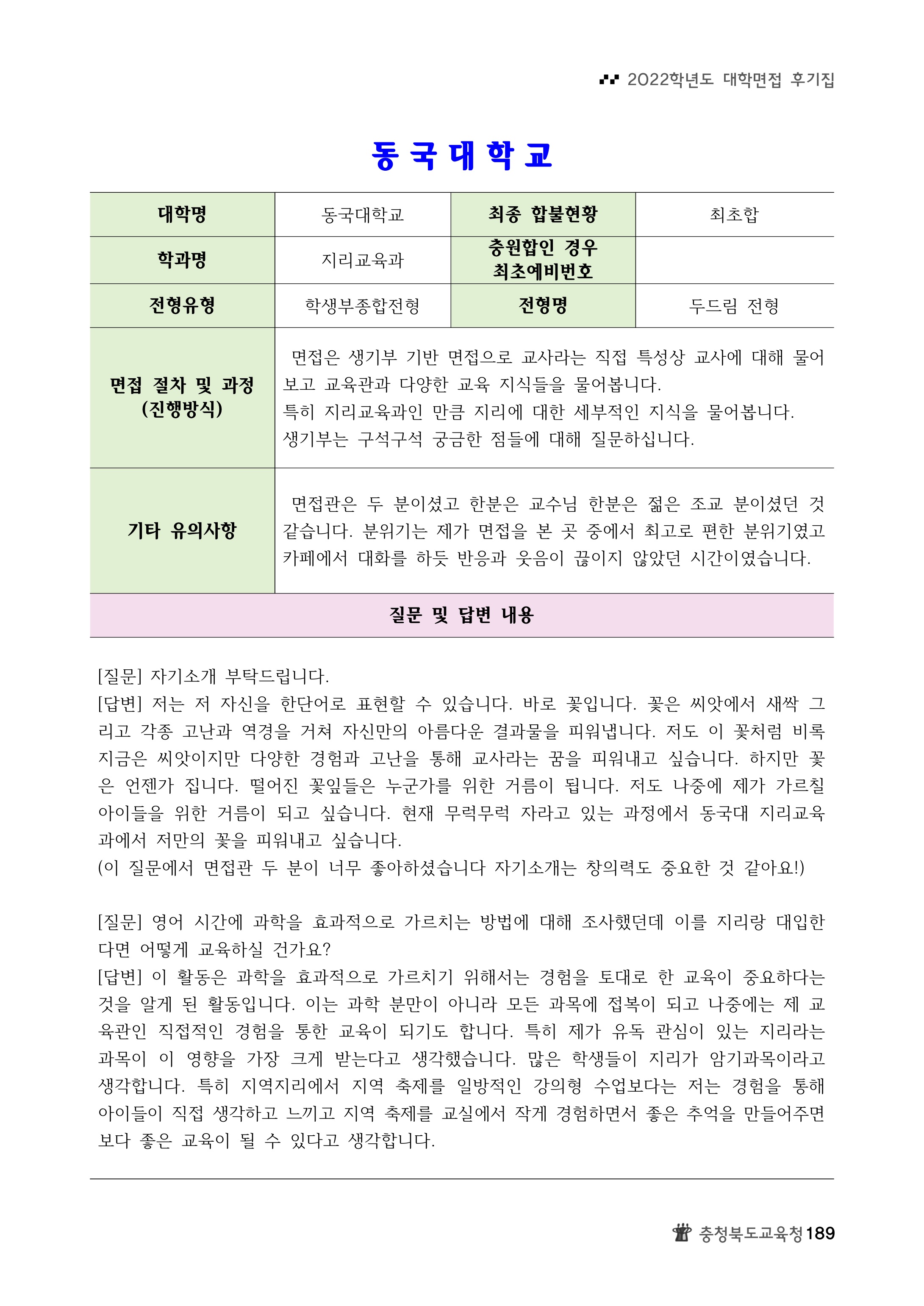 2022학년도 동국대학교 면접 후기28 - 지리교육과