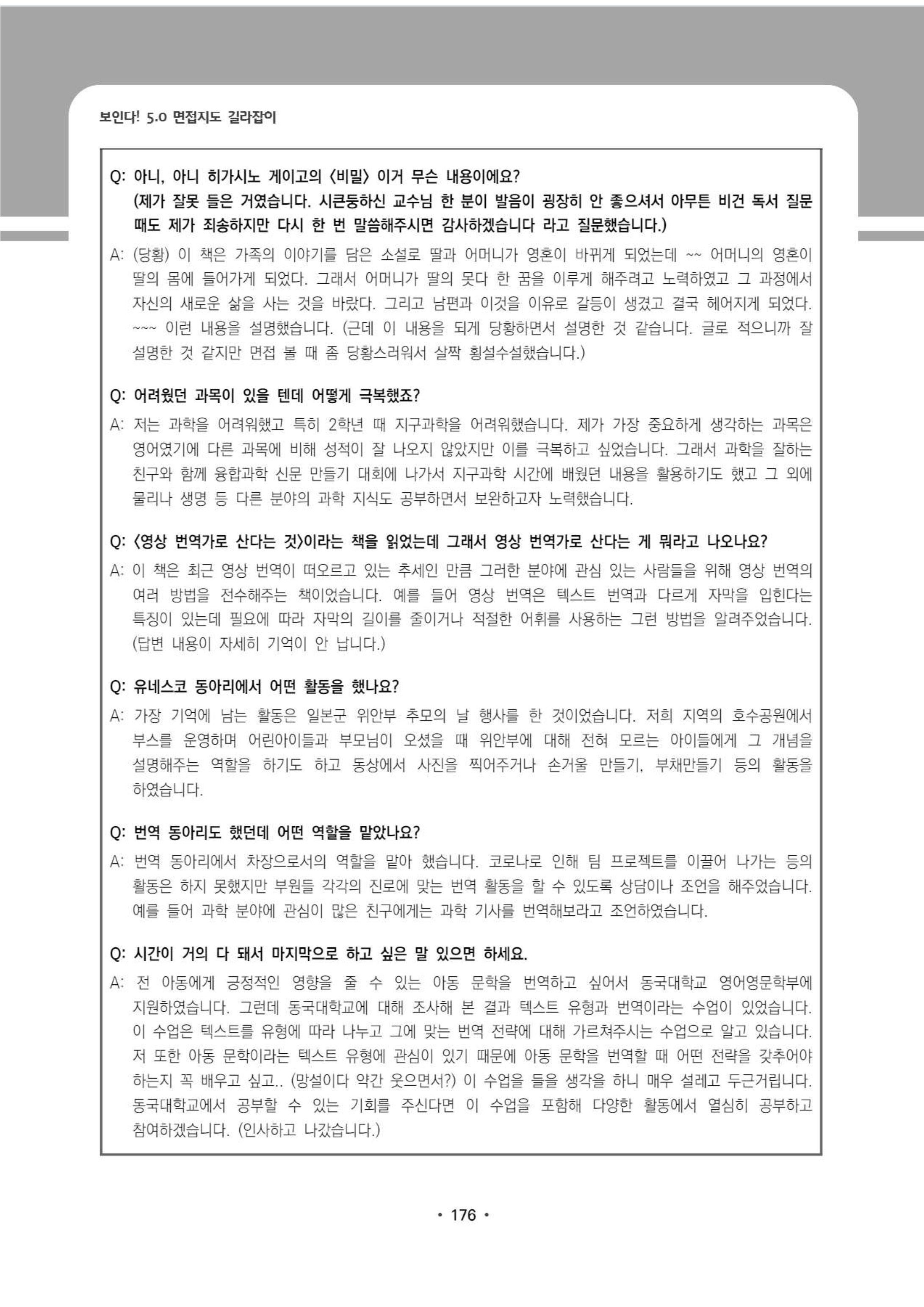 - 영문학 작품을 번역하는 활동을 통해서 배운점이 있다면 무엇인가요?(학생부-동아리활동)