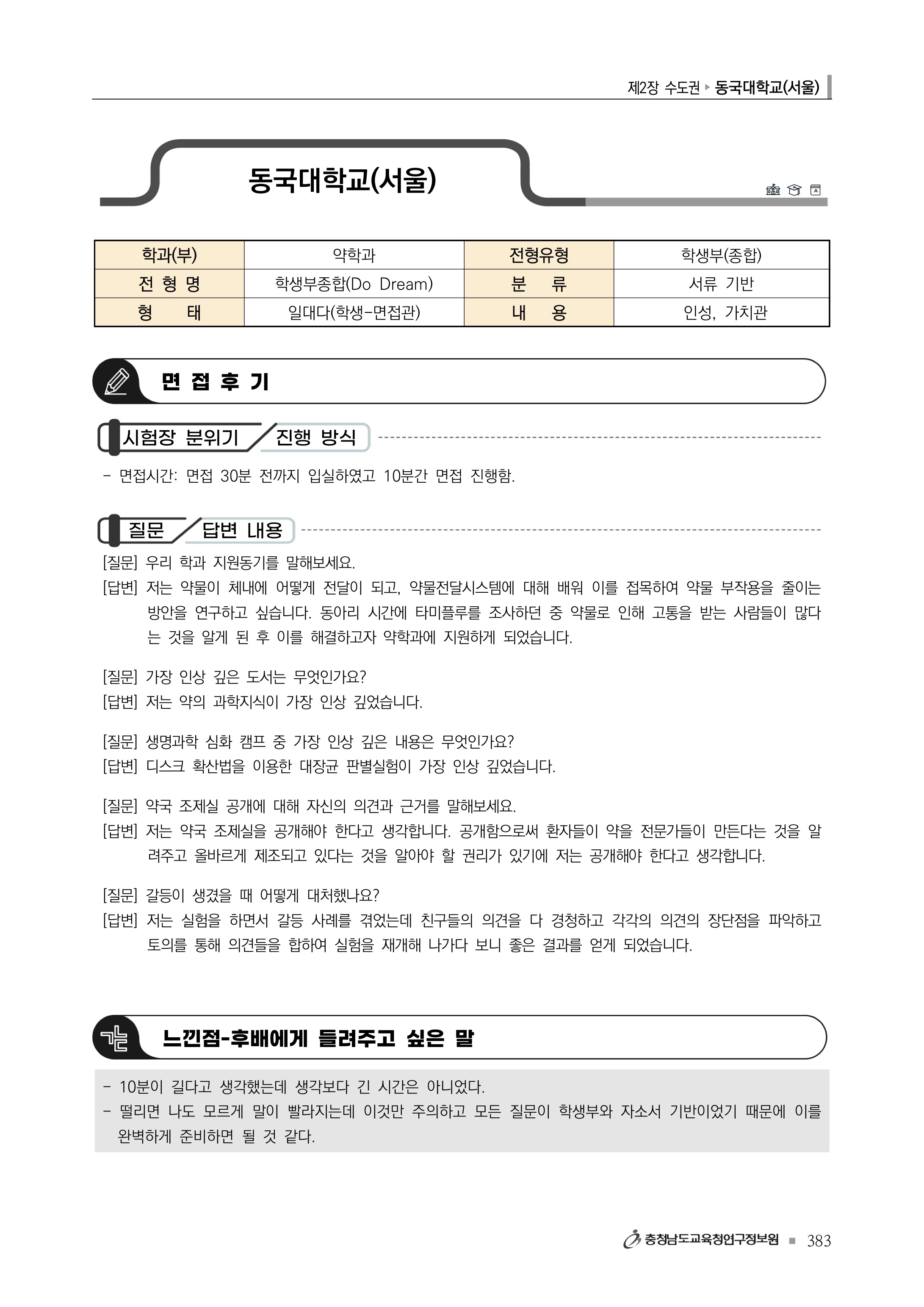 2022학년도 동국대학교 면접 후기20 - 약학과 2022학년도 동국대학교 면접 후기21 - 역사교육과