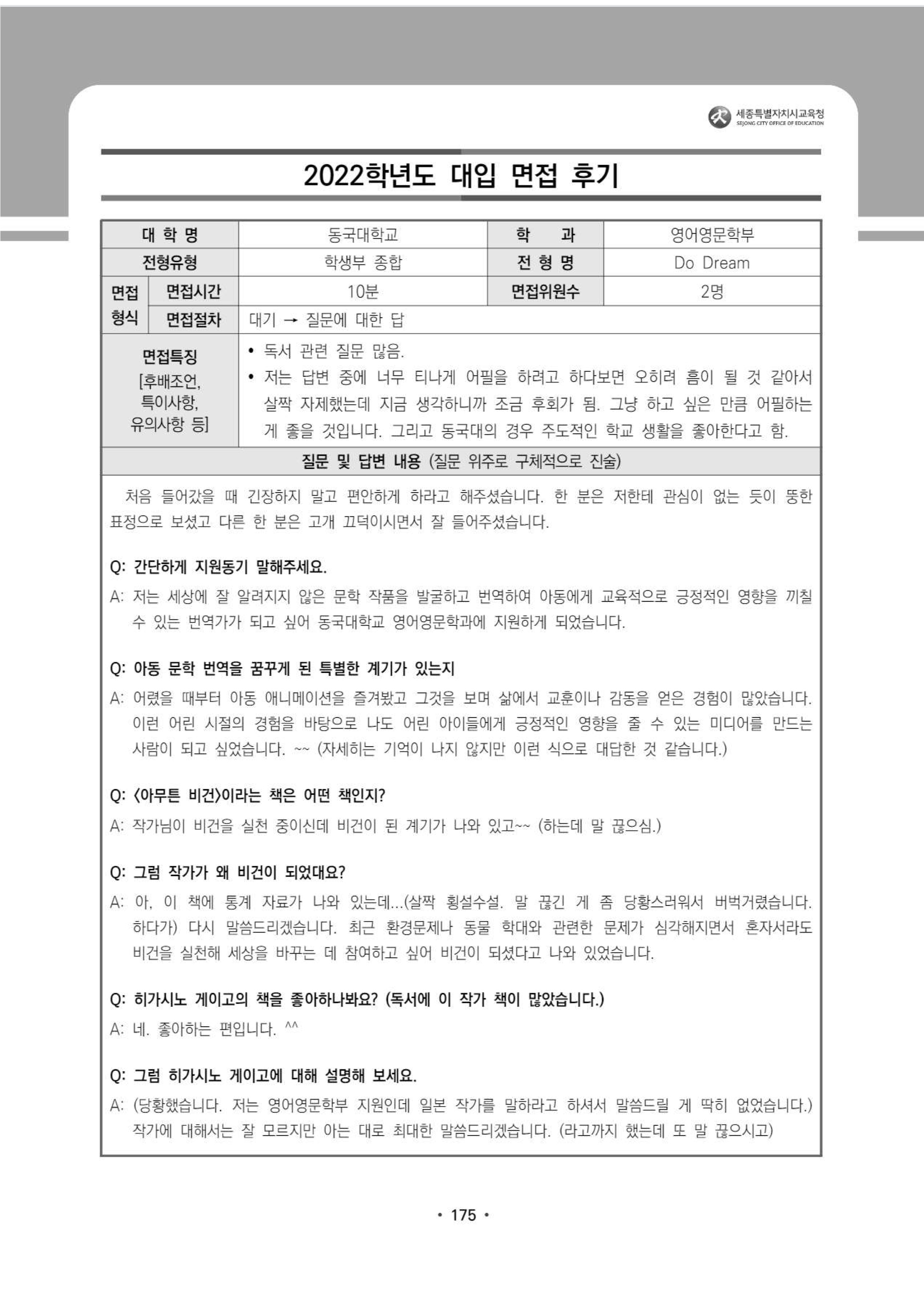 2022학년도 동국대학교 면접 후기22 - 영어영문학부