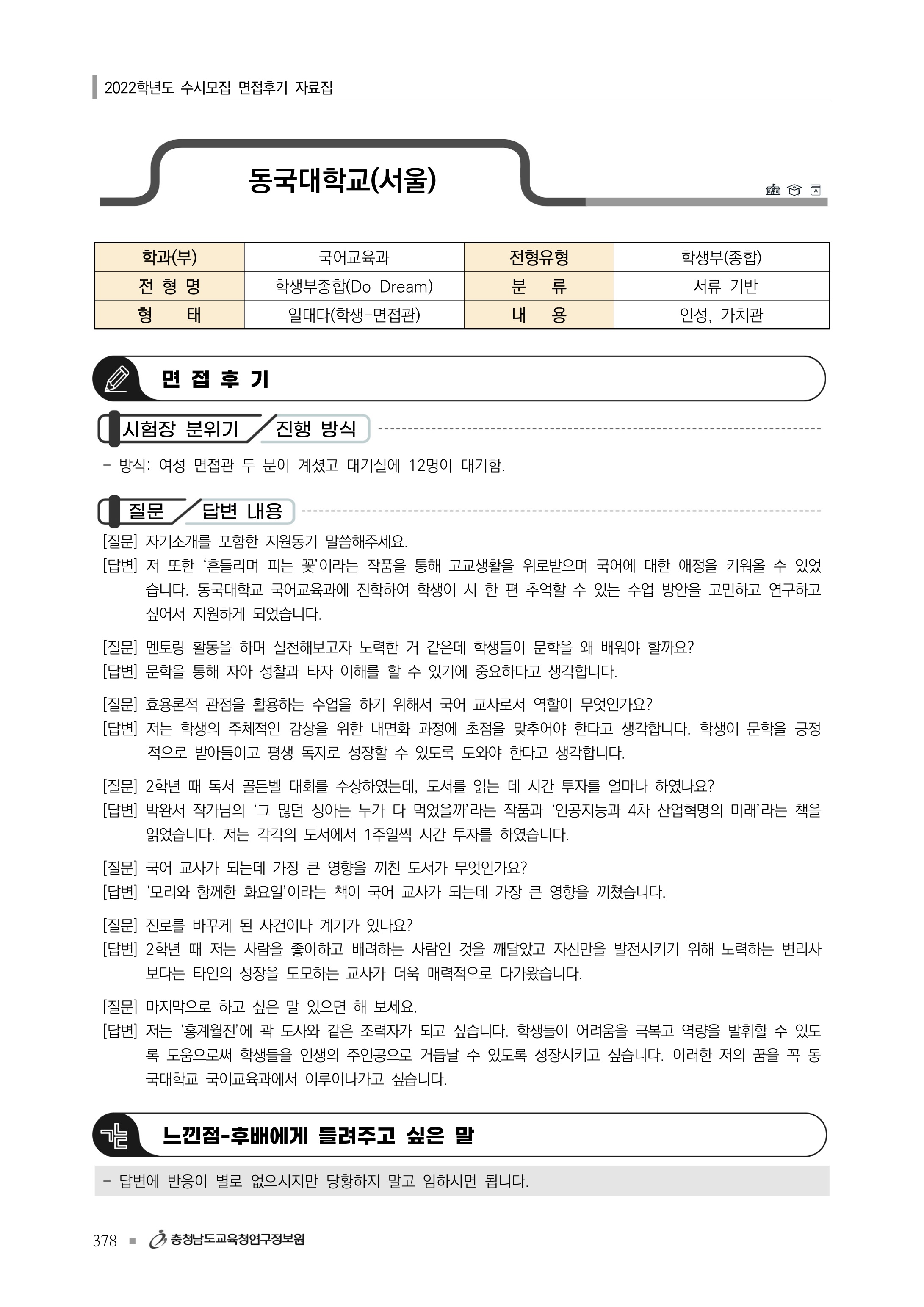 2022학년도 동국대학교 면접 후기6 - 교육학과 2022학년도 동국대학교 면접 후기7 - 국어교육과