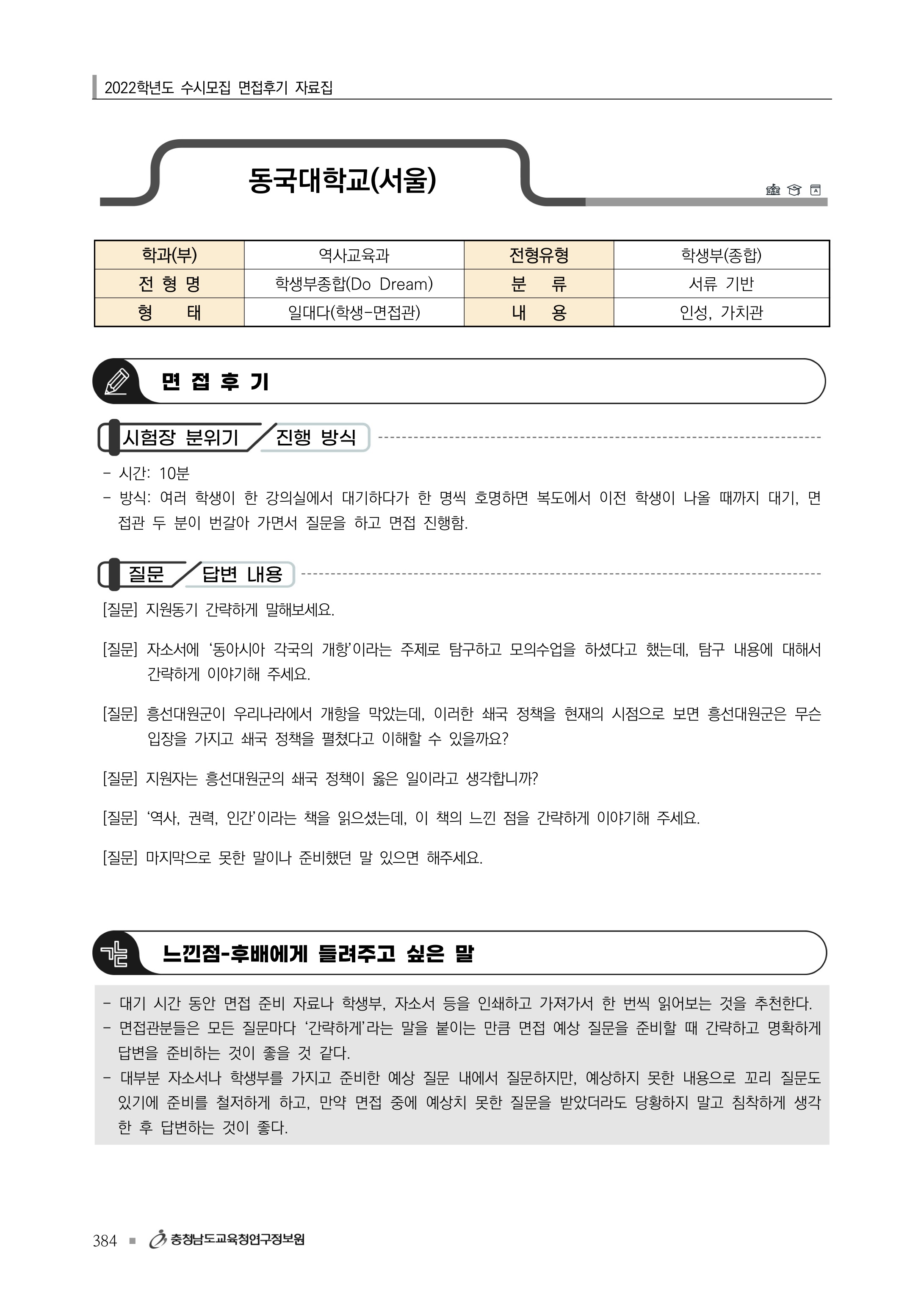 2022학년도 동국대학교 면접 후기21 - 역사교육과 2022학년도 동국대학교 면접 후기22 - 영어영문학부