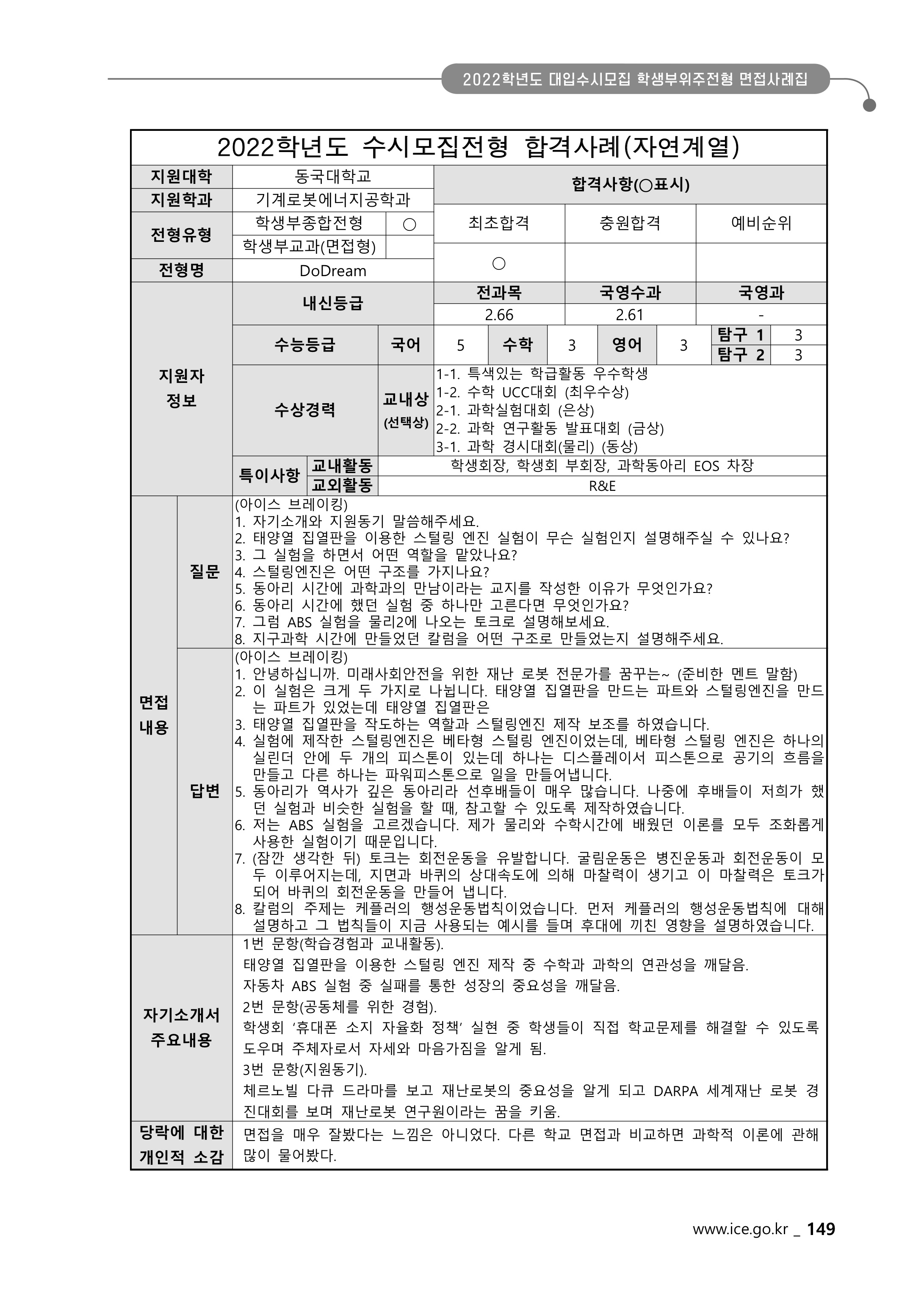 2022학년도 동국대학교 면접 후기10 - 기계로봇에너지공학과 2022학년도 동국대학교 면접 후기11 - 멀티미디어공학과