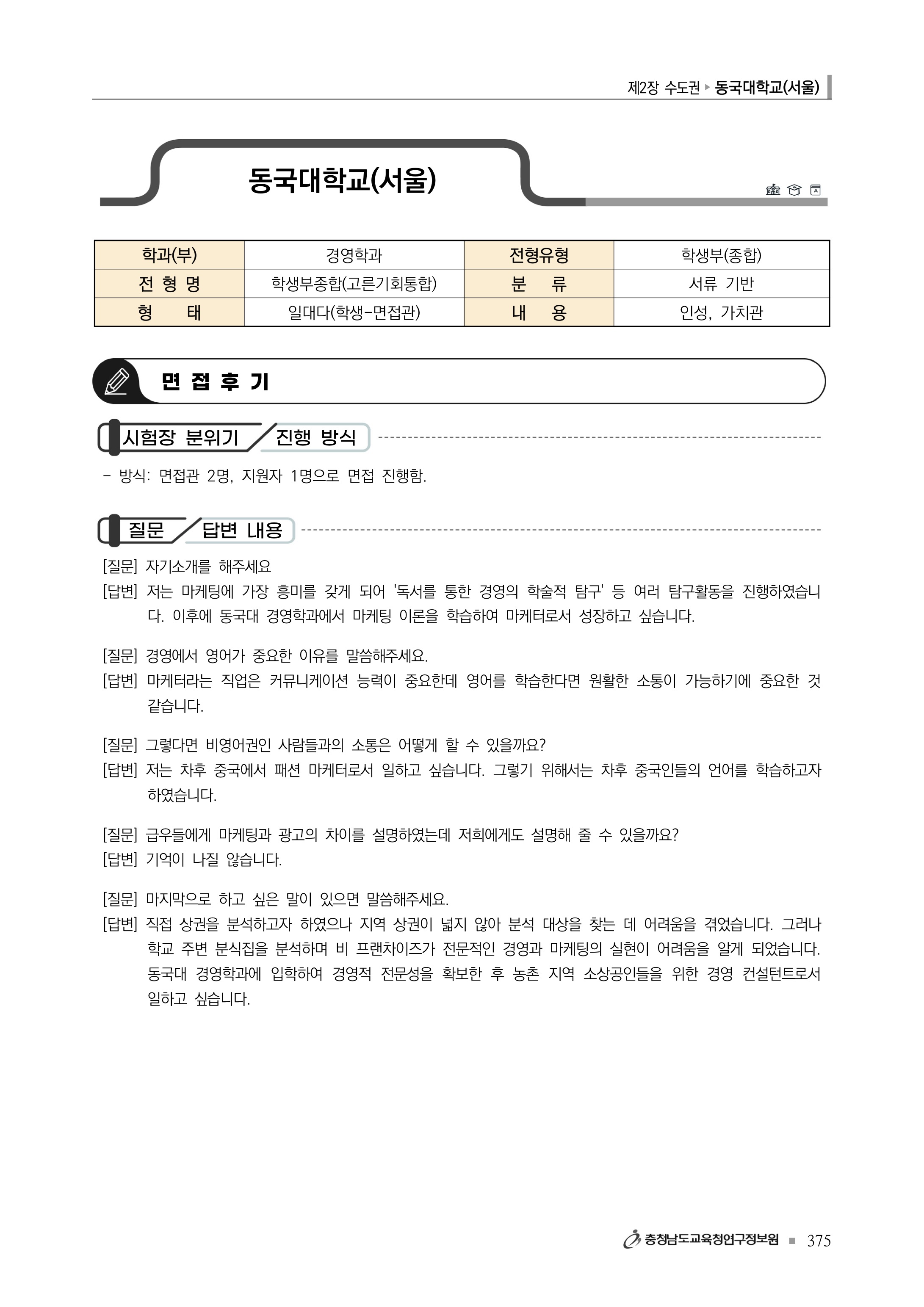 2022학년도 동국대학교 면접 후기1 - 경영학과