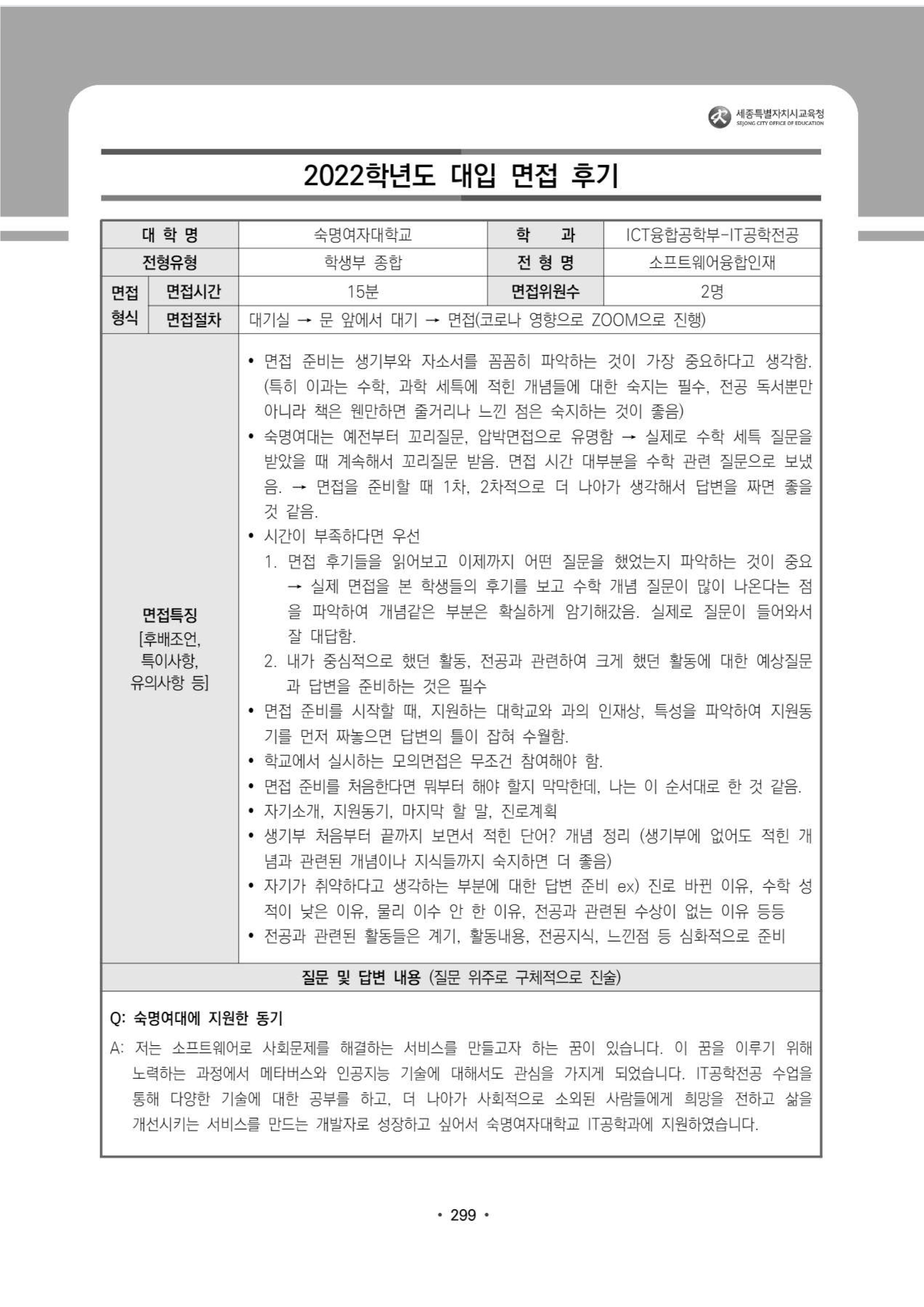 2022학년도 숙명여자대학교 면접 후기9 - IT공학전공