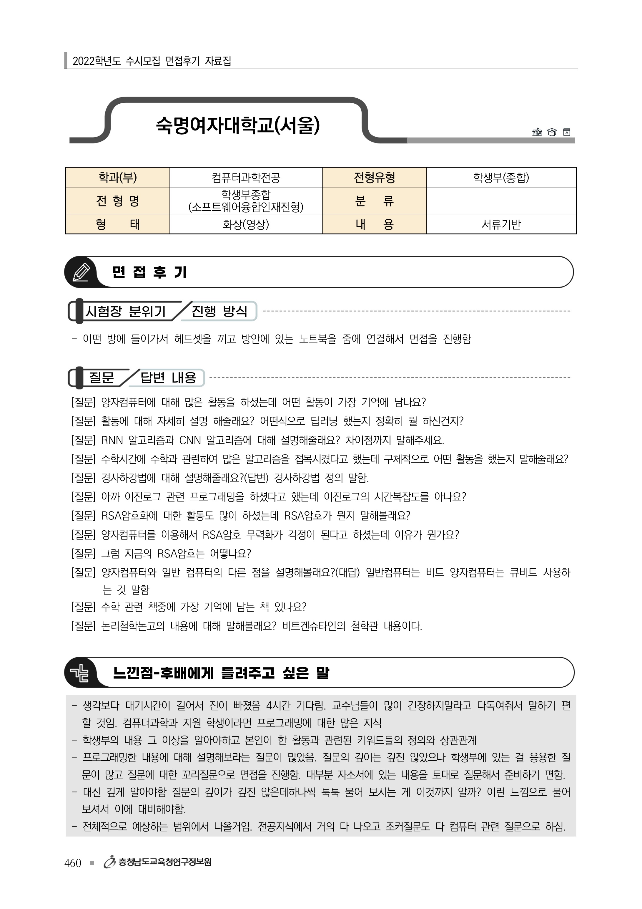 2022학년도 숙명여자대학교 면접 후기6 - 컴퓨터과학전공 2022학년도 숙명여자대학교 면접 후기7 - 홍보광고학과