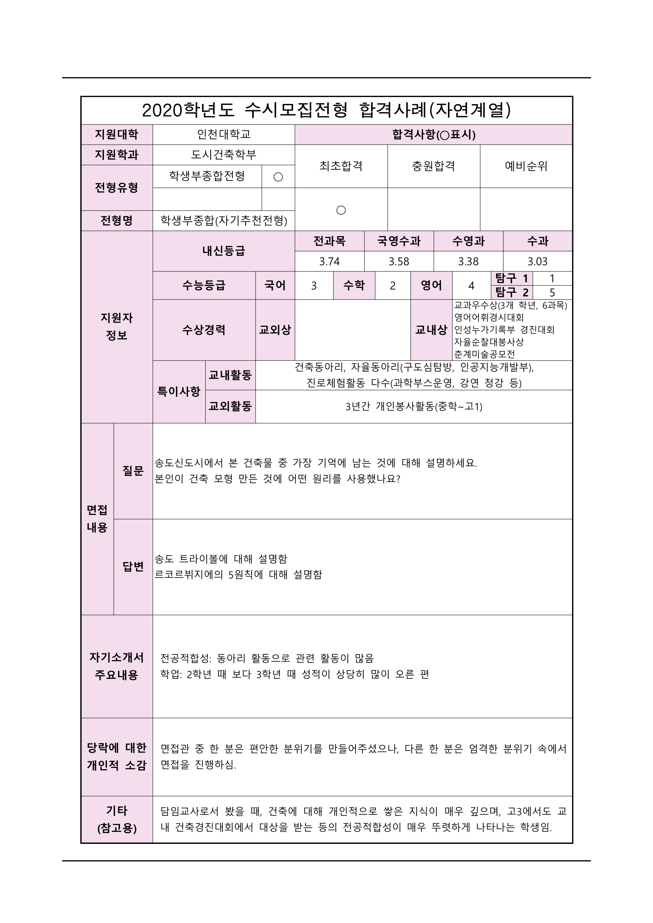 2021학년도 인천대학교 면접 후기6 - 도시건축학부 2021학년도 인천대학교 면접 후기7 - 도시건축학부