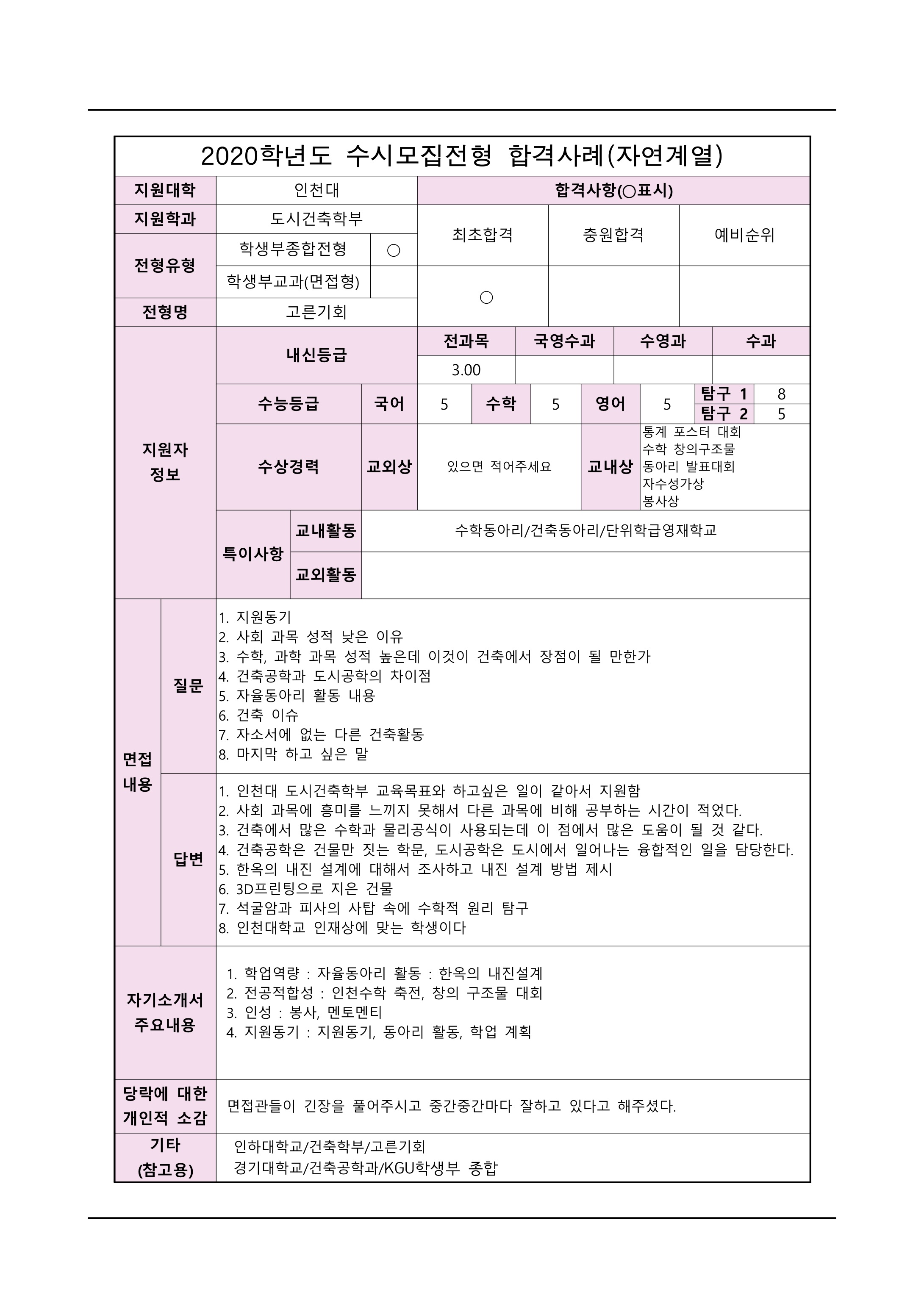 2021학년도 인천대학교 면접 후기7 - 도시건축학부 2021학년도 인천대학교 면접 후기8 - 도시건축학부