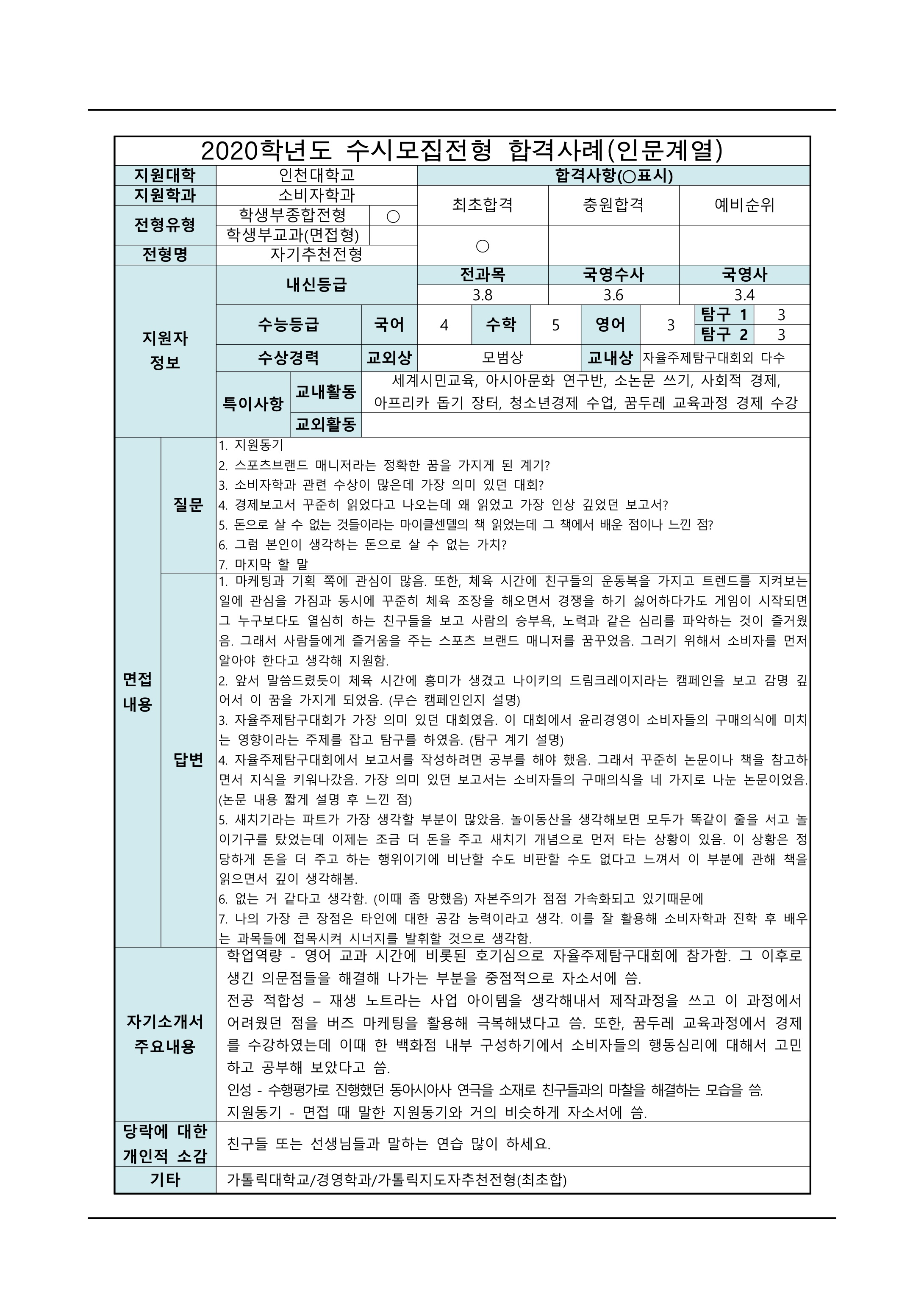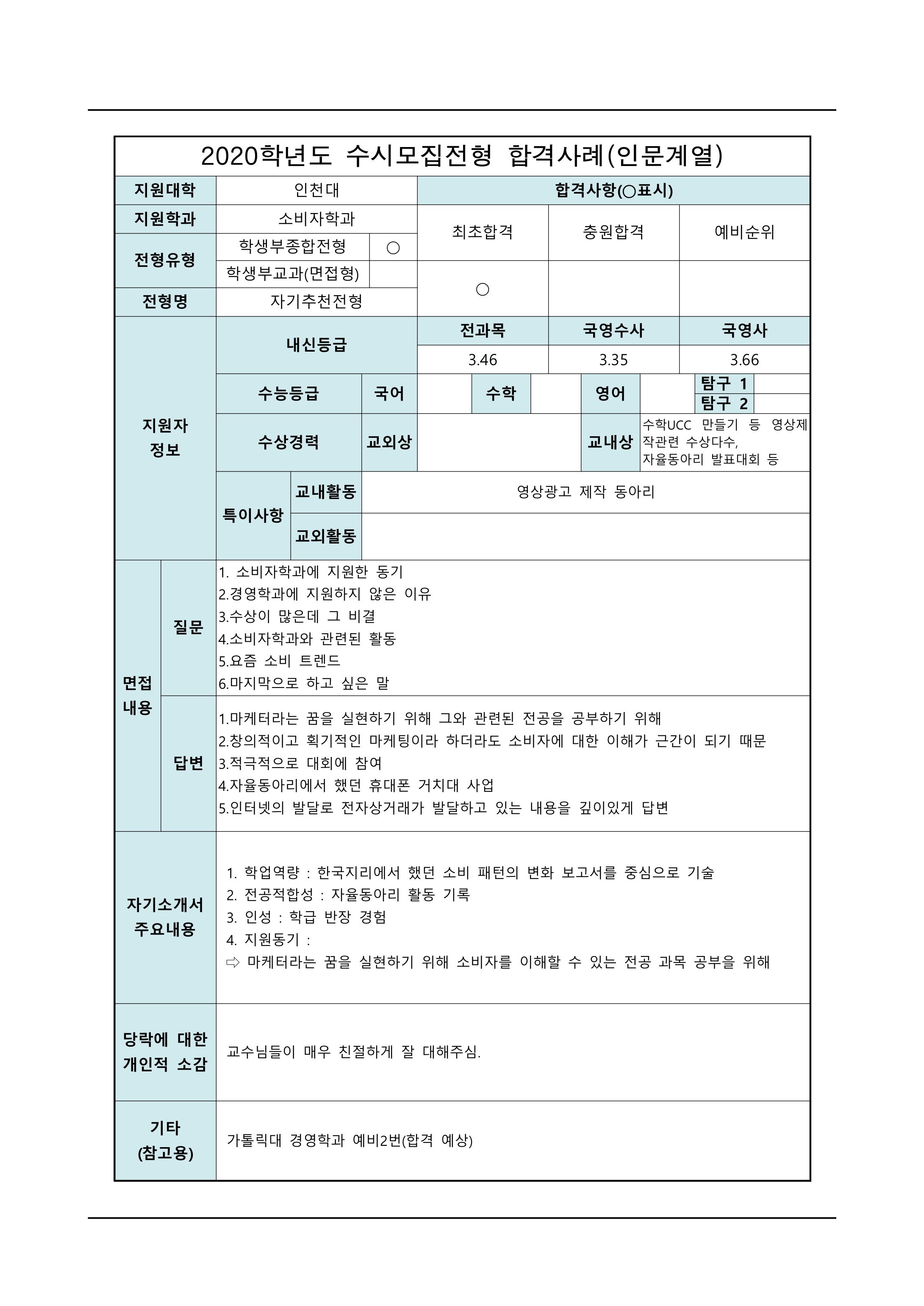 2021학년도 인천대학교 면접 후기20 - 소비자학과 2021학년도 인천대학교 면접 후기21 - 소비자학과