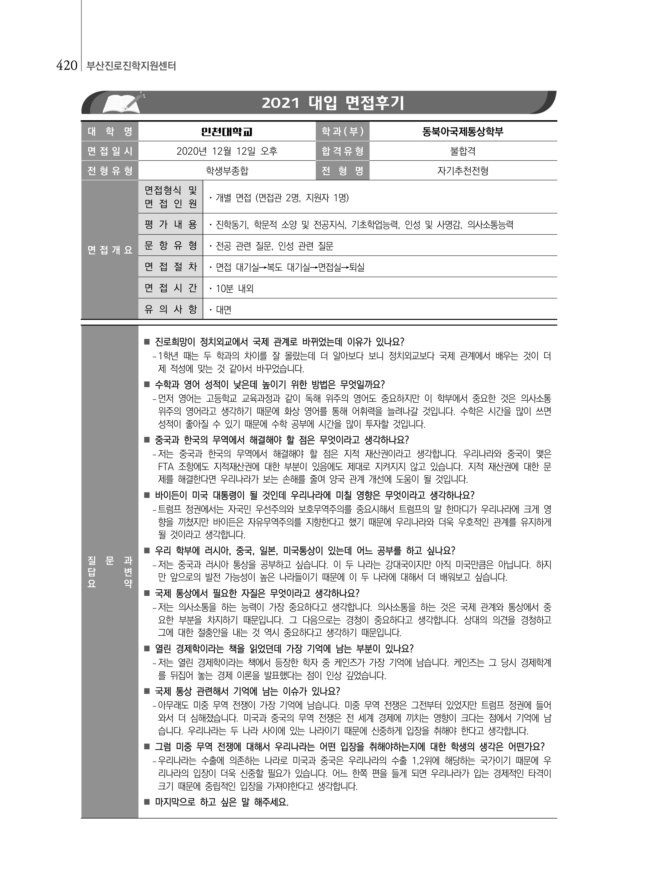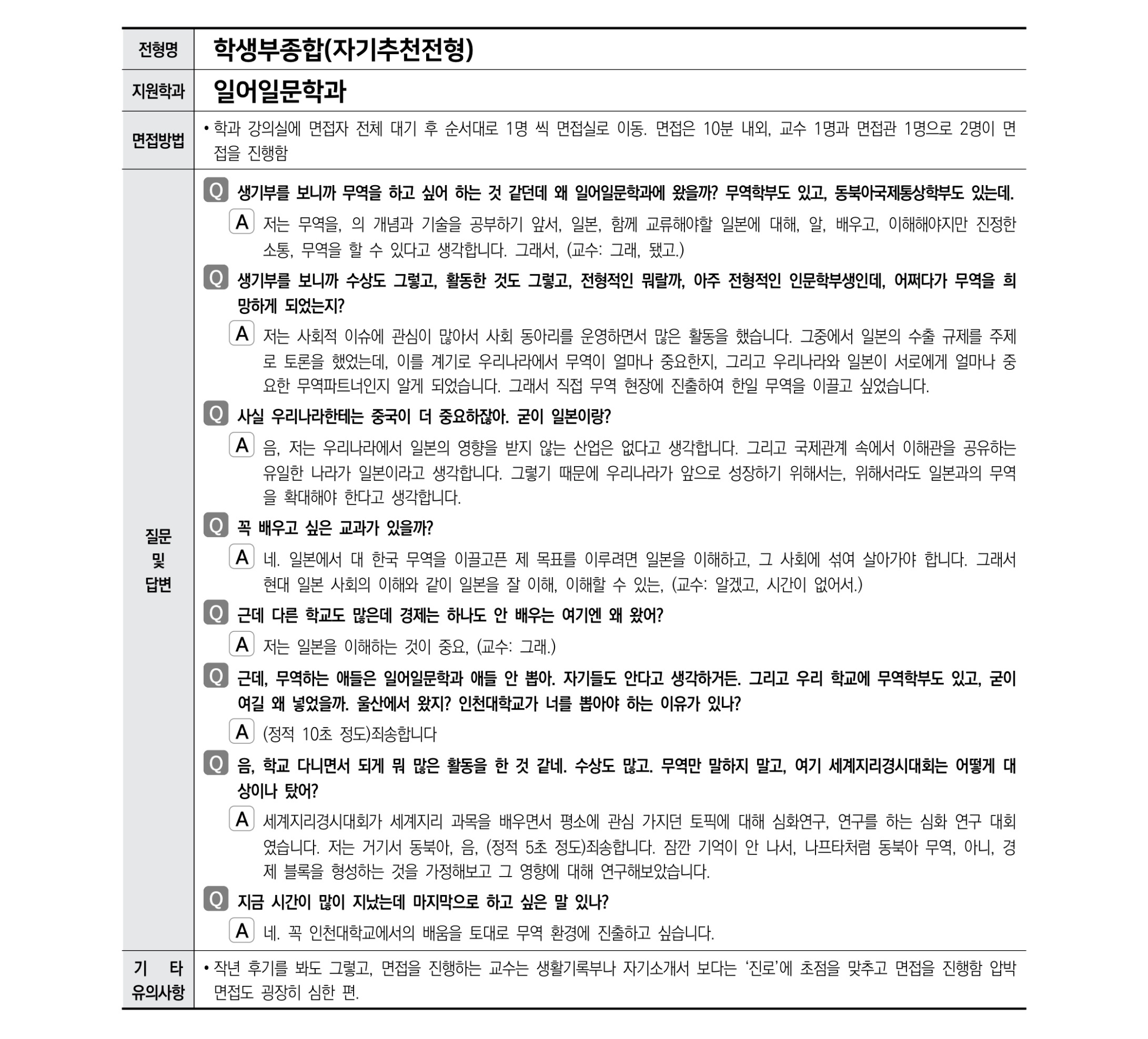 2021학년도 인천대학교 면접 후기10 - 동북아국제통상학부