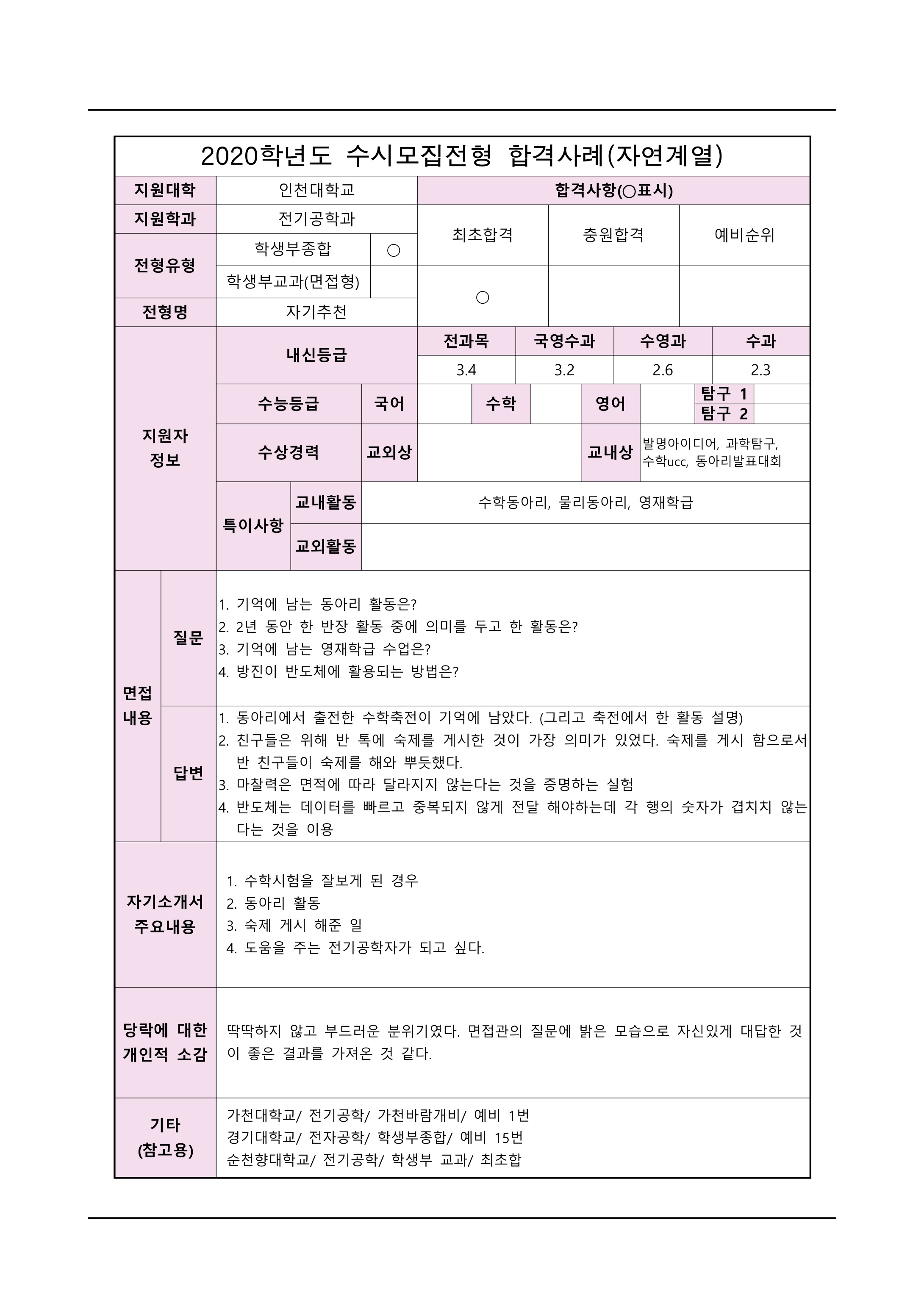 2021학년도 인천대학교 면접 후기32 - 전기공학과 2021학년도 인천대학교 면접 후기33 - 전자공학과