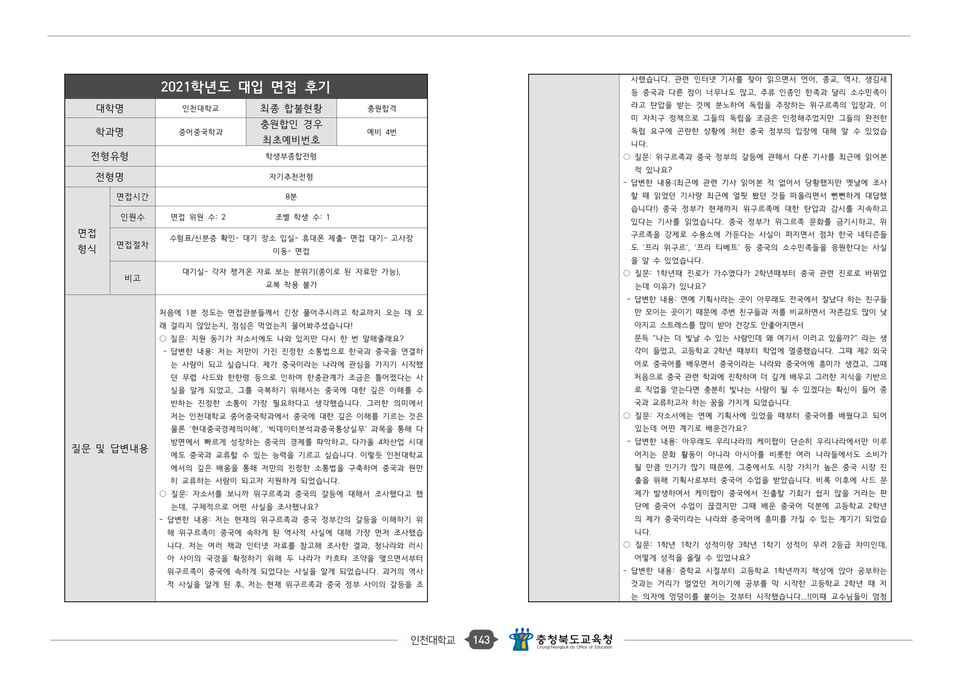 2021학년도 인천대학교 면접 후기34 - 중어중국학과