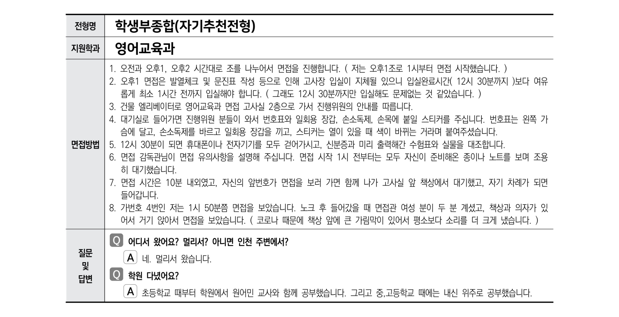 2021학년도 인천대학교 면접 후기26 - 영어교육과