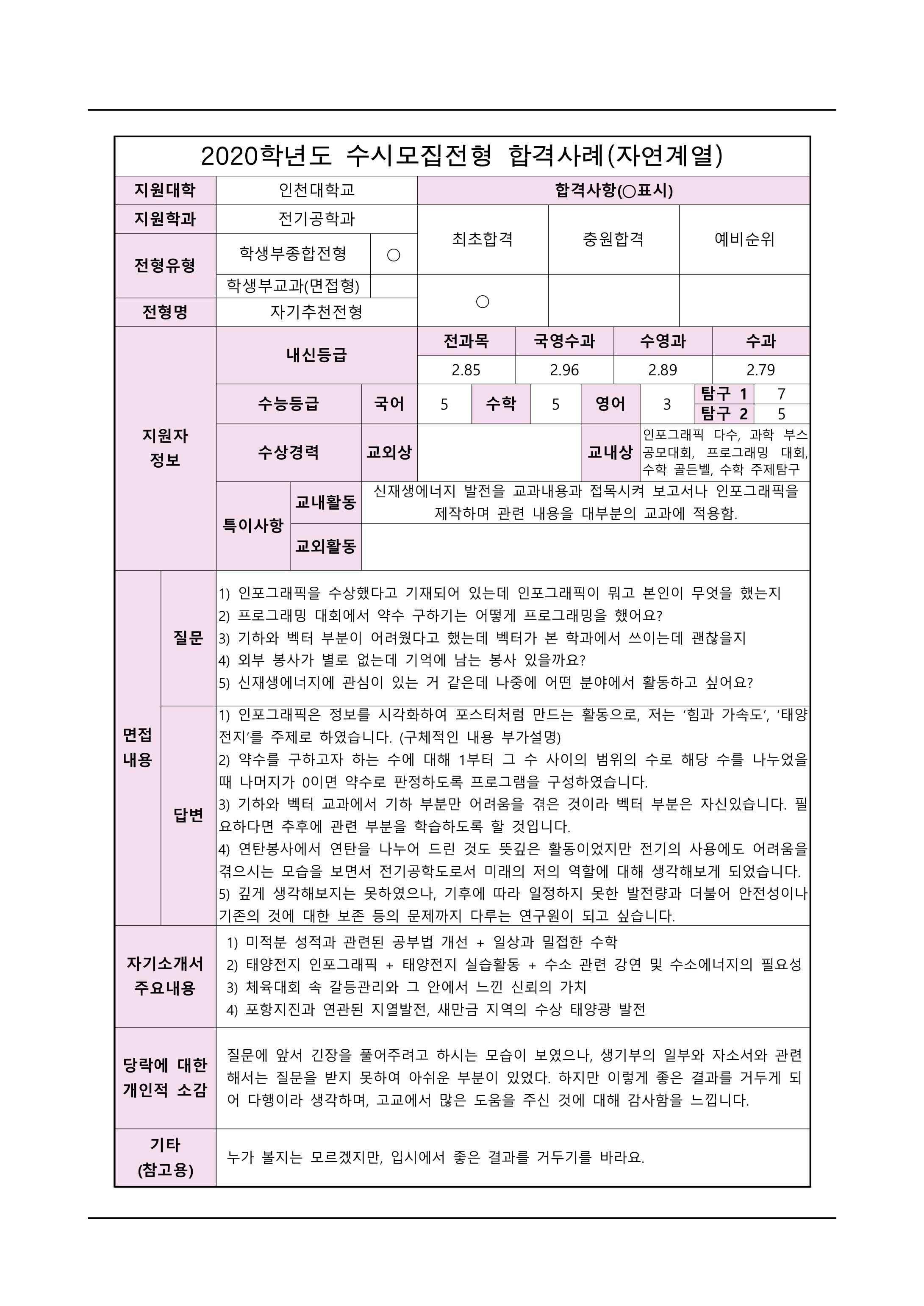 2021학년도 인천대학교 면접 후기30 - 전기공학과 2021학년도 인천대학교 면접 후기31 - 전기공학과
